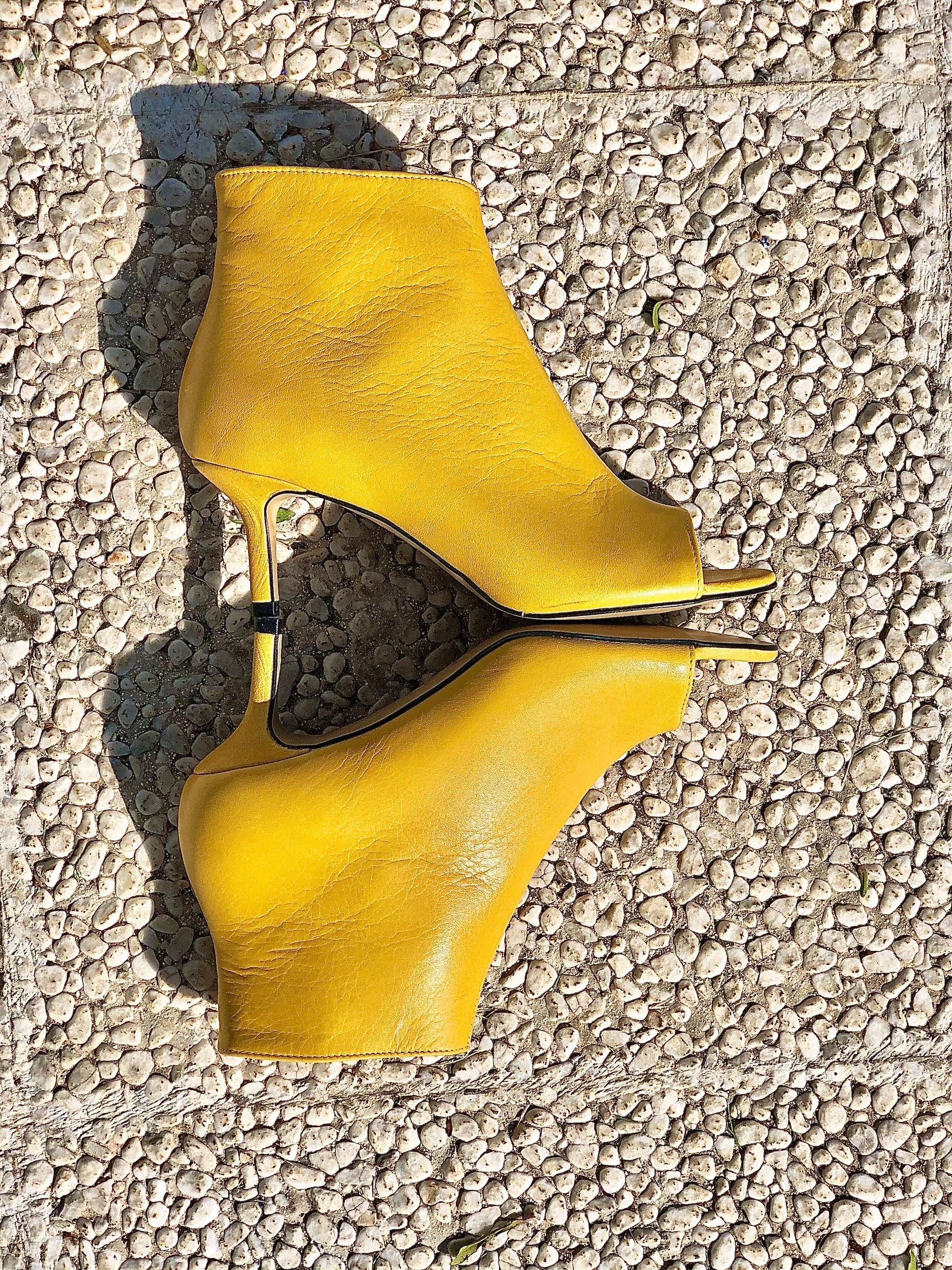 Leren enkellaarsjes met een hak van 6 cm en ritssluiting aan de binnenkant.
