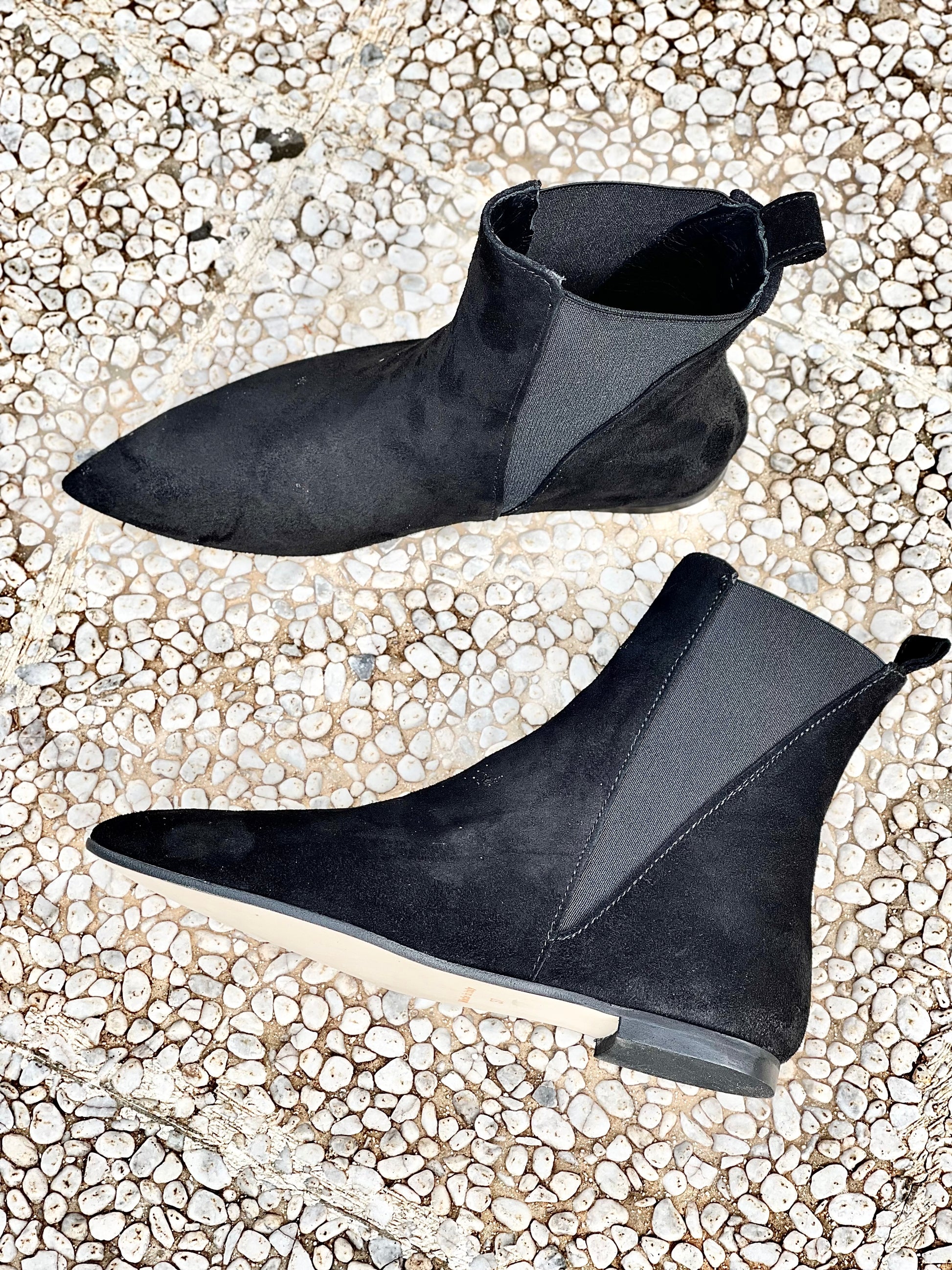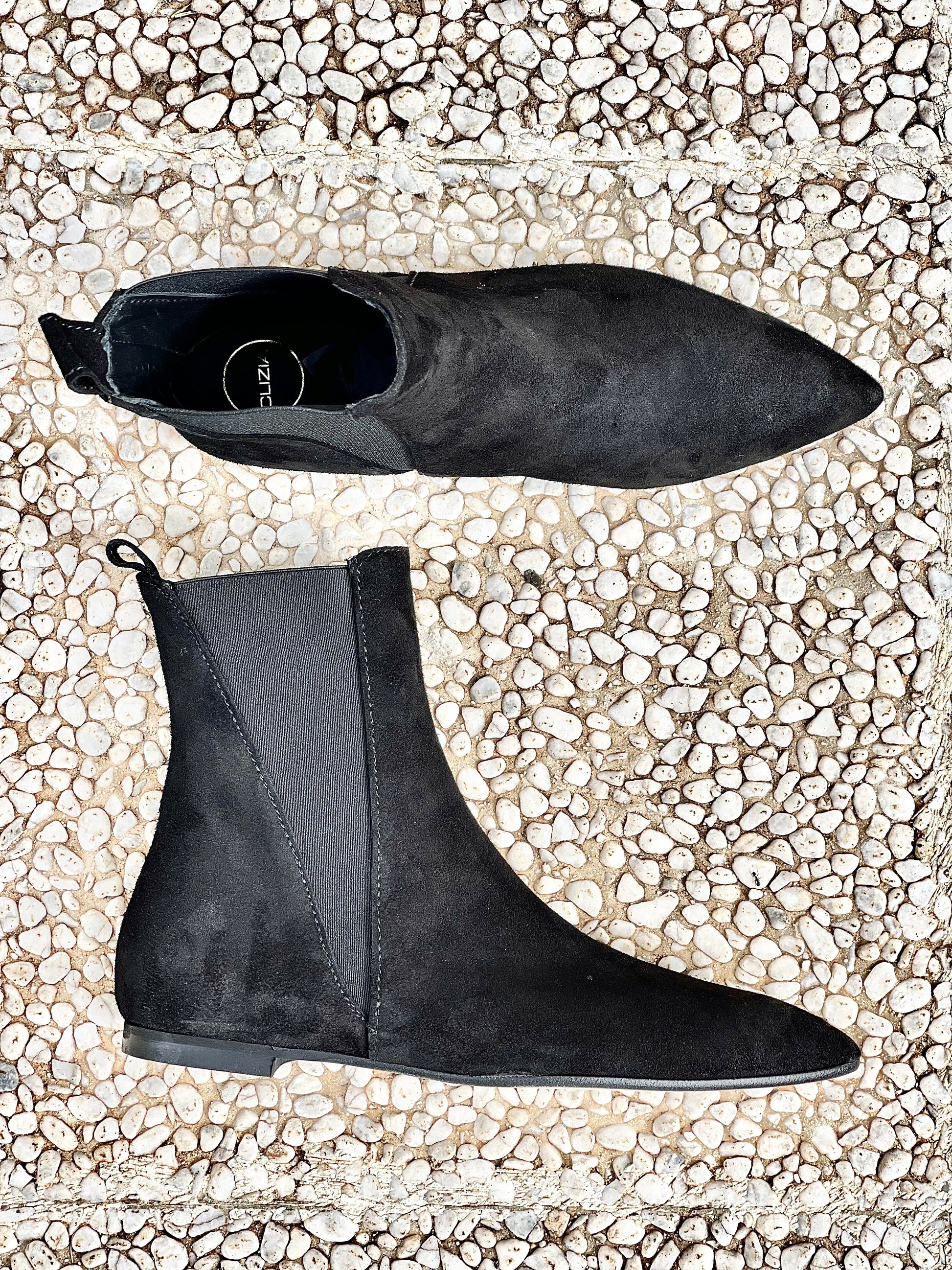 1 cm hak suède spitse chelsea enkellaars.