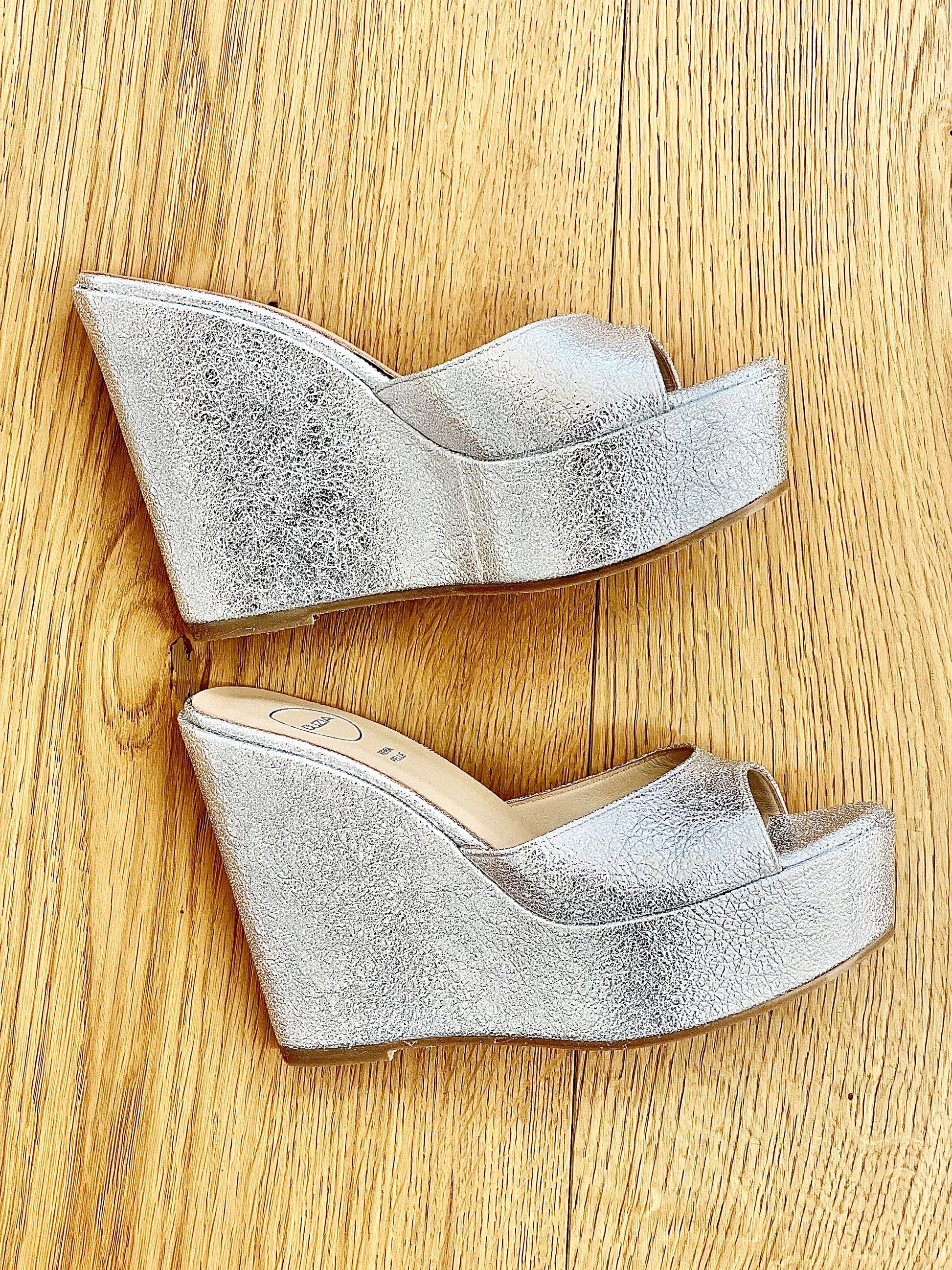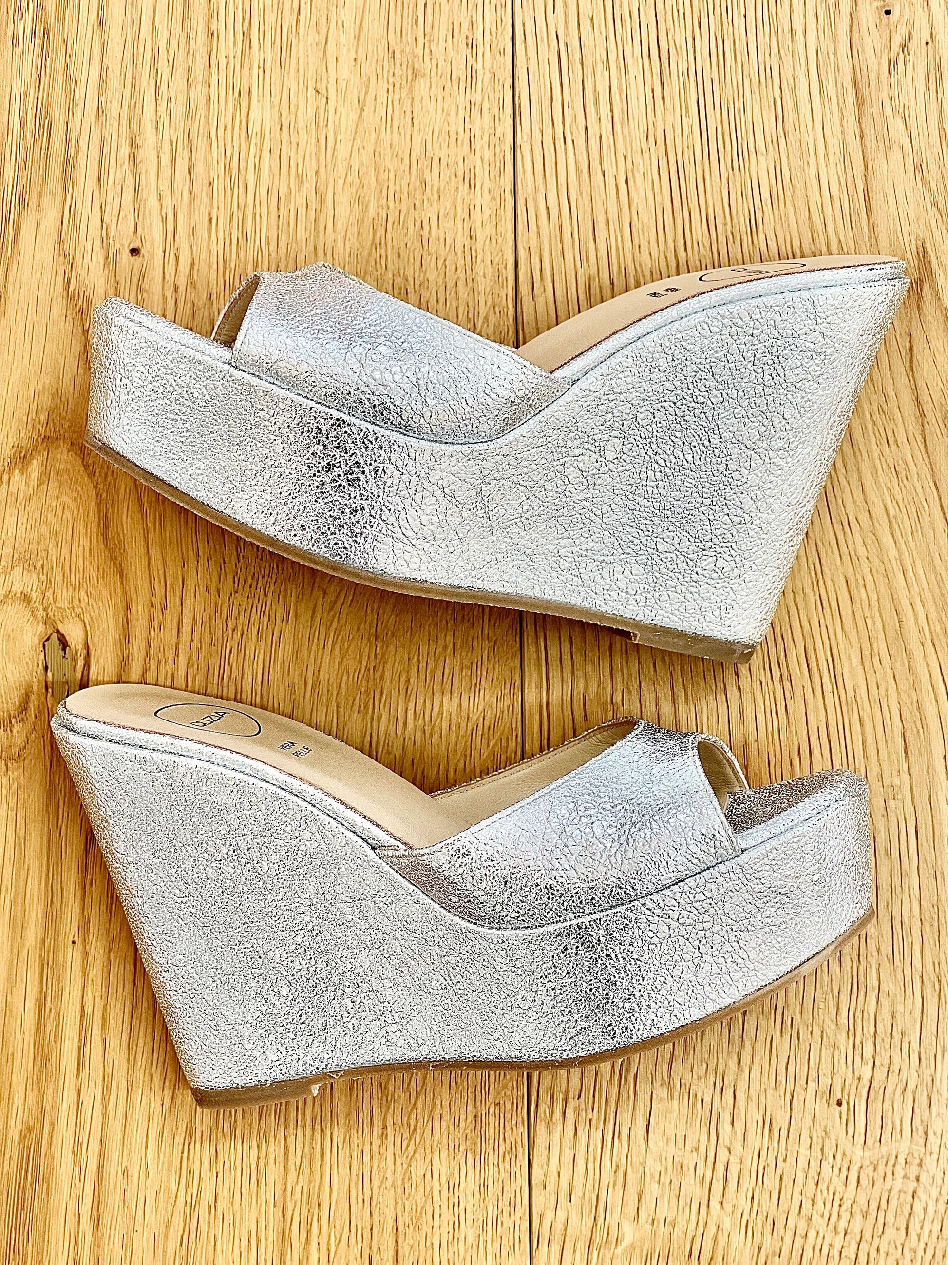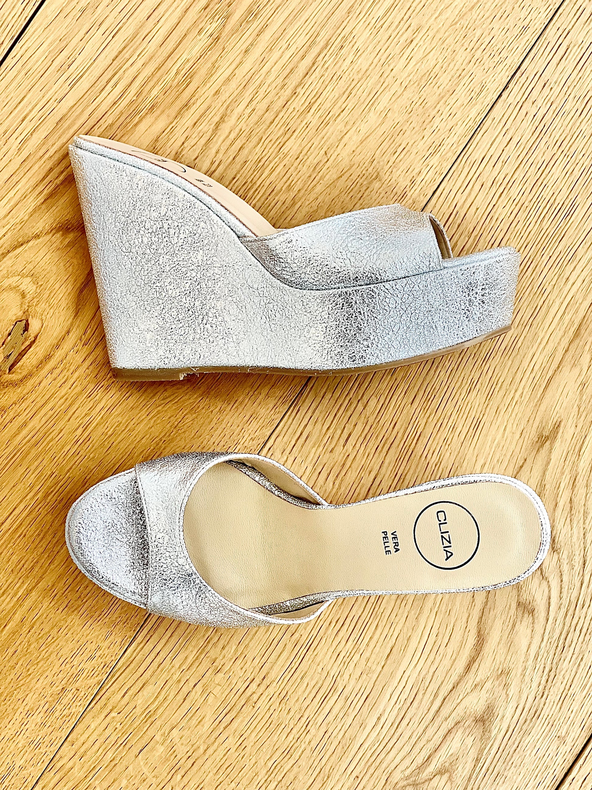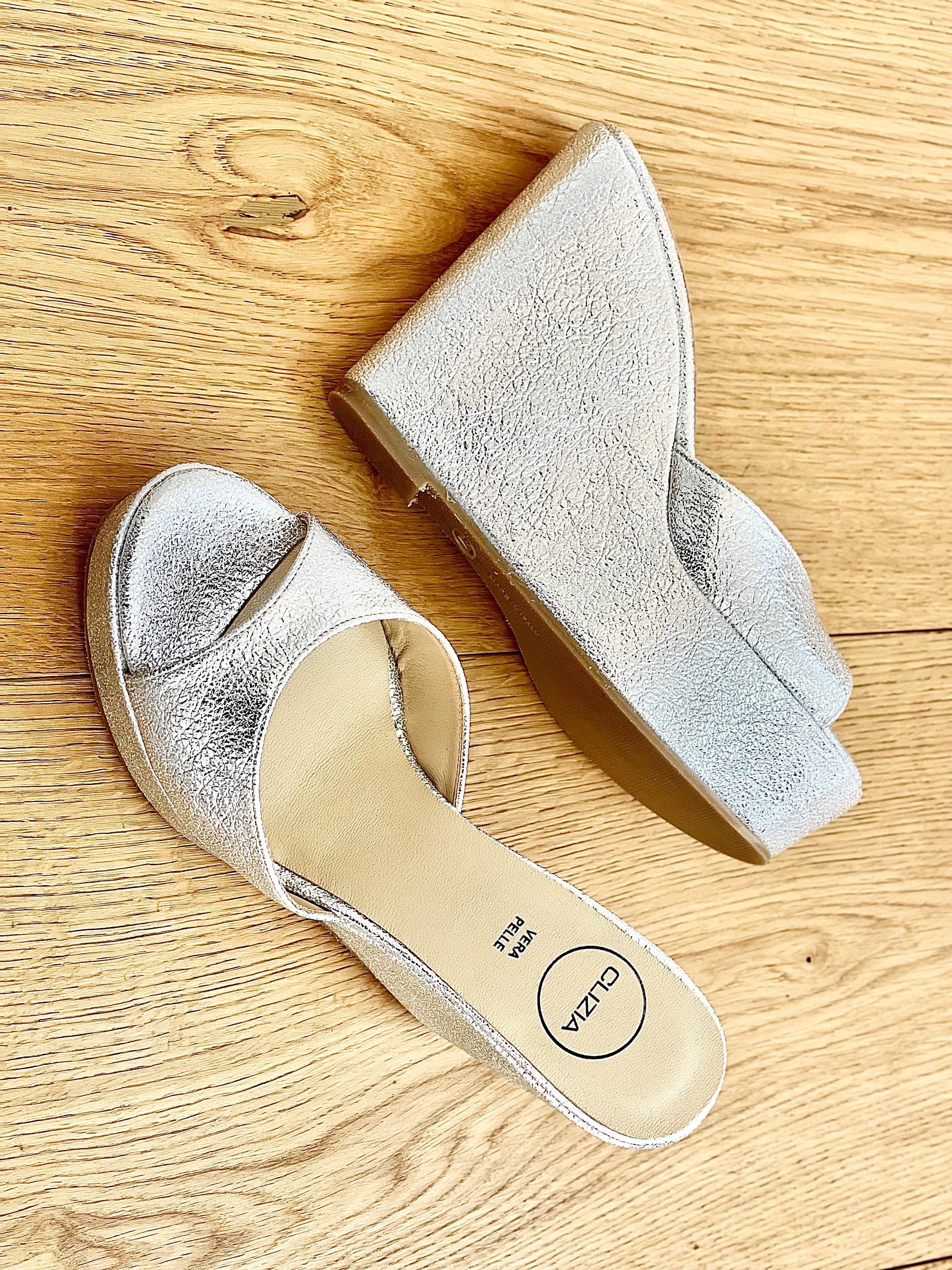 Gelamineerde hoge muiltjes sandalen met sleehak.
