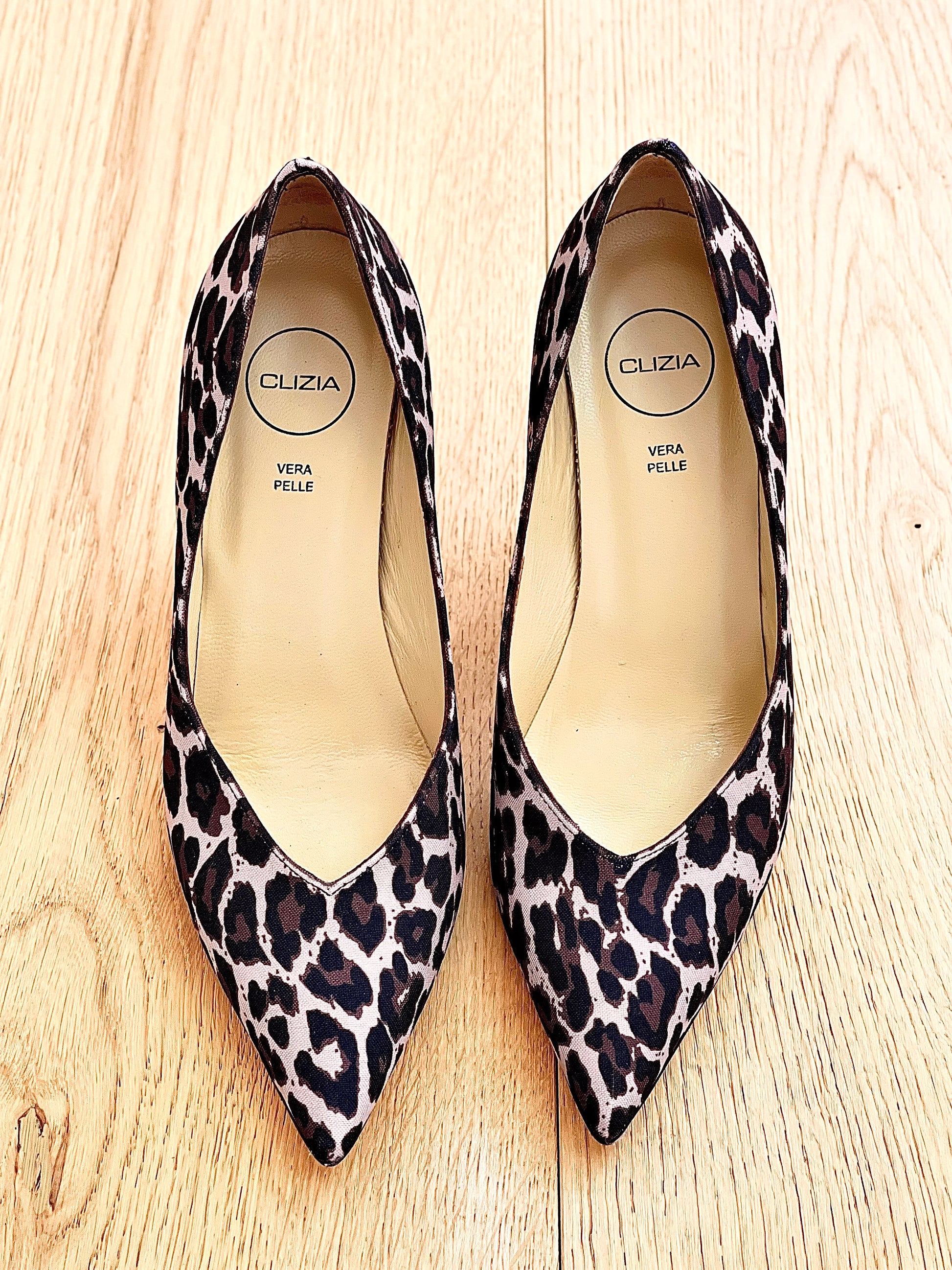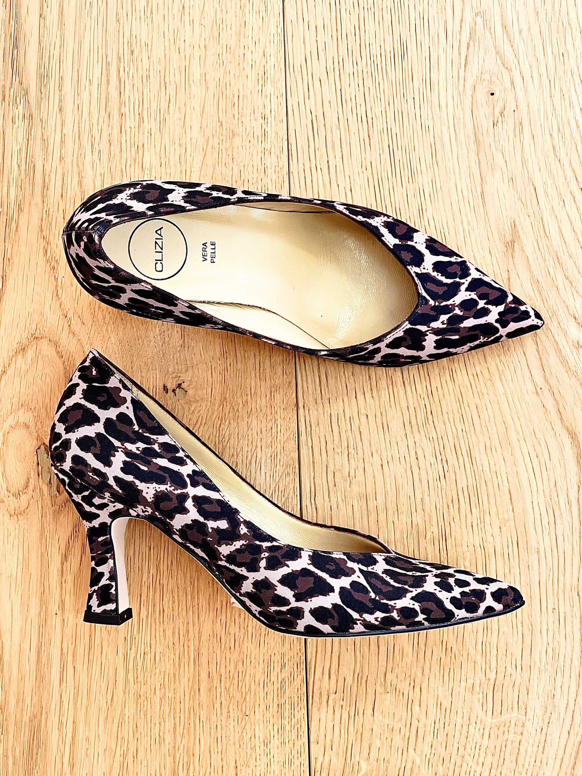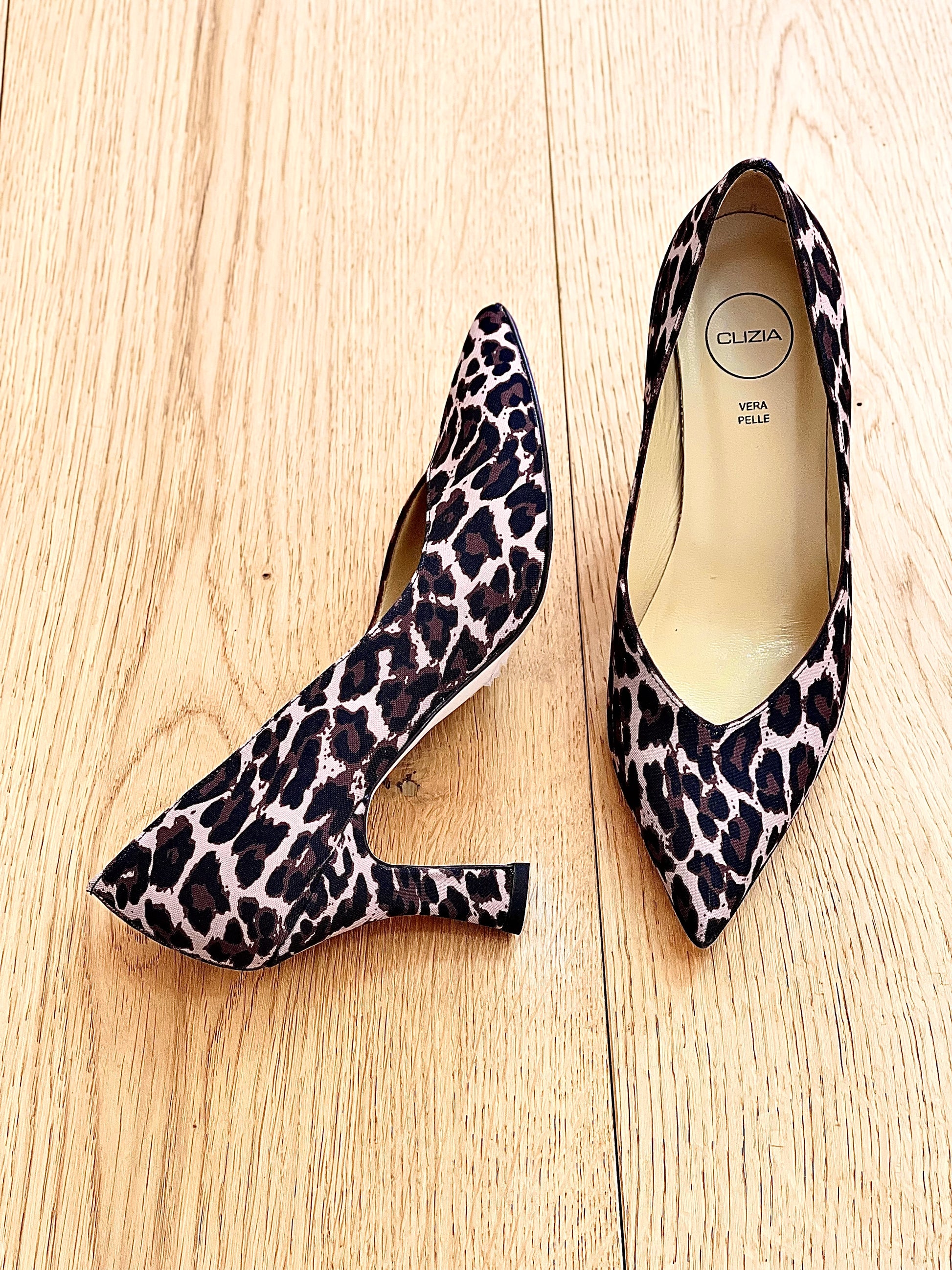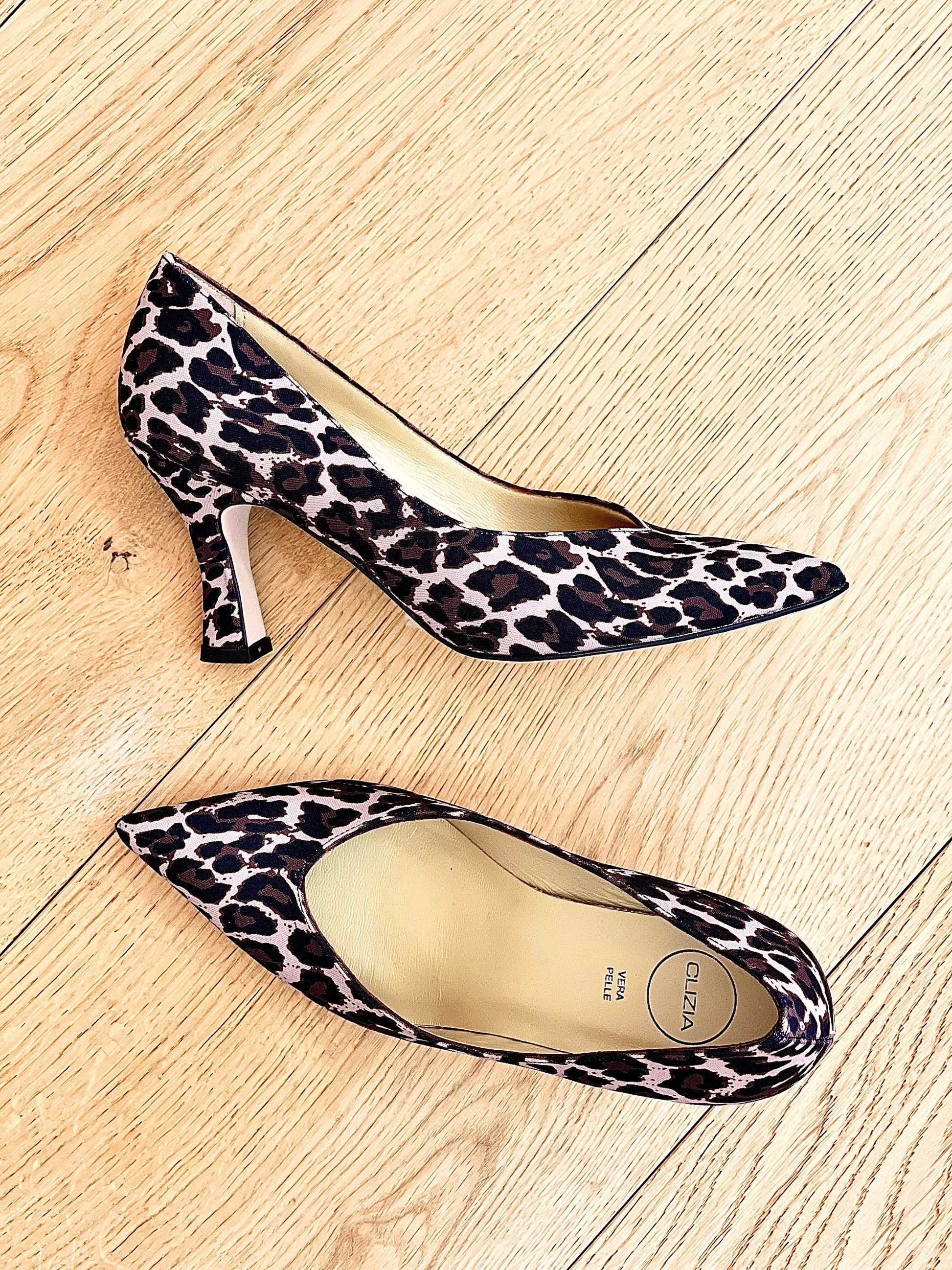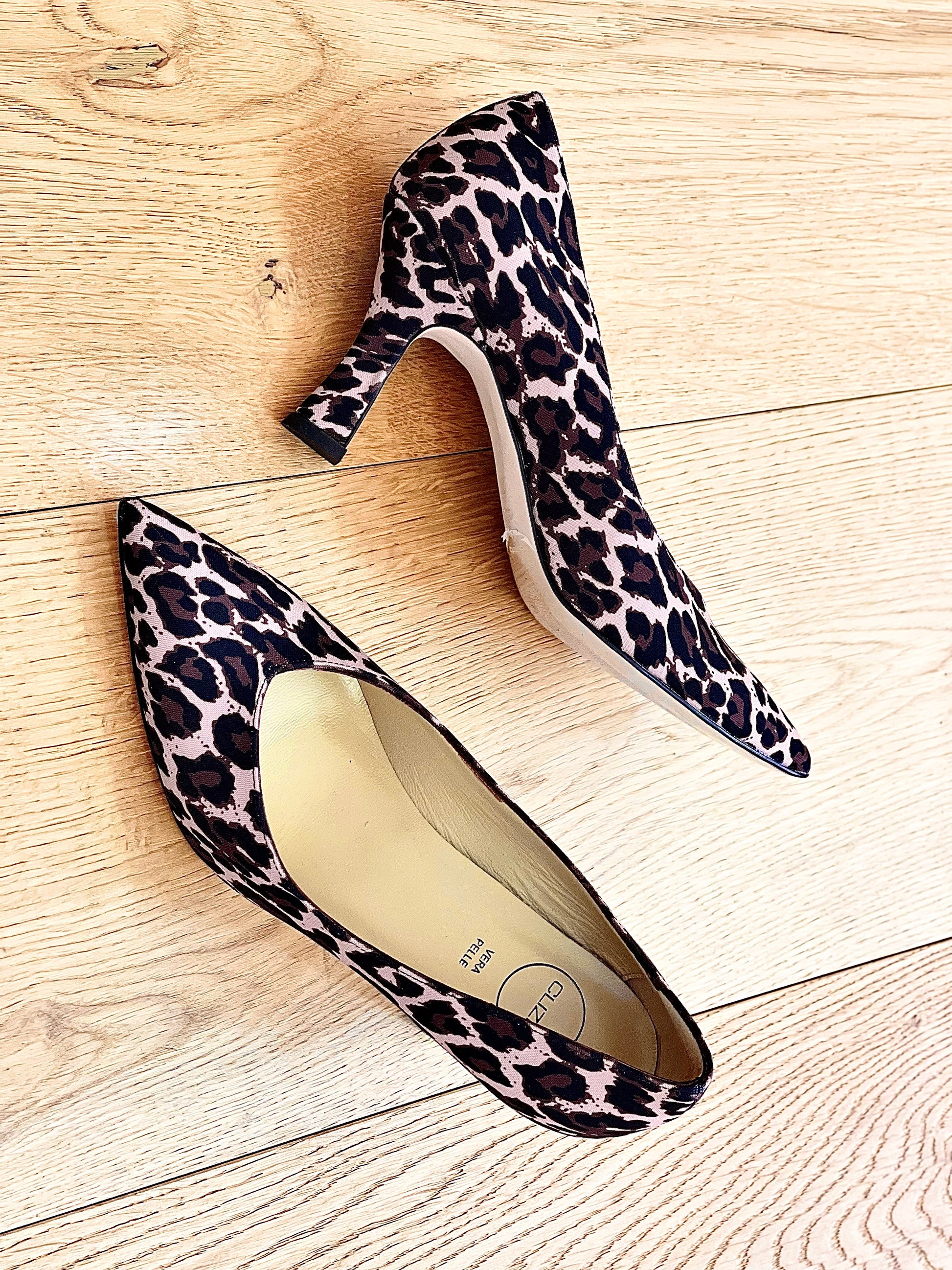 Pump met spitse teen, dierlijke V-hals en 8 cm spoelhak.