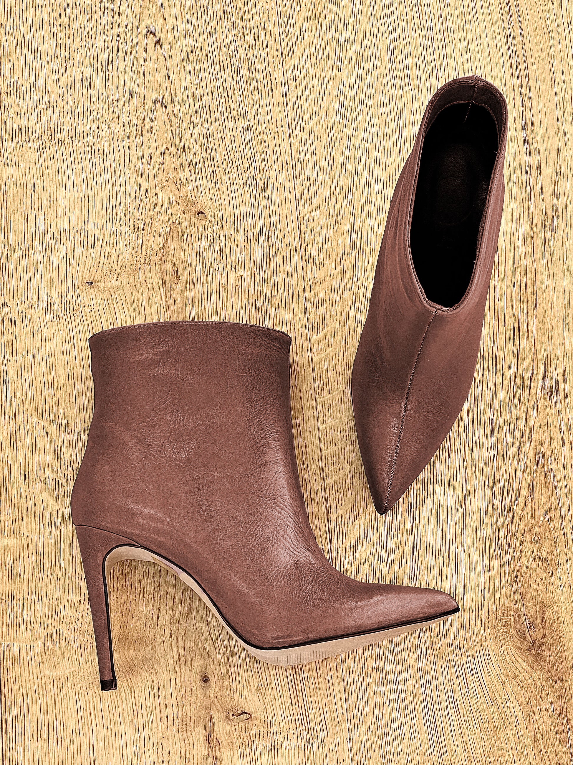 Hoge leren enkellaarsjes met een naaldhak van 10 cm.
