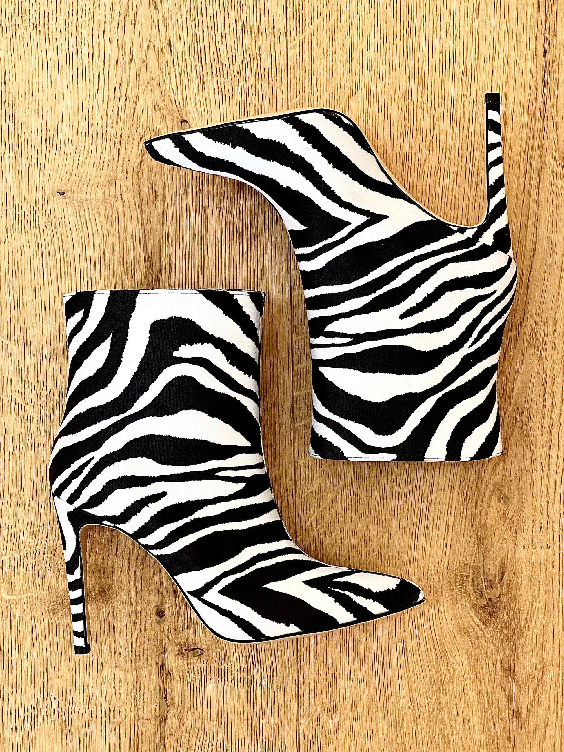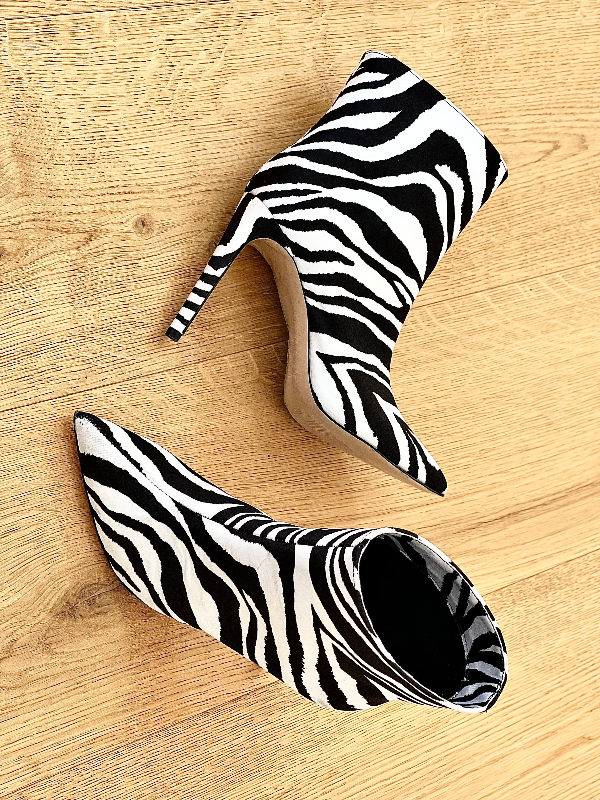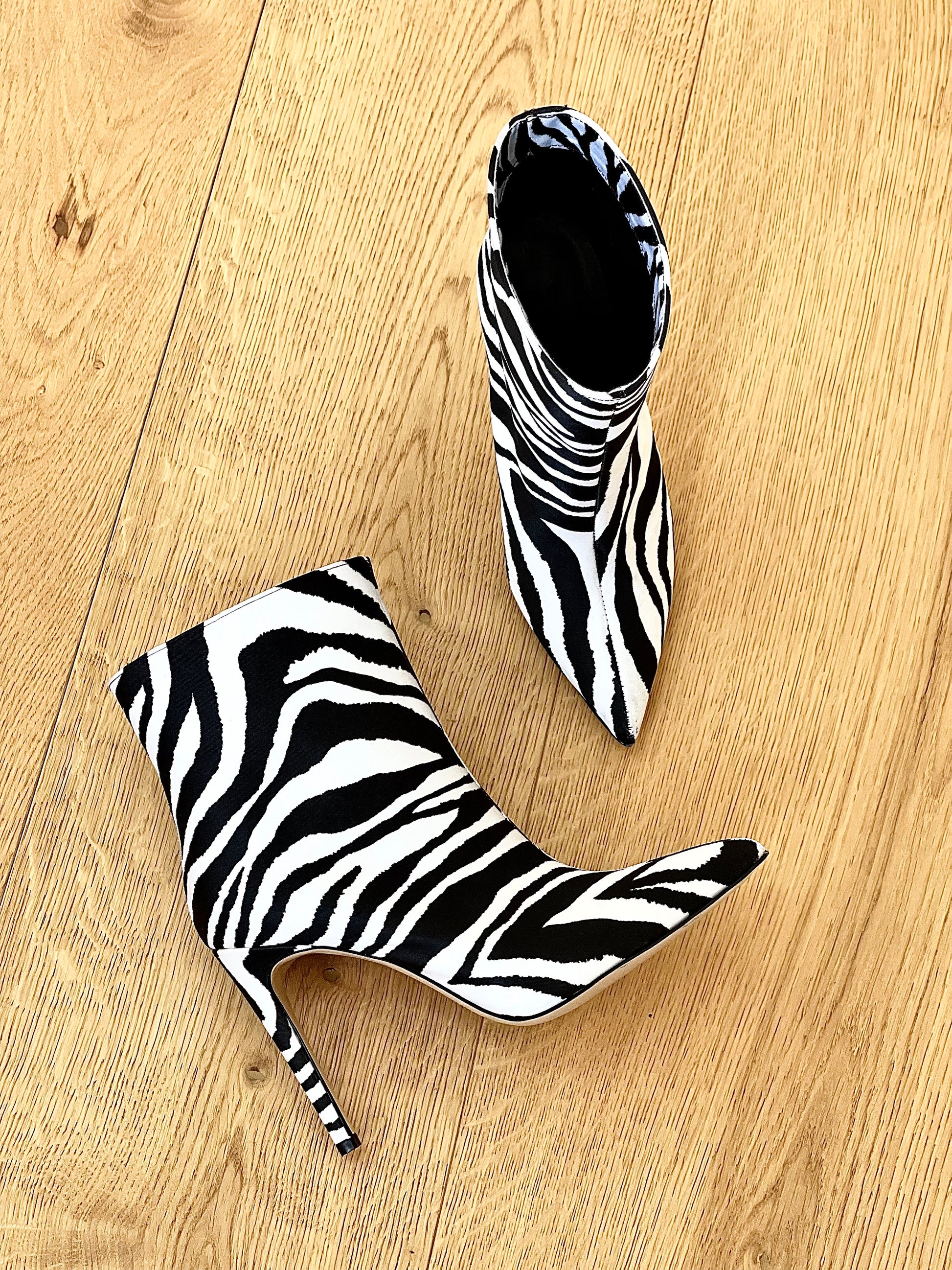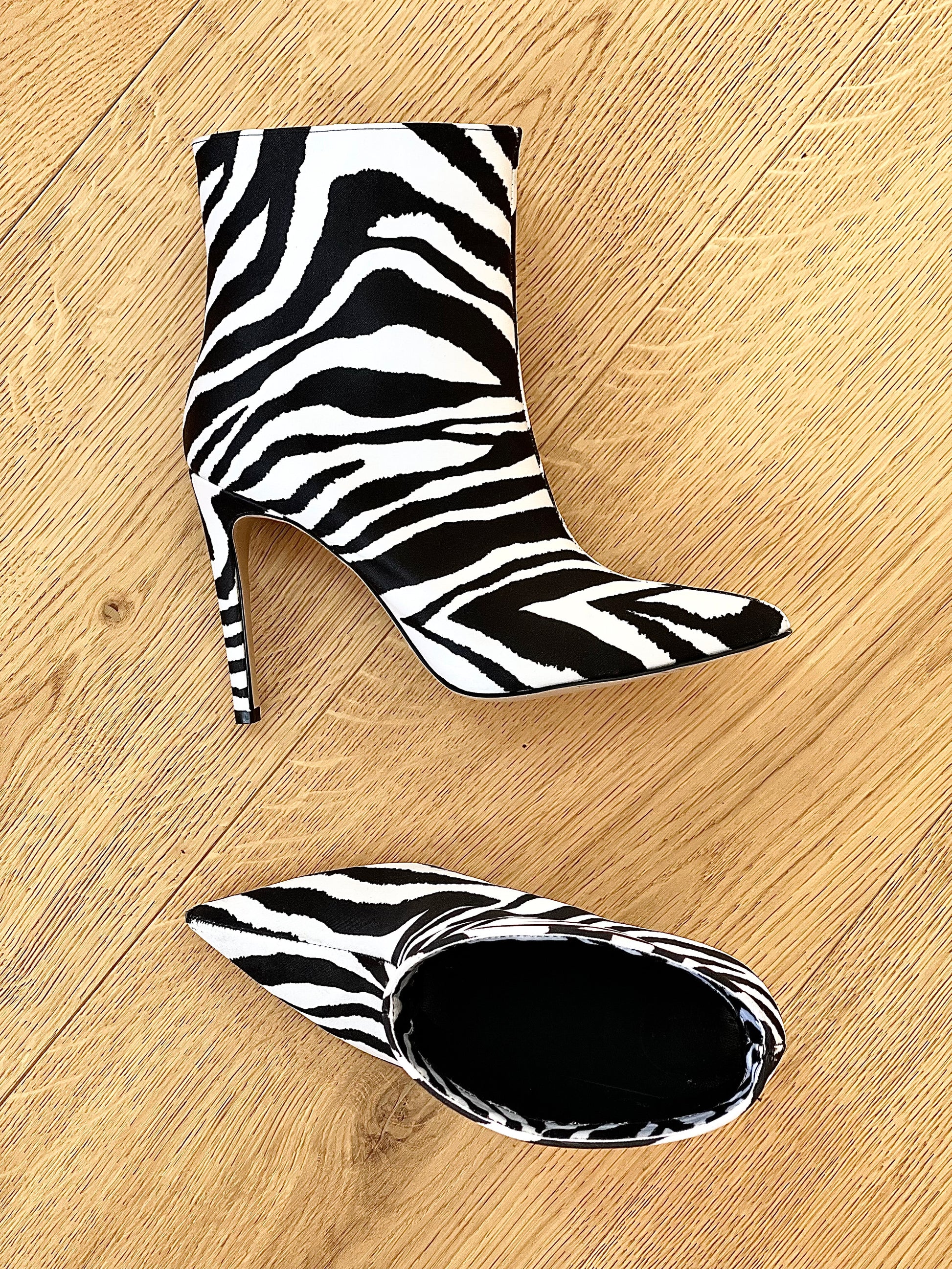 Hoge buisvormige enkellaarsjes animalier naaldhak 10cm.
