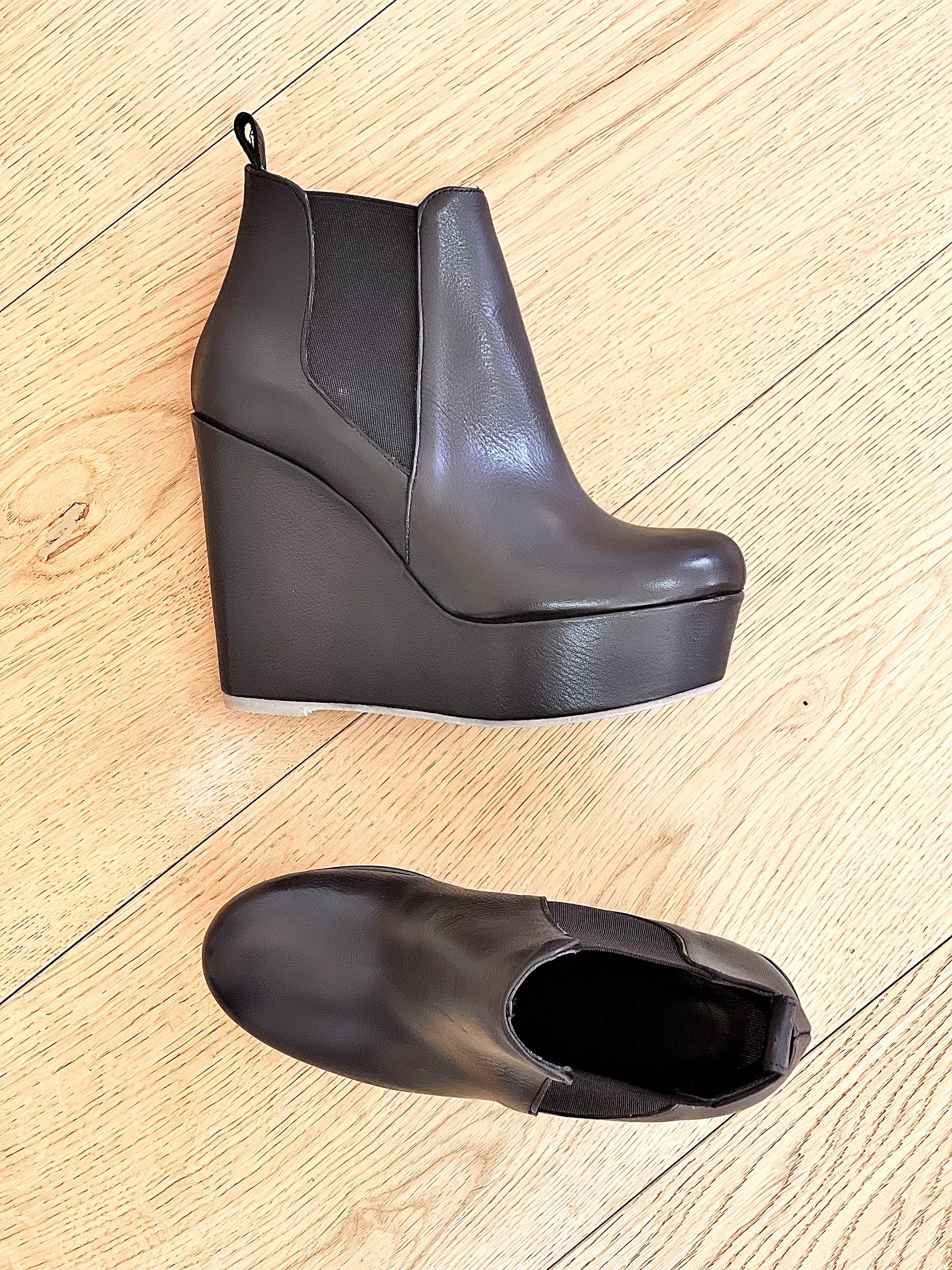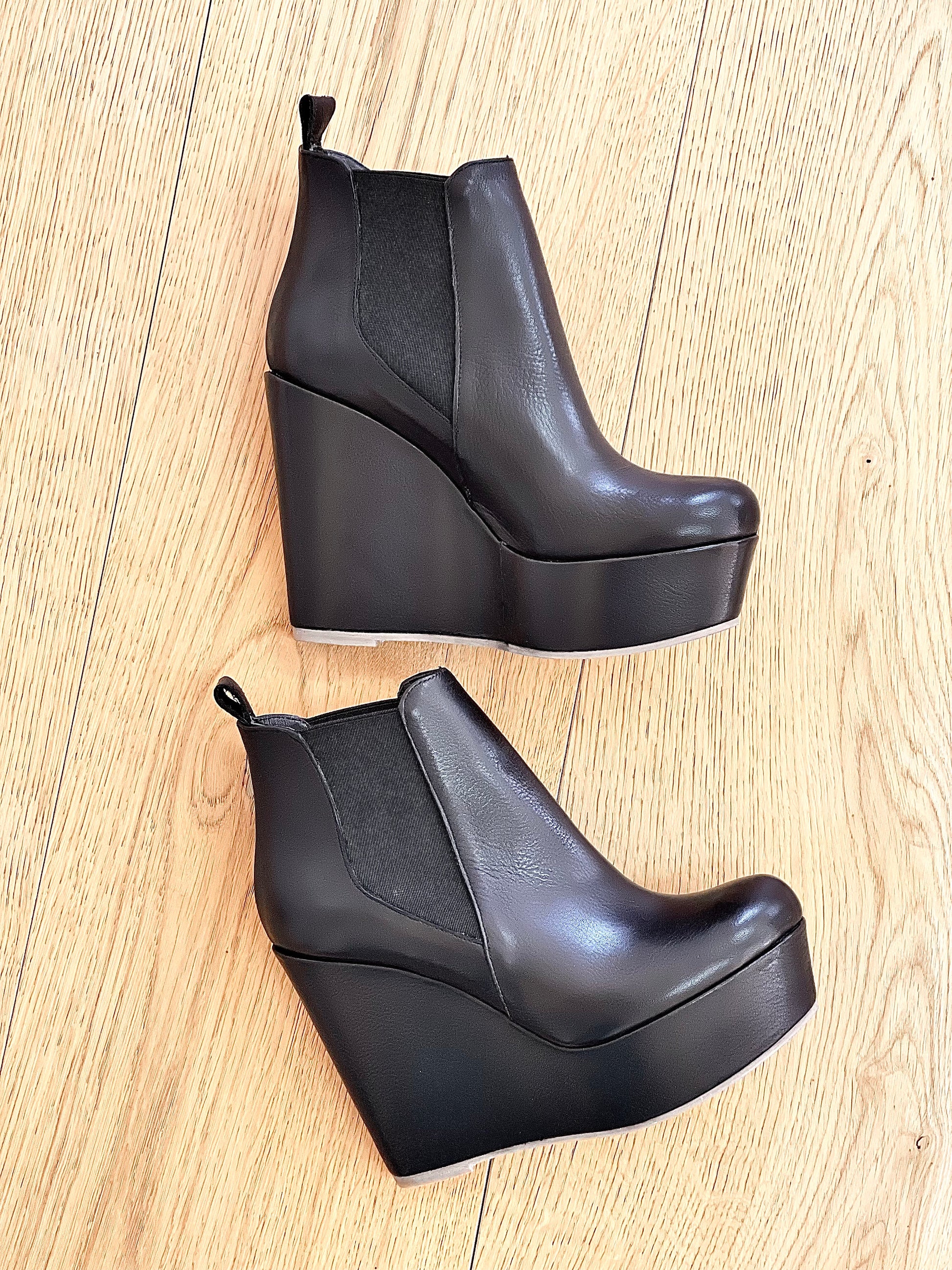 Hoge chelsea enkellaarsjes op leren sleehak.