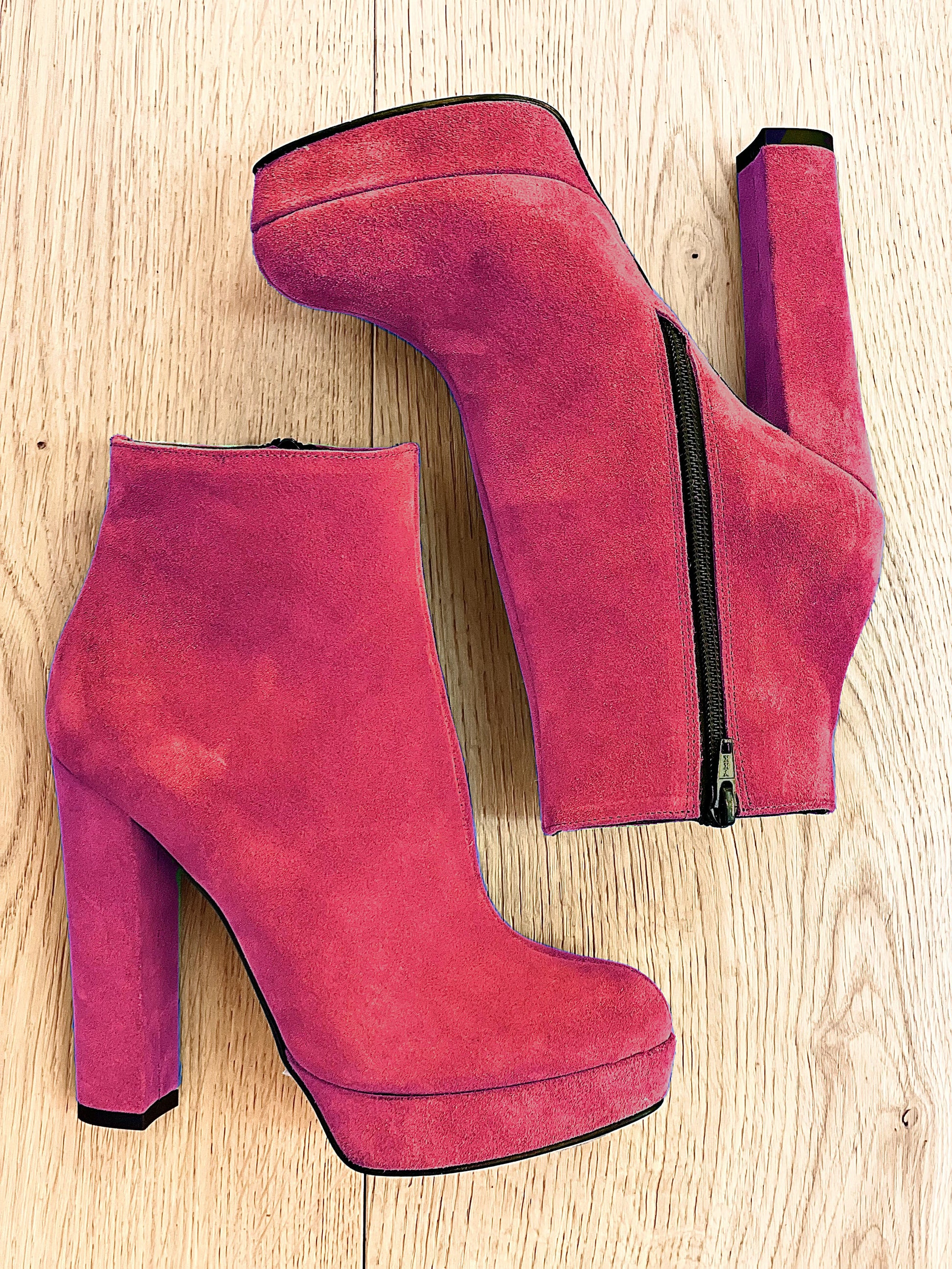 Hoge suède enkellaarsjes met plateau en brede hak.