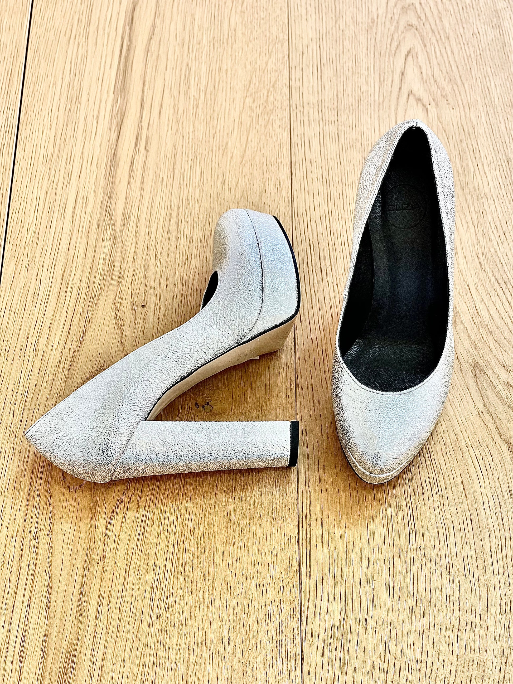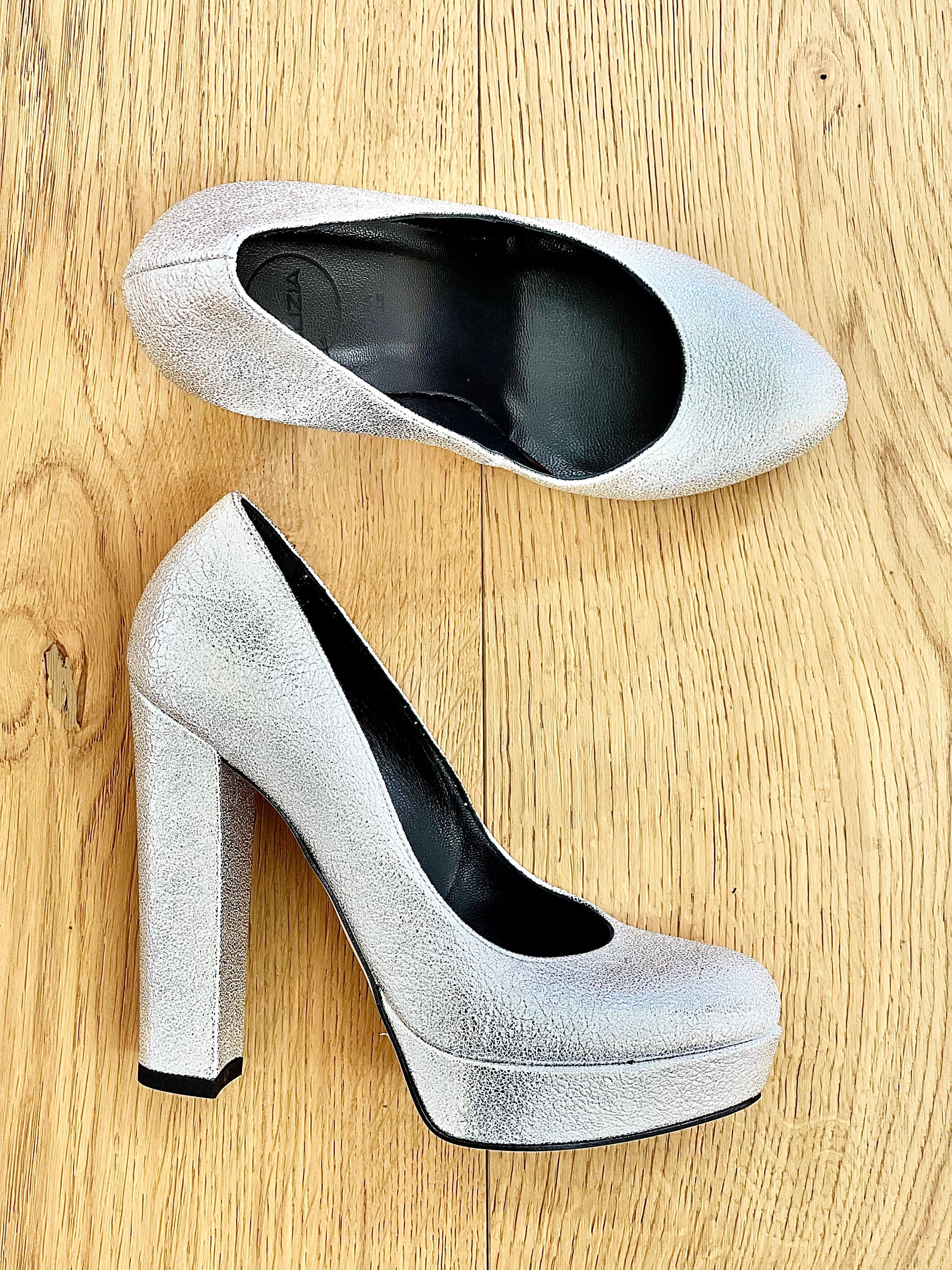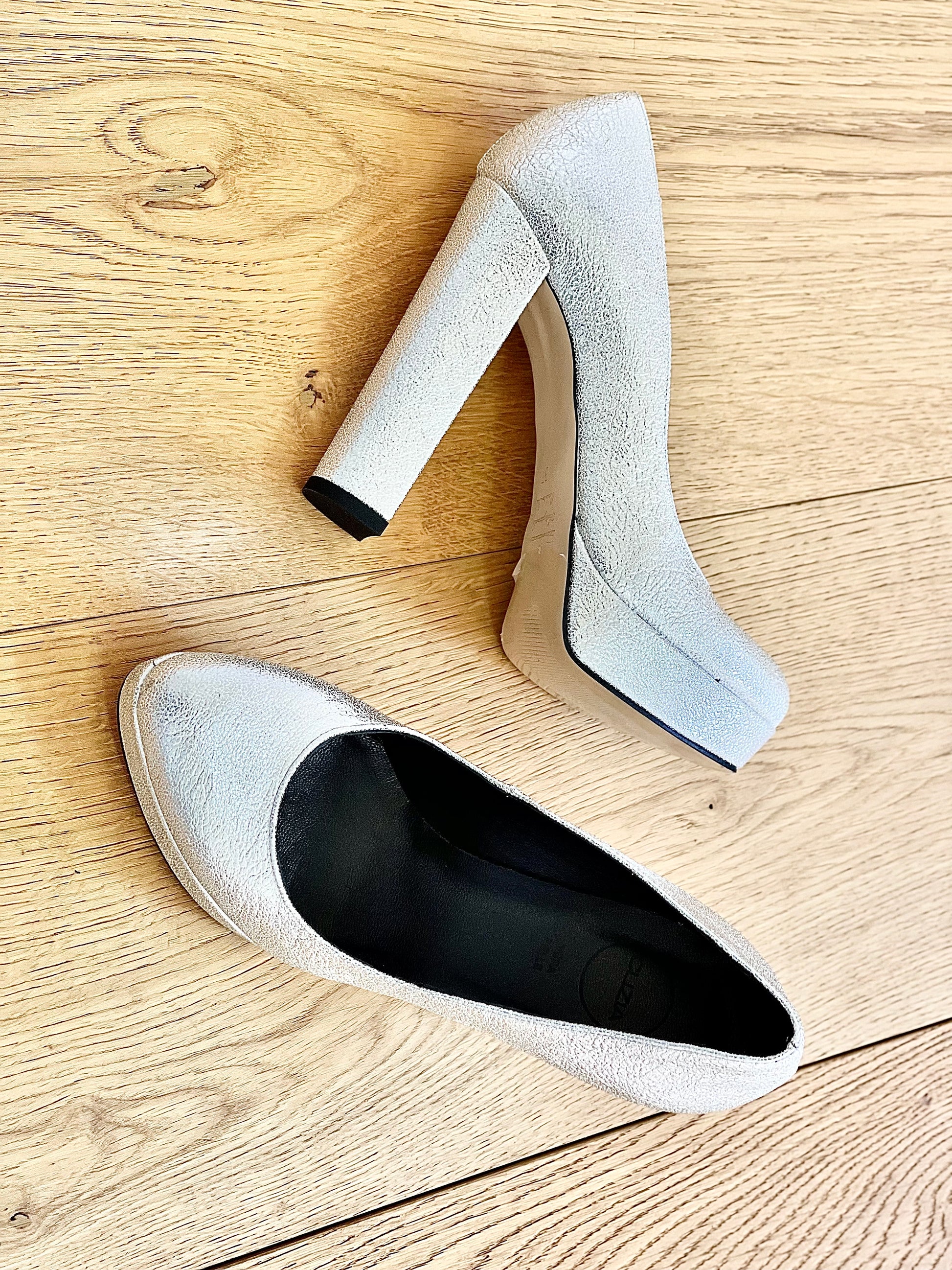 Ronde teen decolleté in laminaat 12cm hoge hak en 3cm plateau.