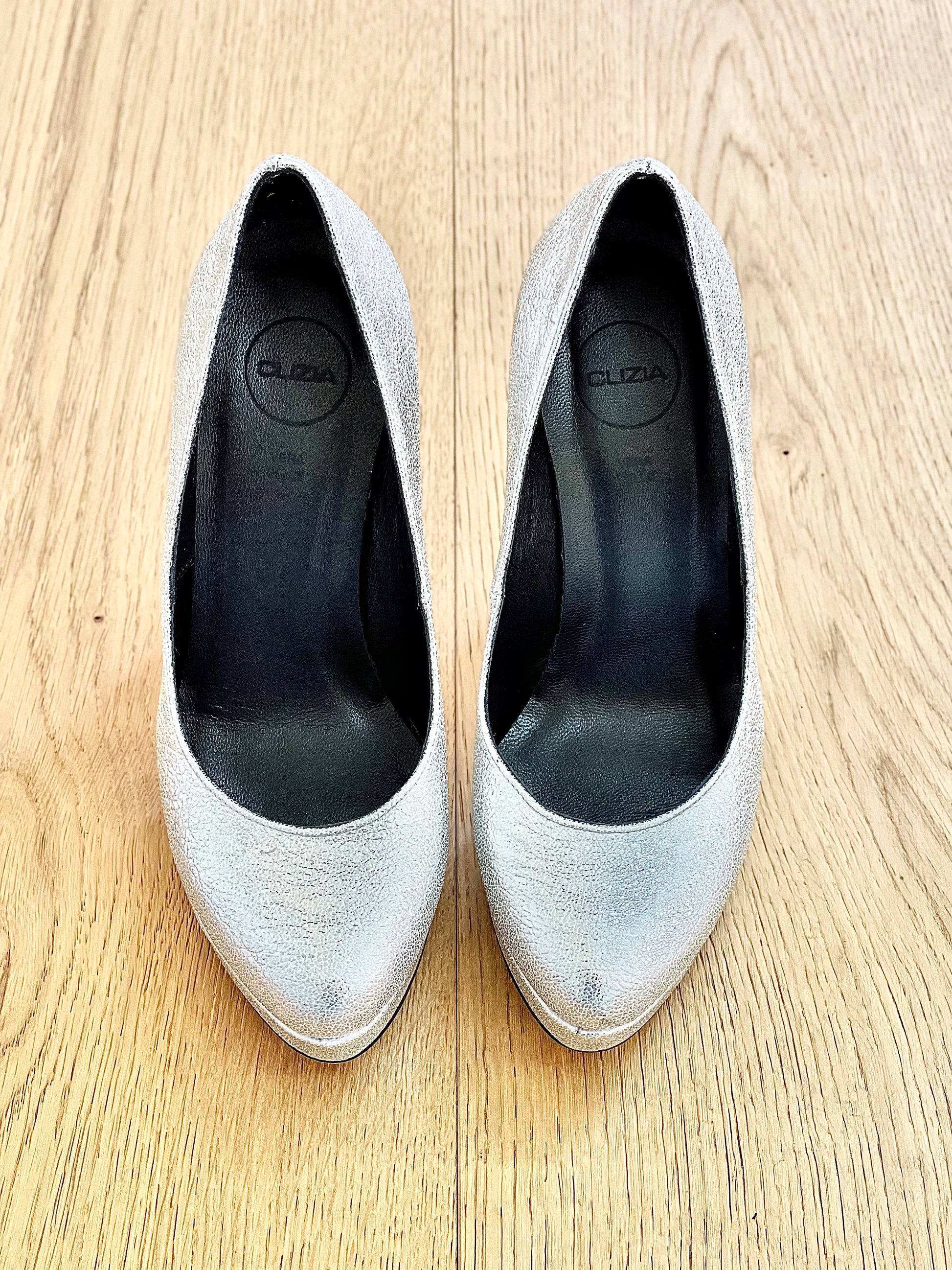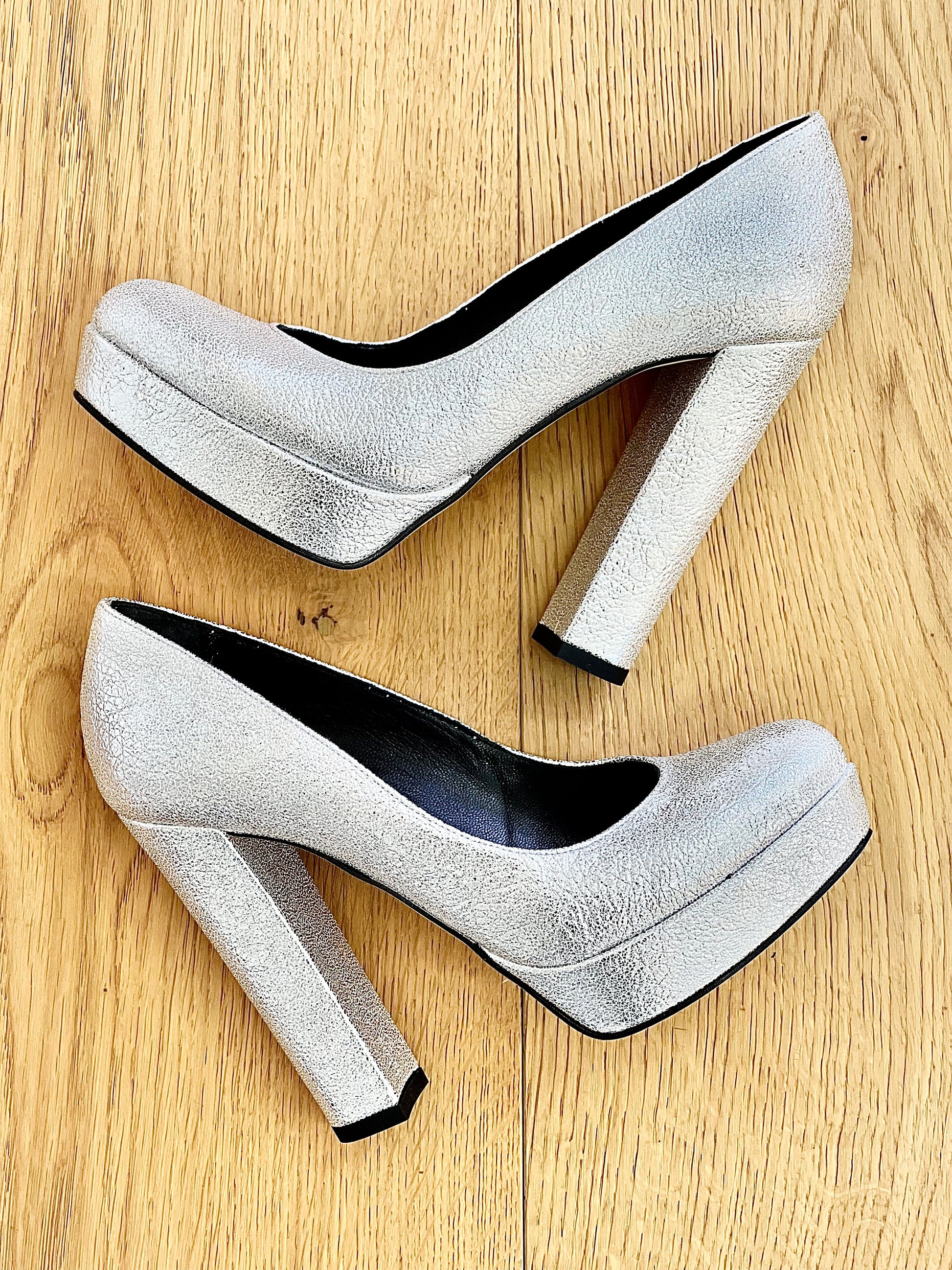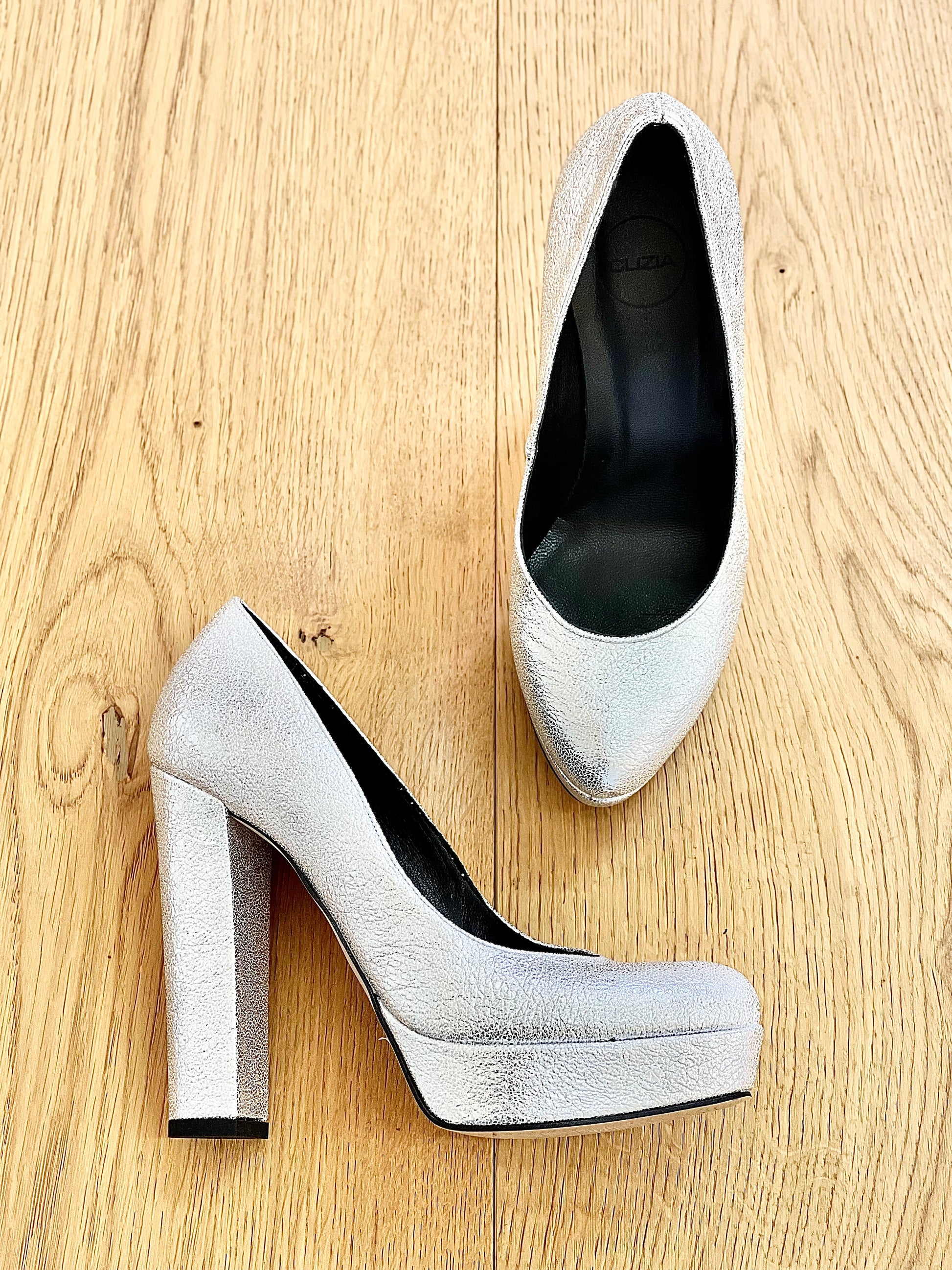Ronde teen decolleté in laminaat 12cm hoge hak en 3cm plateau.