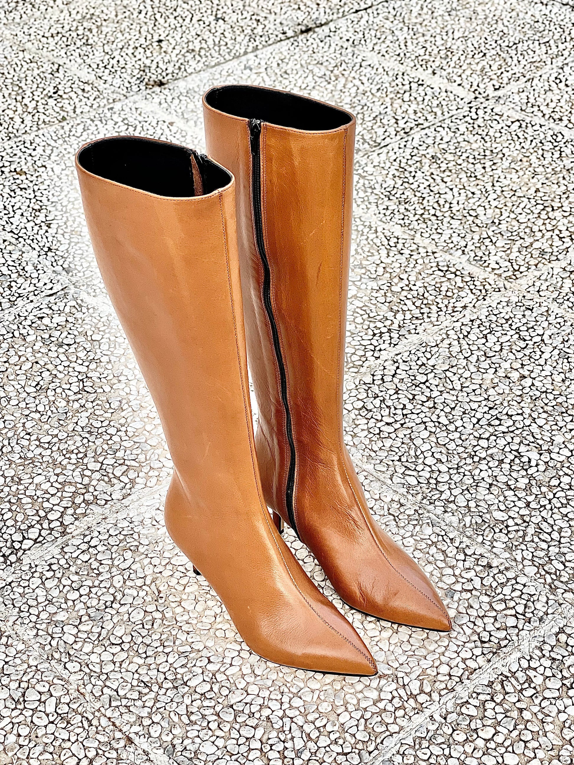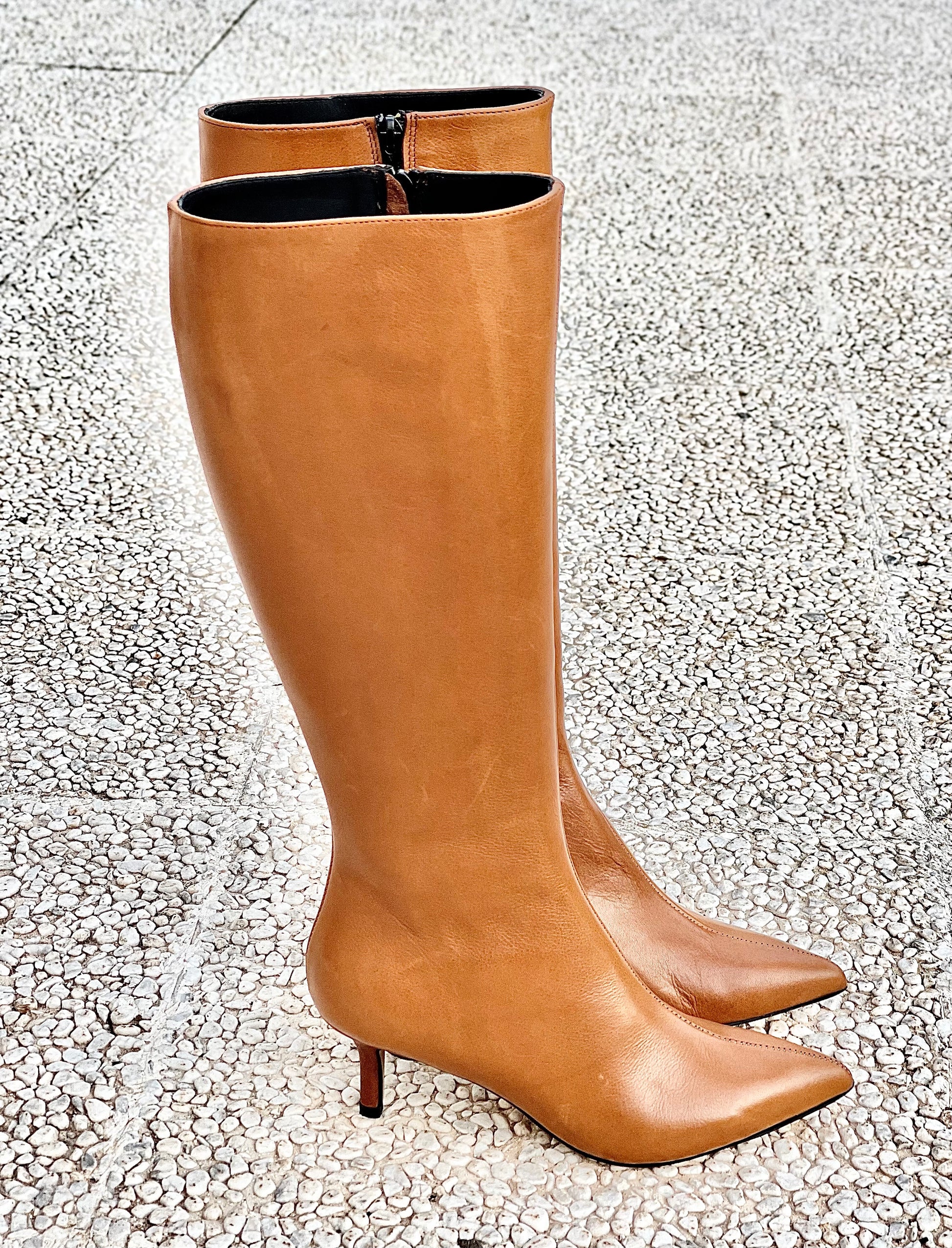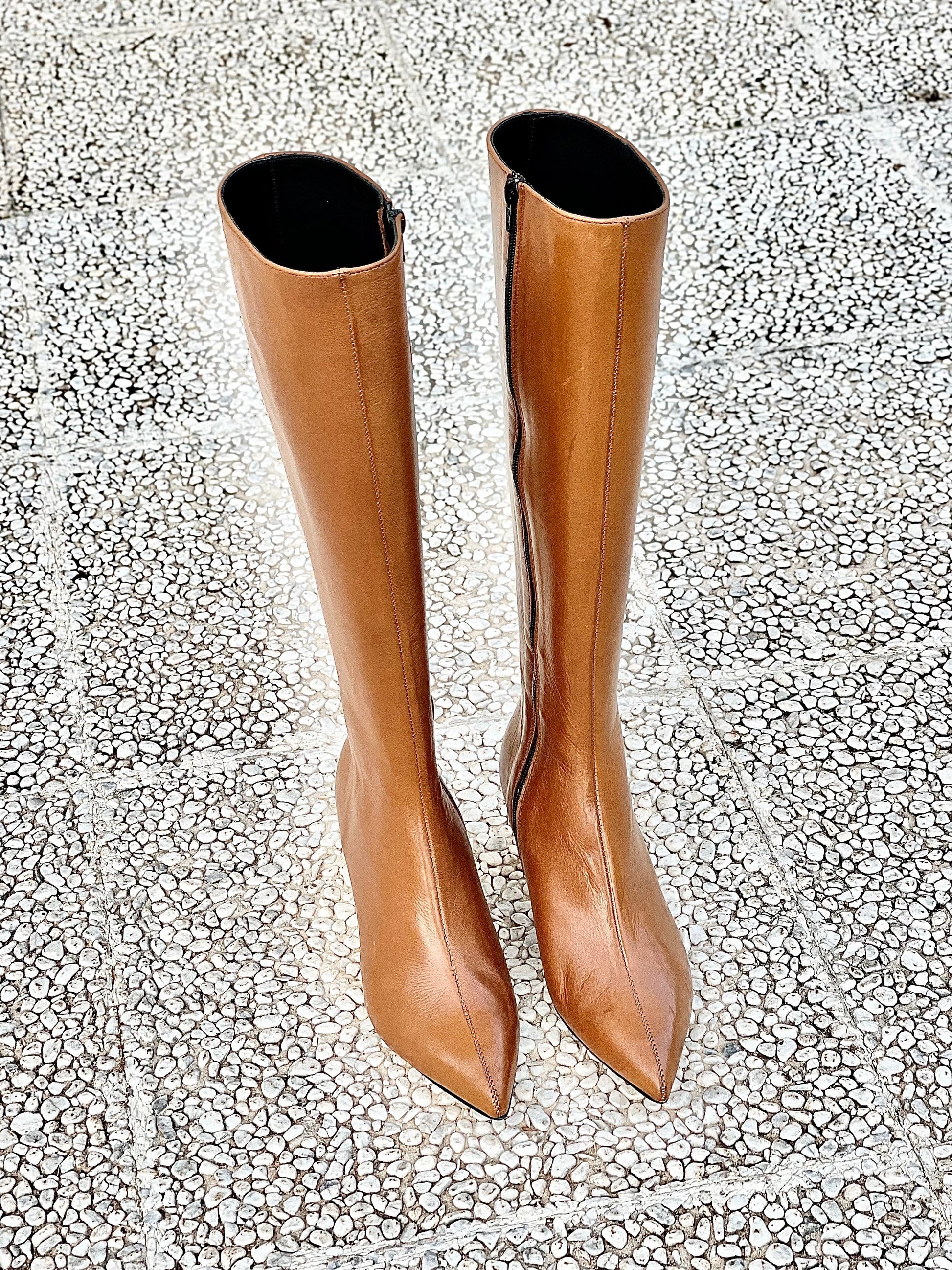 Leren laarzen met spitse neus, hak tot 60 mm.
