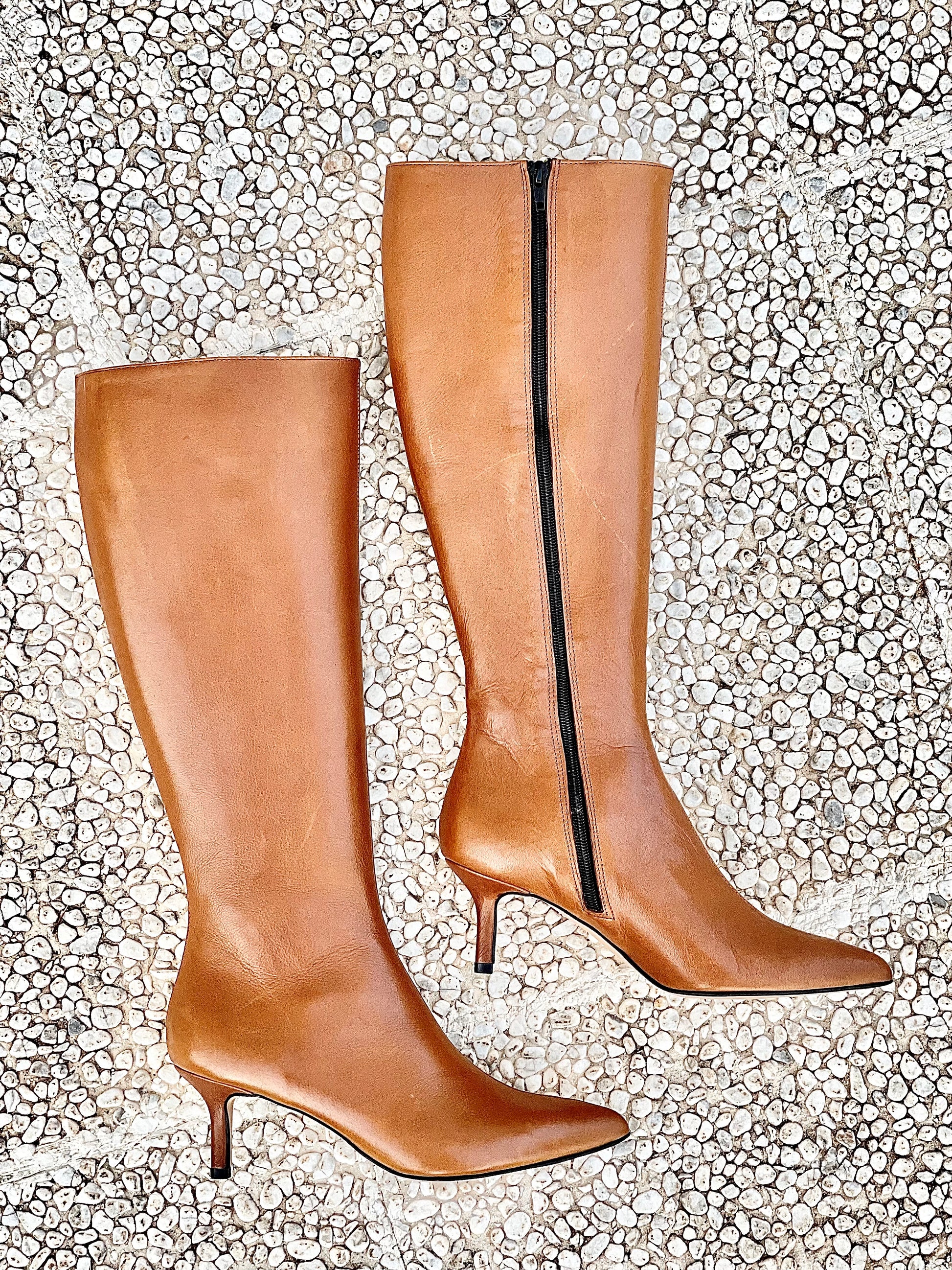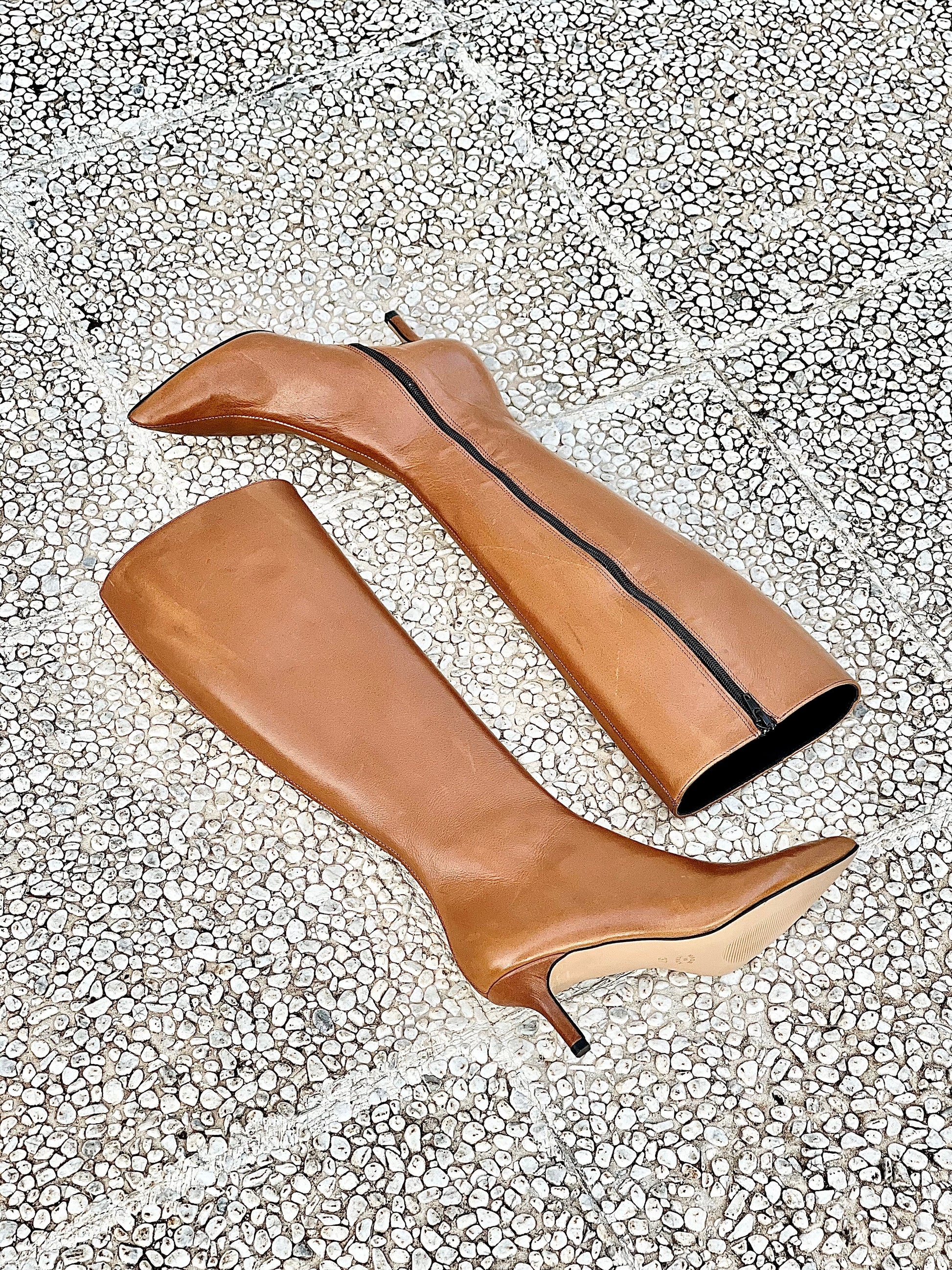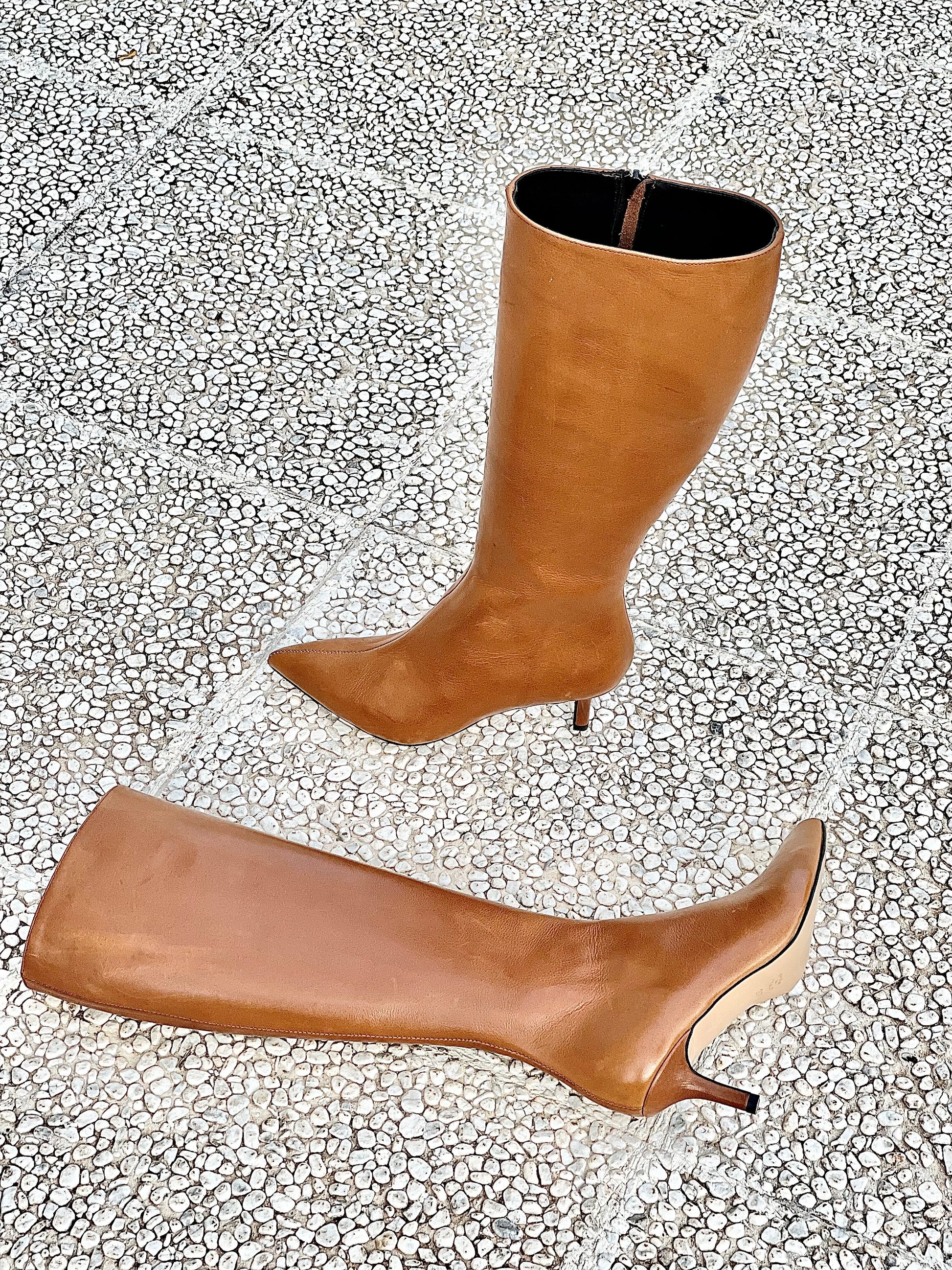 Leren laarzen met spitse neus, hak tot 60 mm.