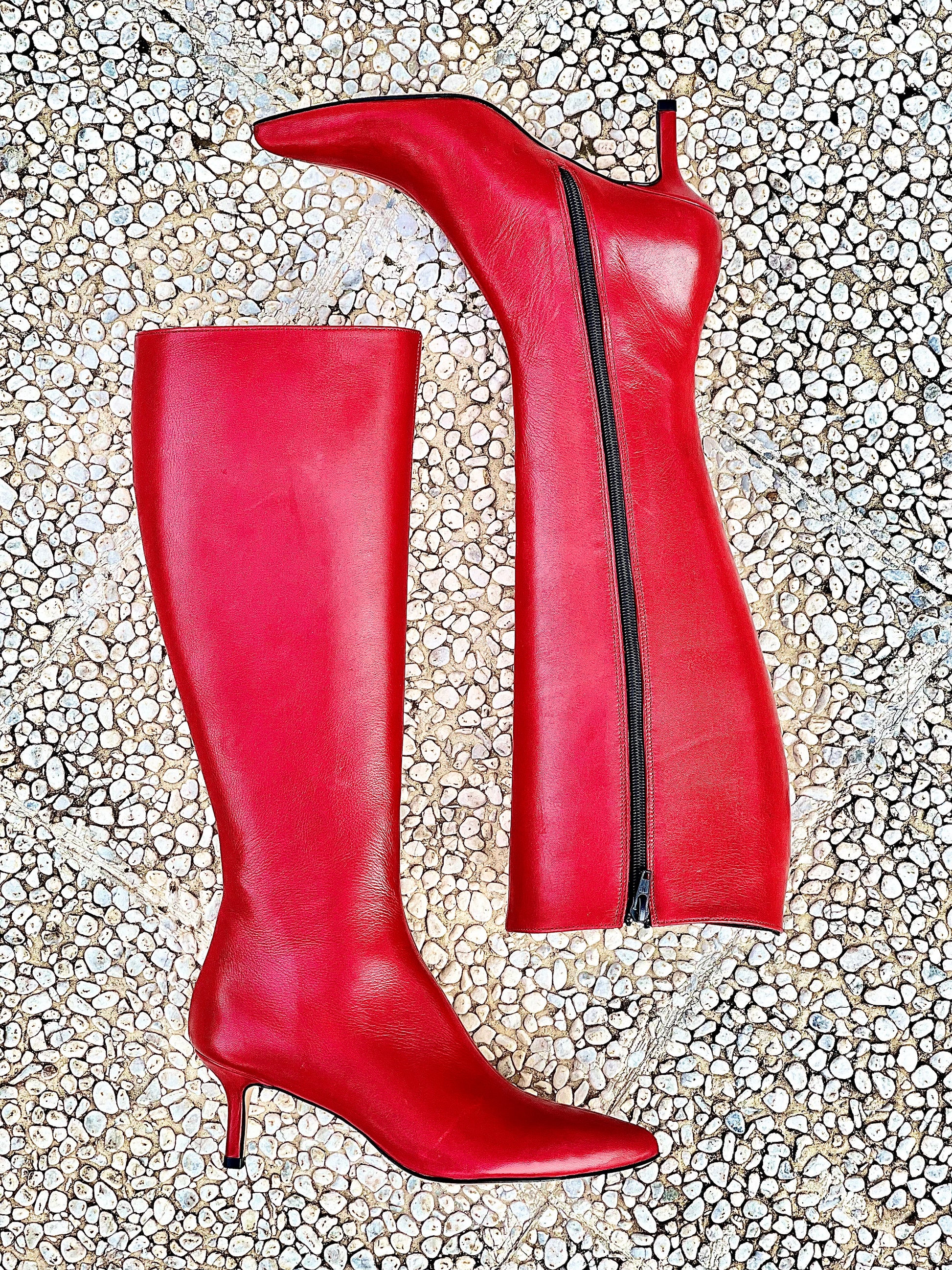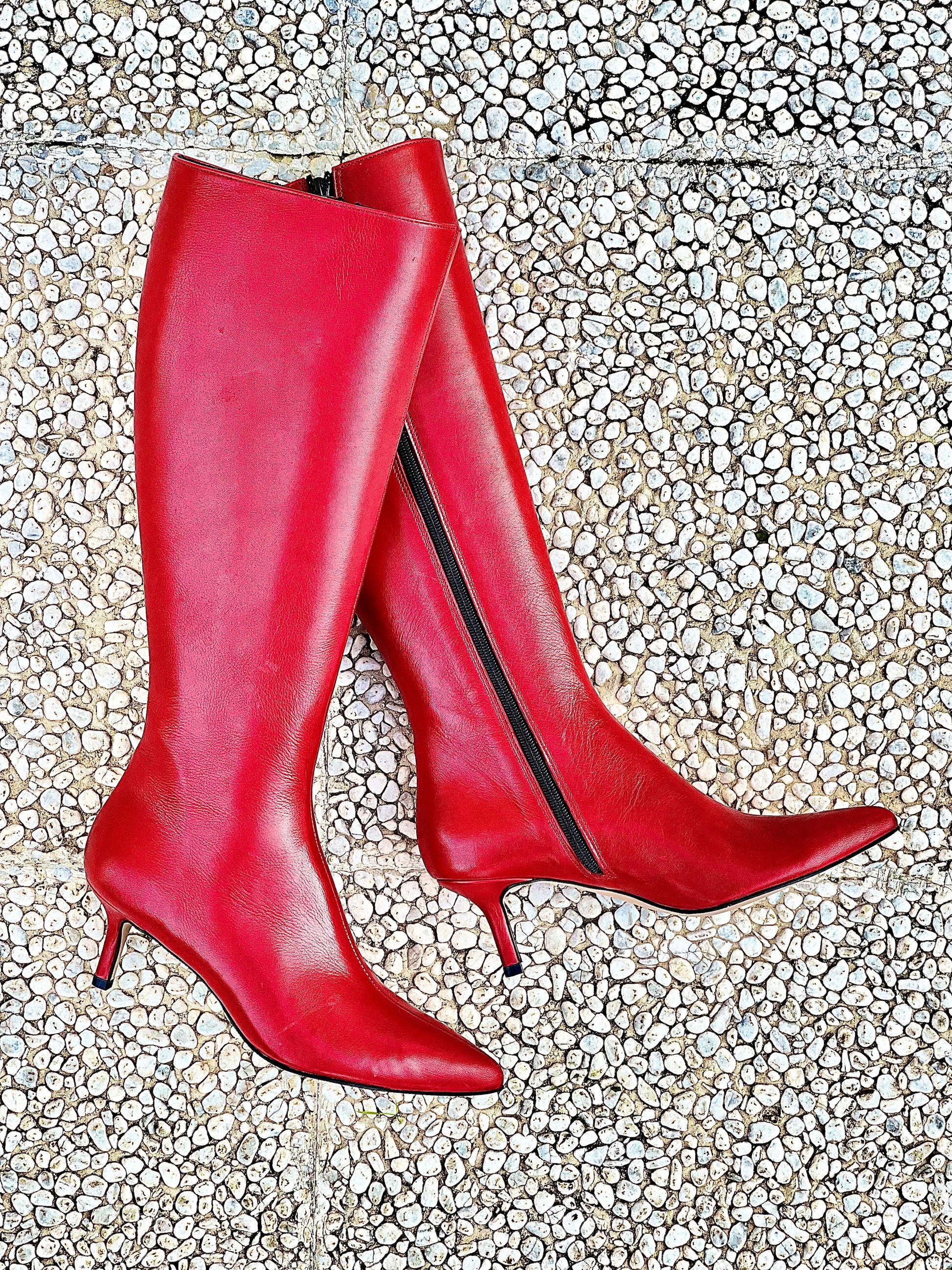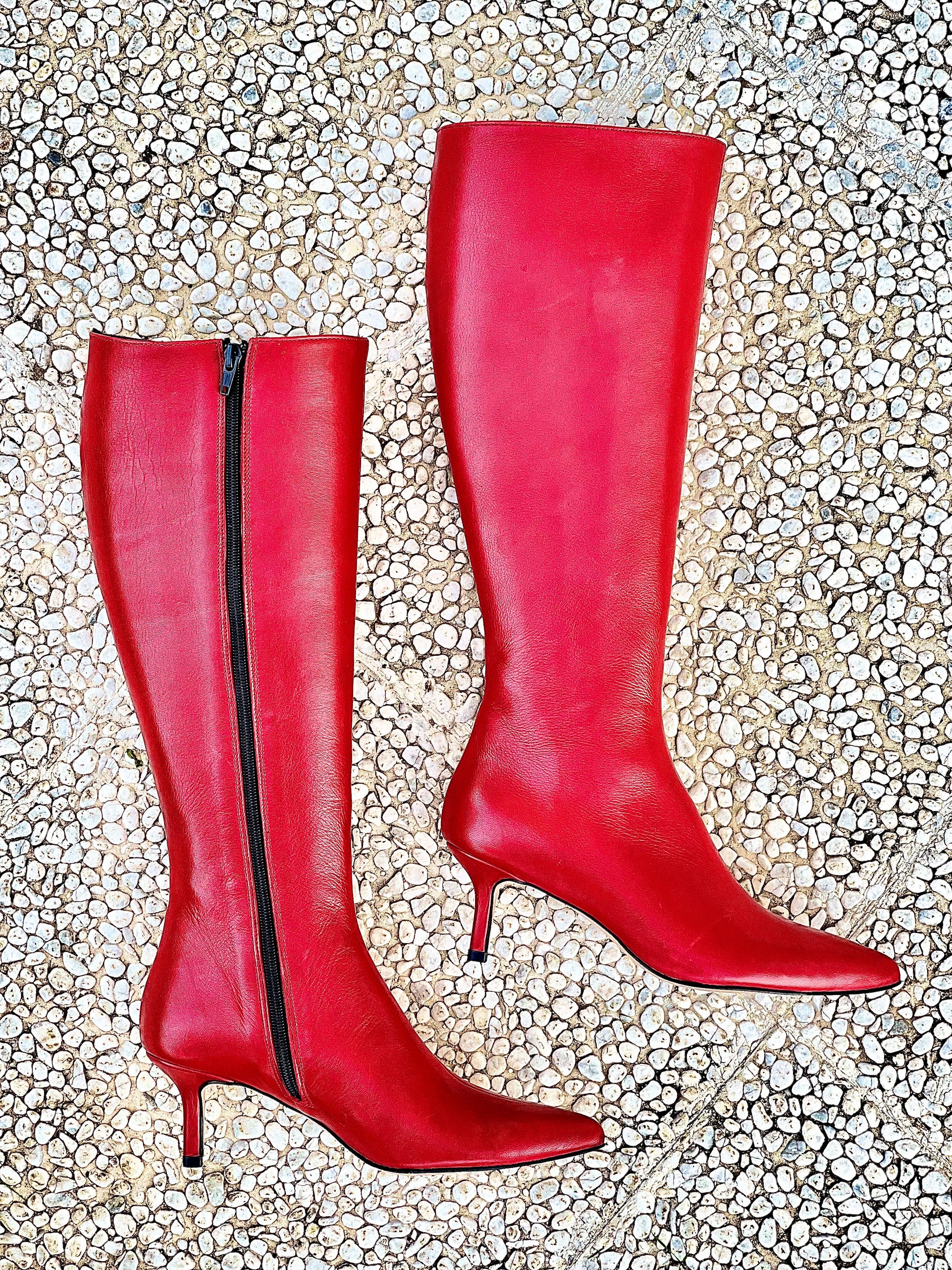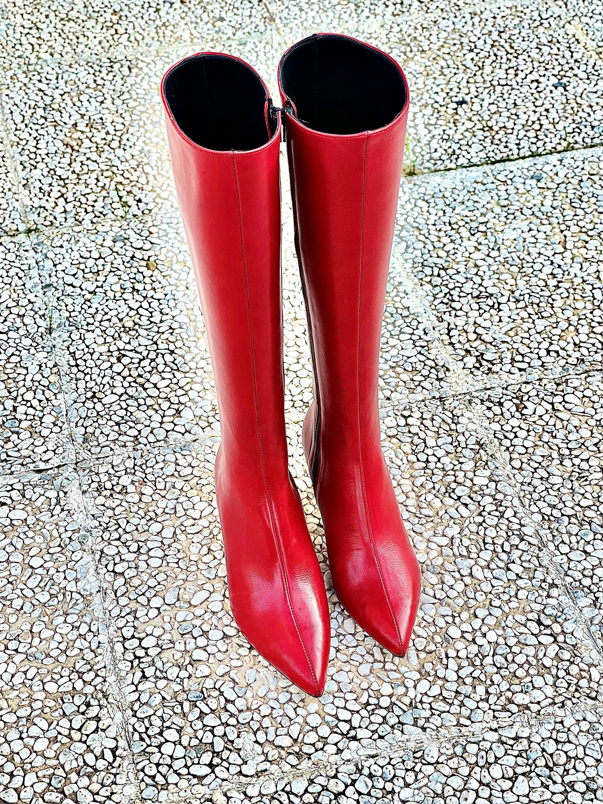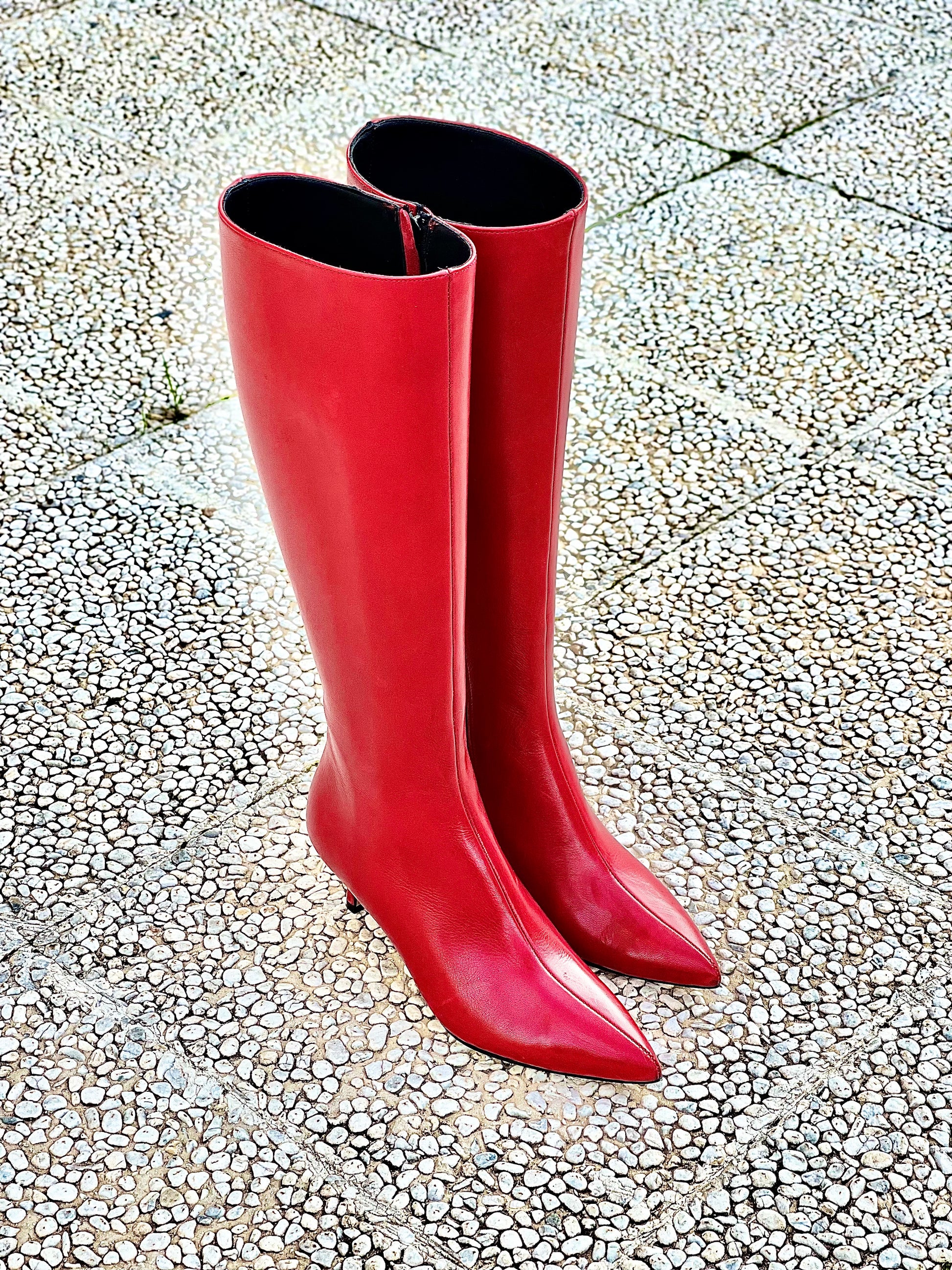 Leren laarzen met spitse neus, hak tot 60 mm.