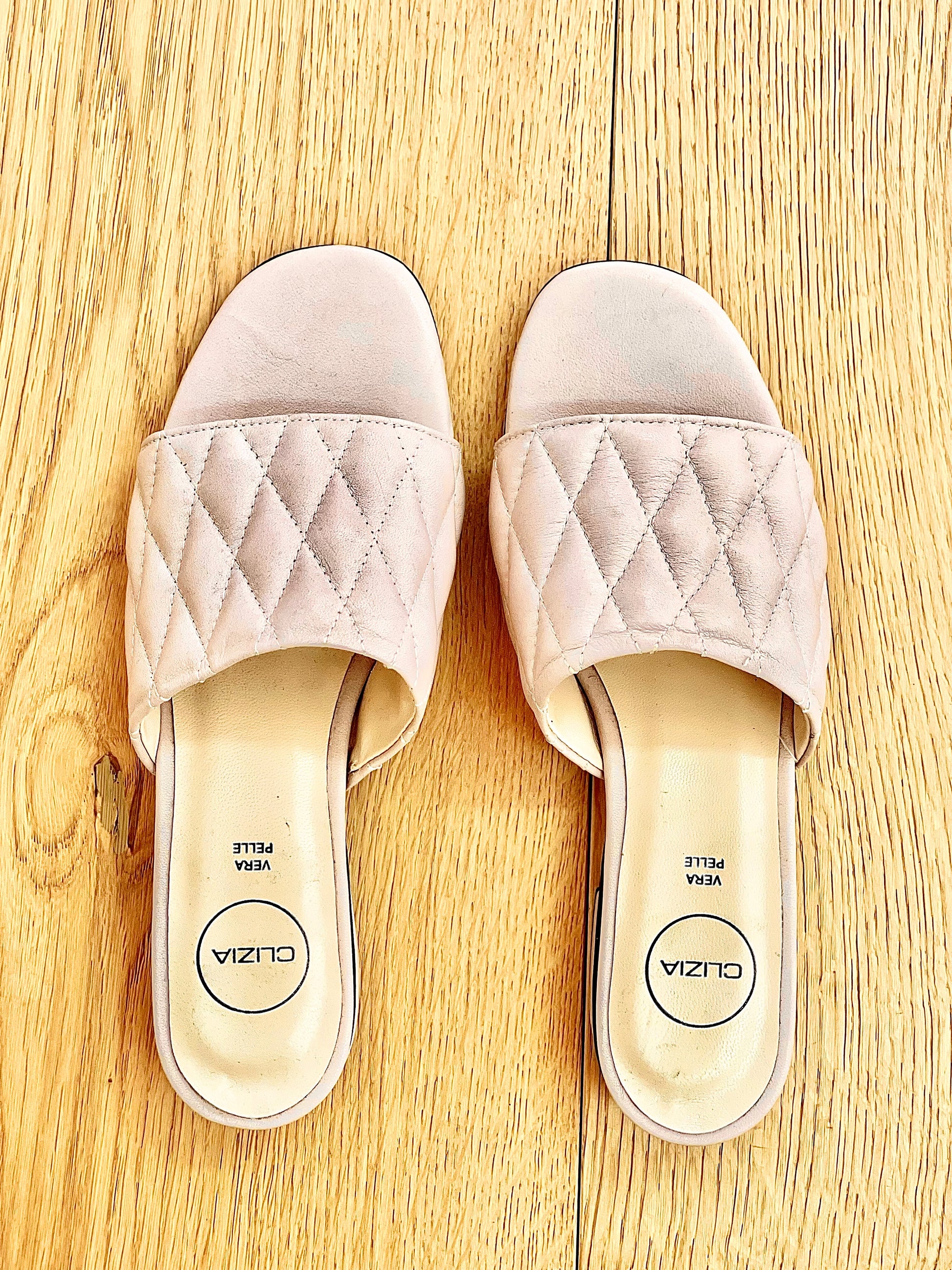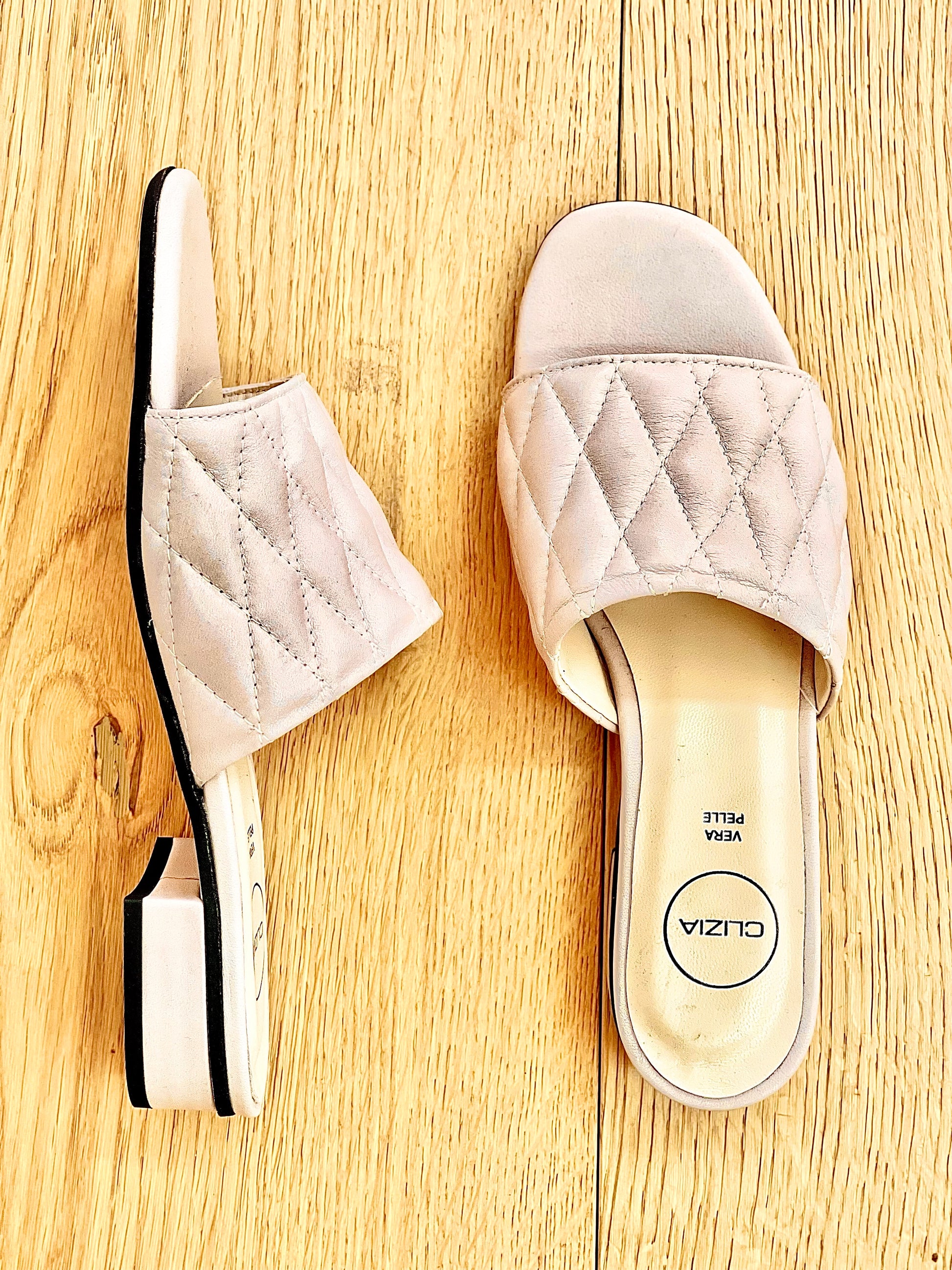 Lage muiltjes sandalen gewatteerde leren hak 2cm.