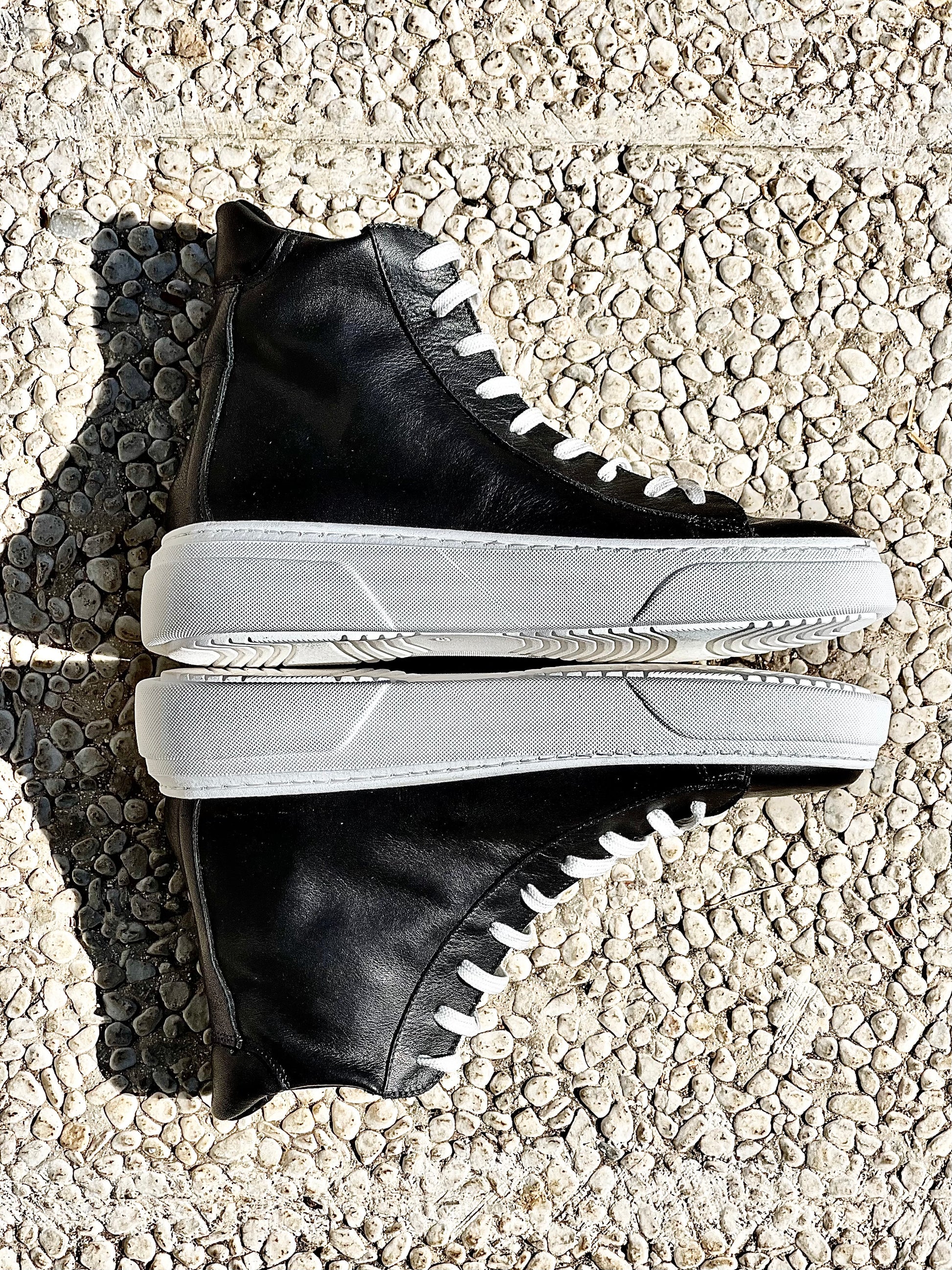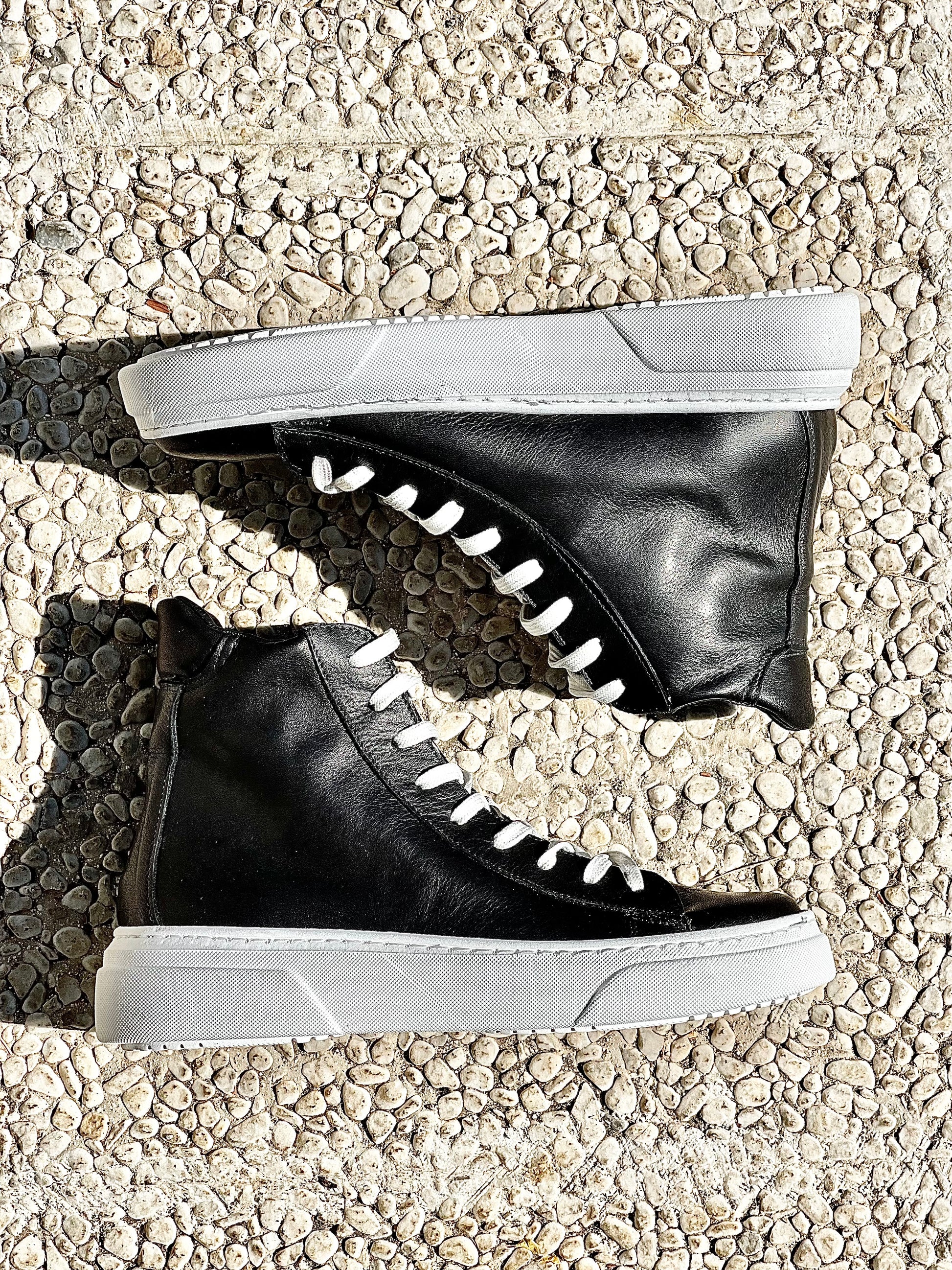 Sportschoenen met enkellaars en leren veters.