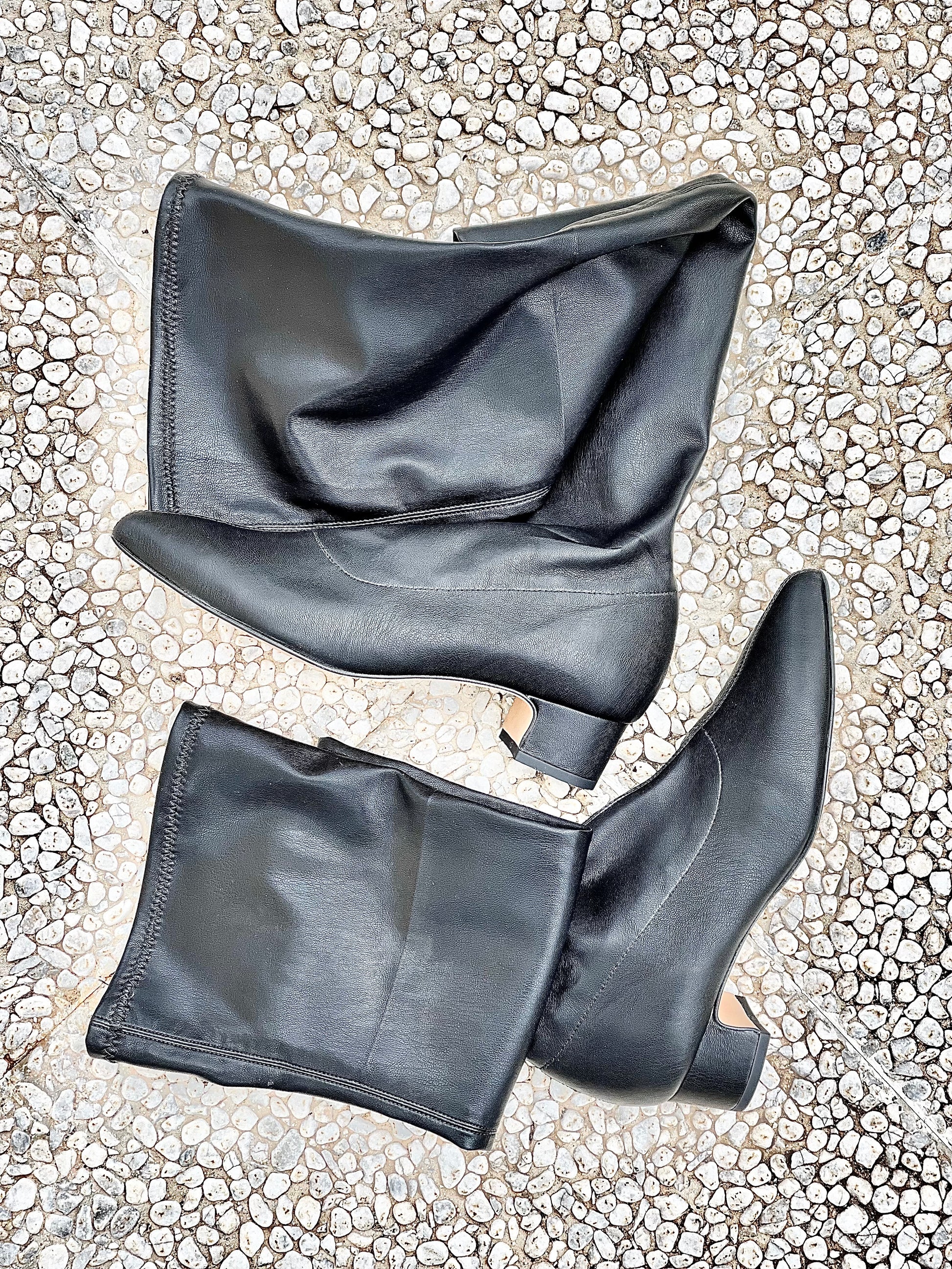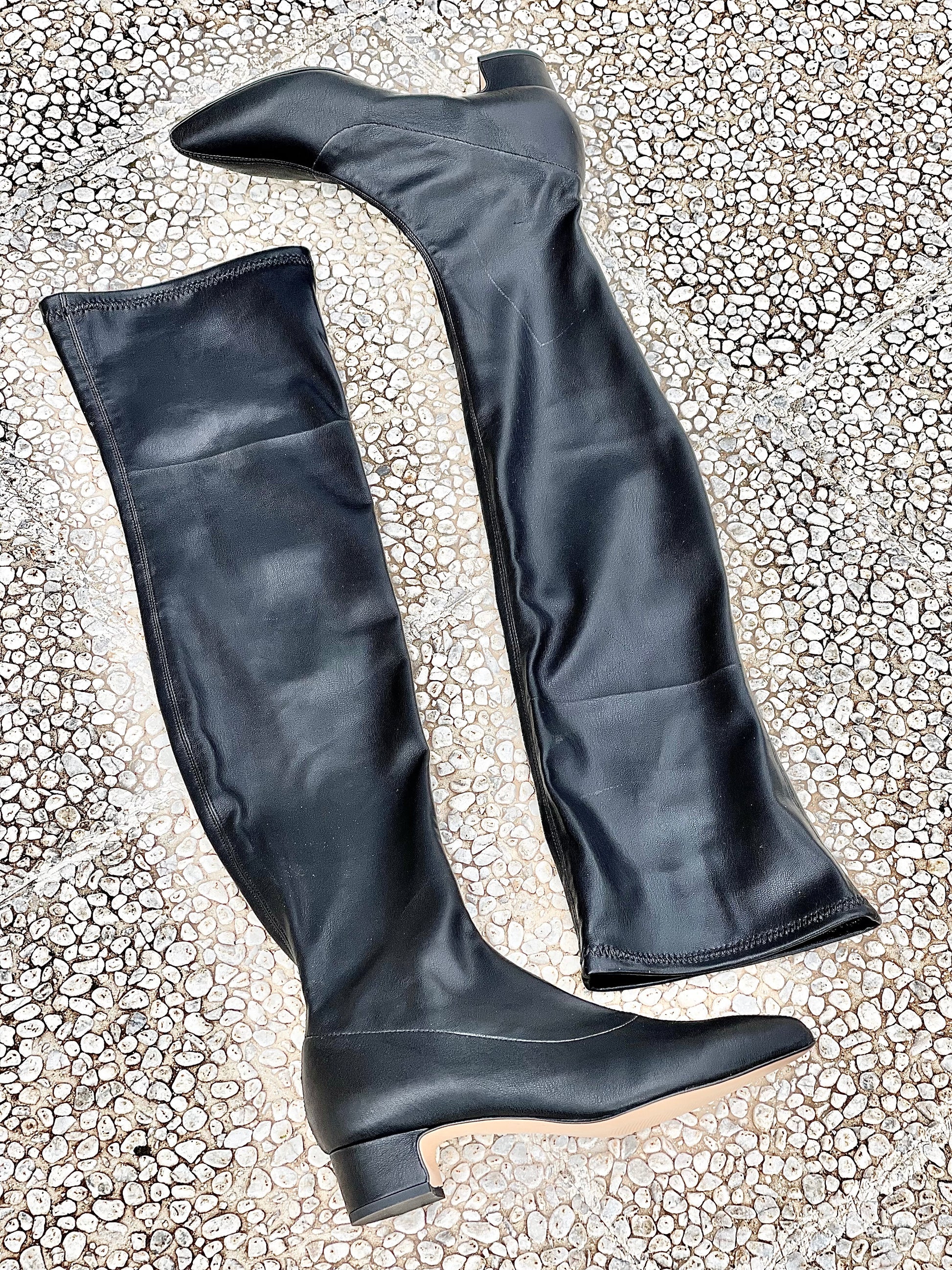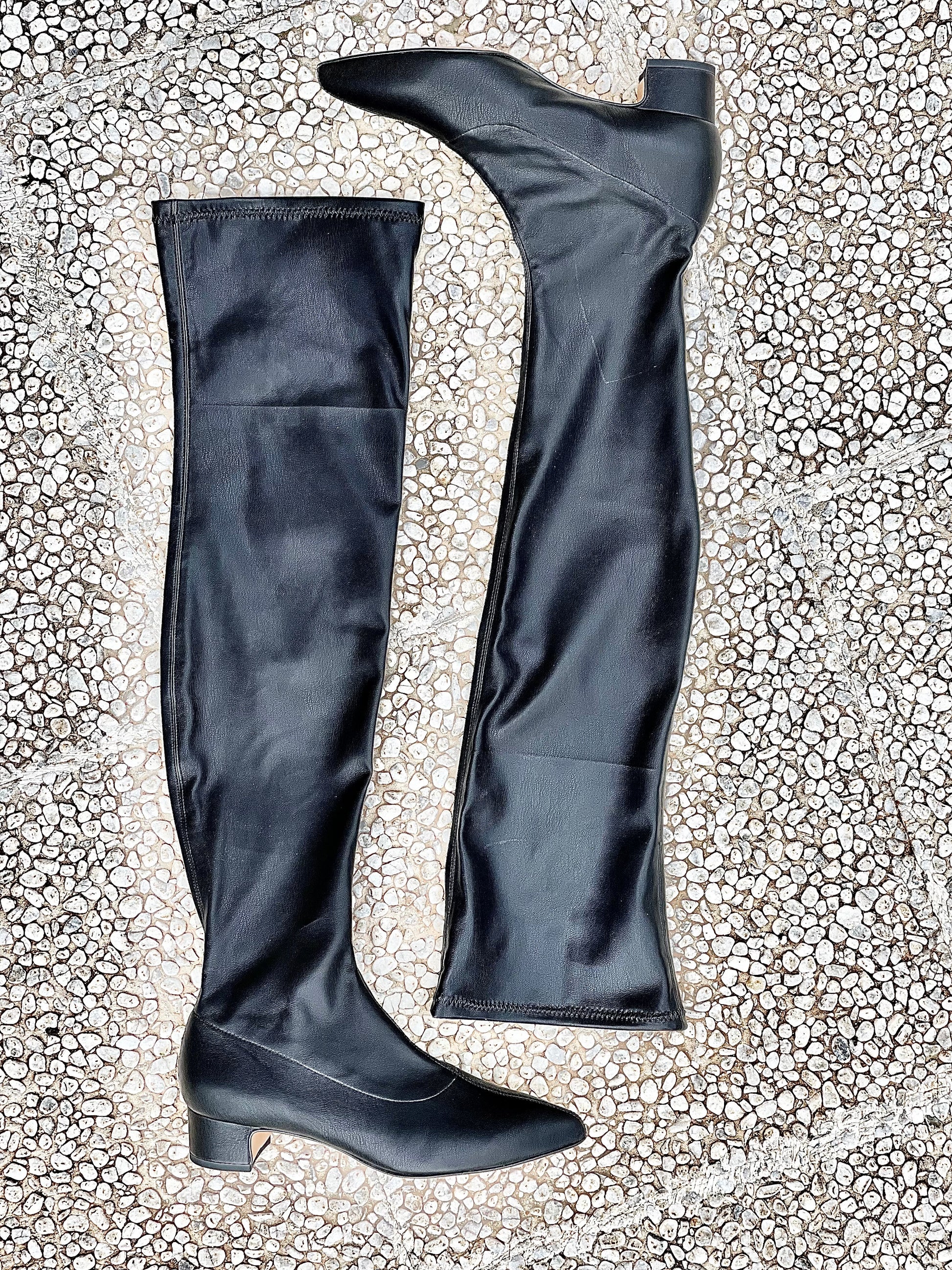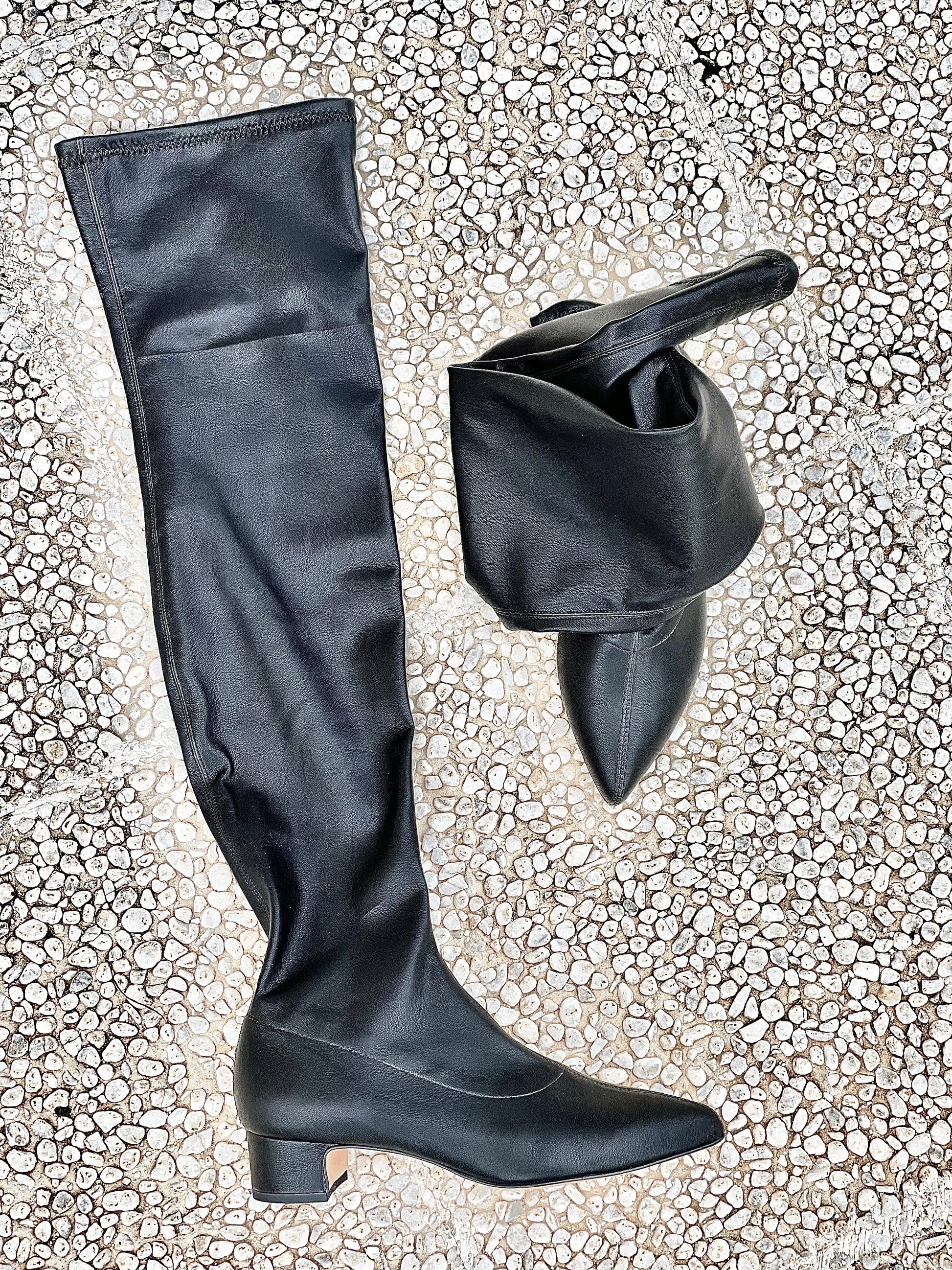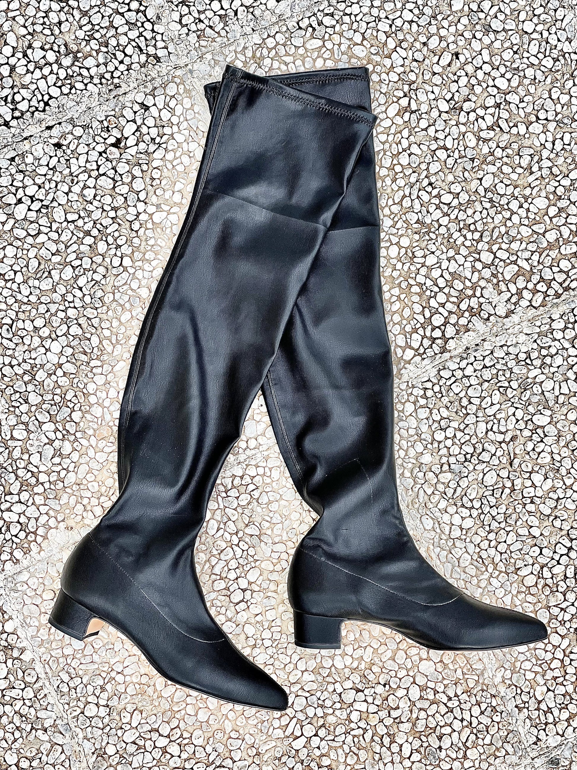 Elastische cuissard laarzen met puntige teen en hak van 3 cm.
