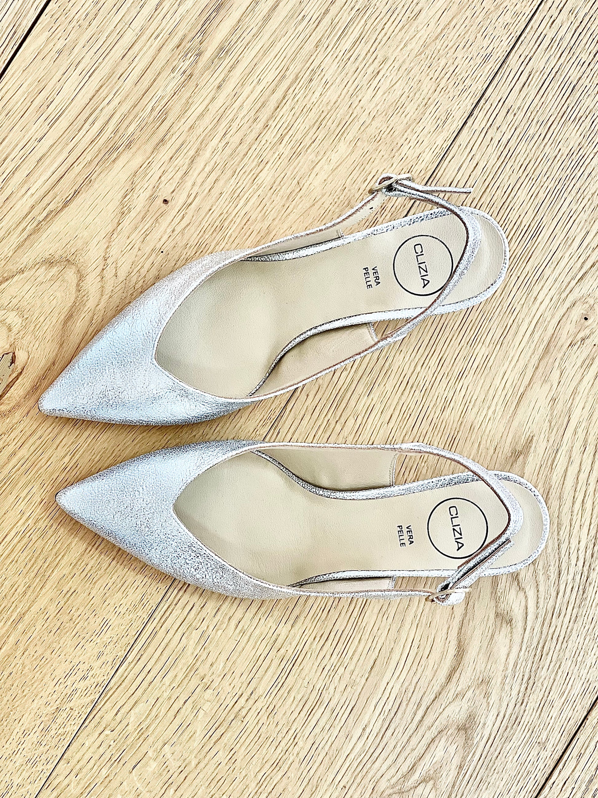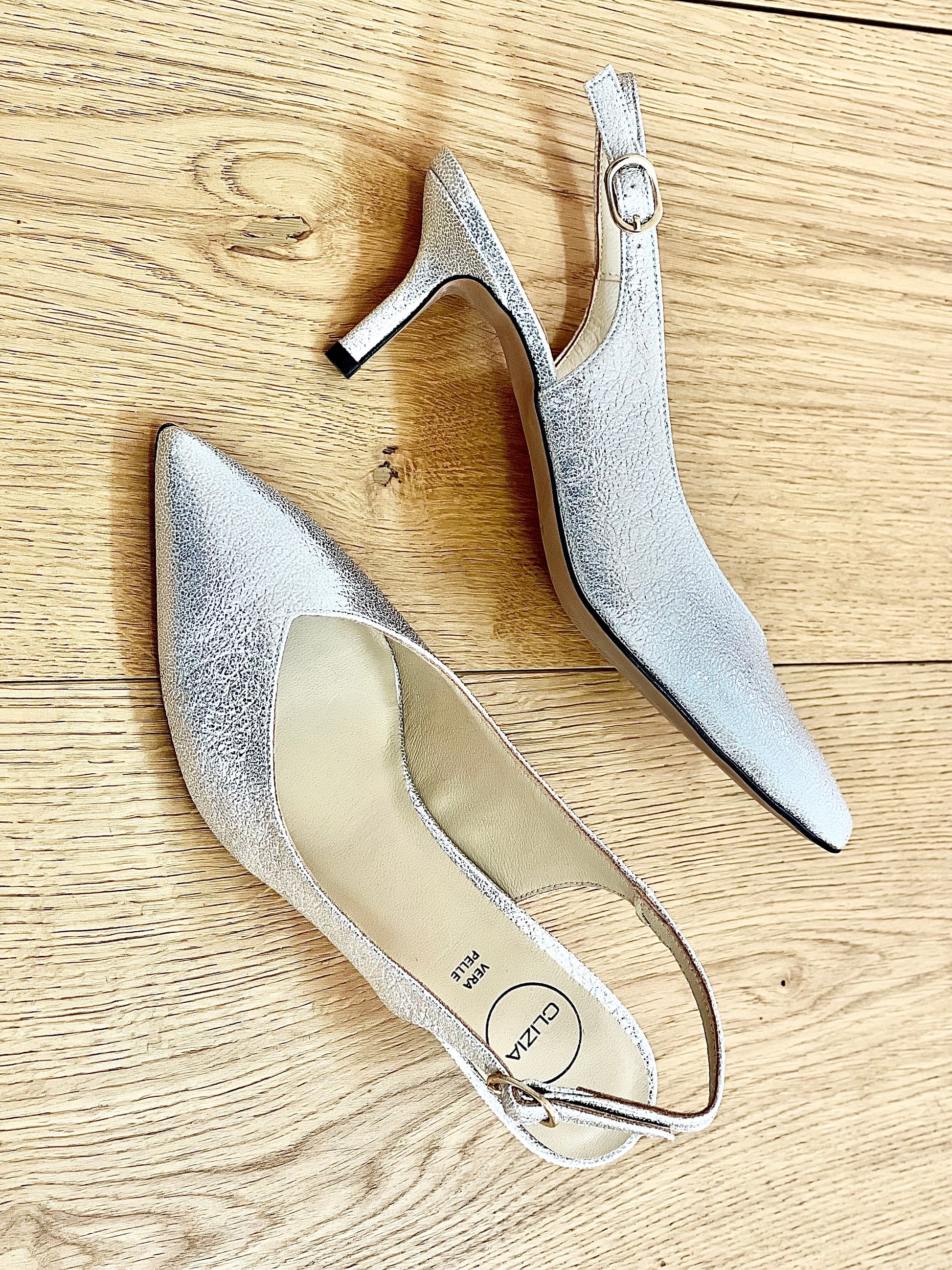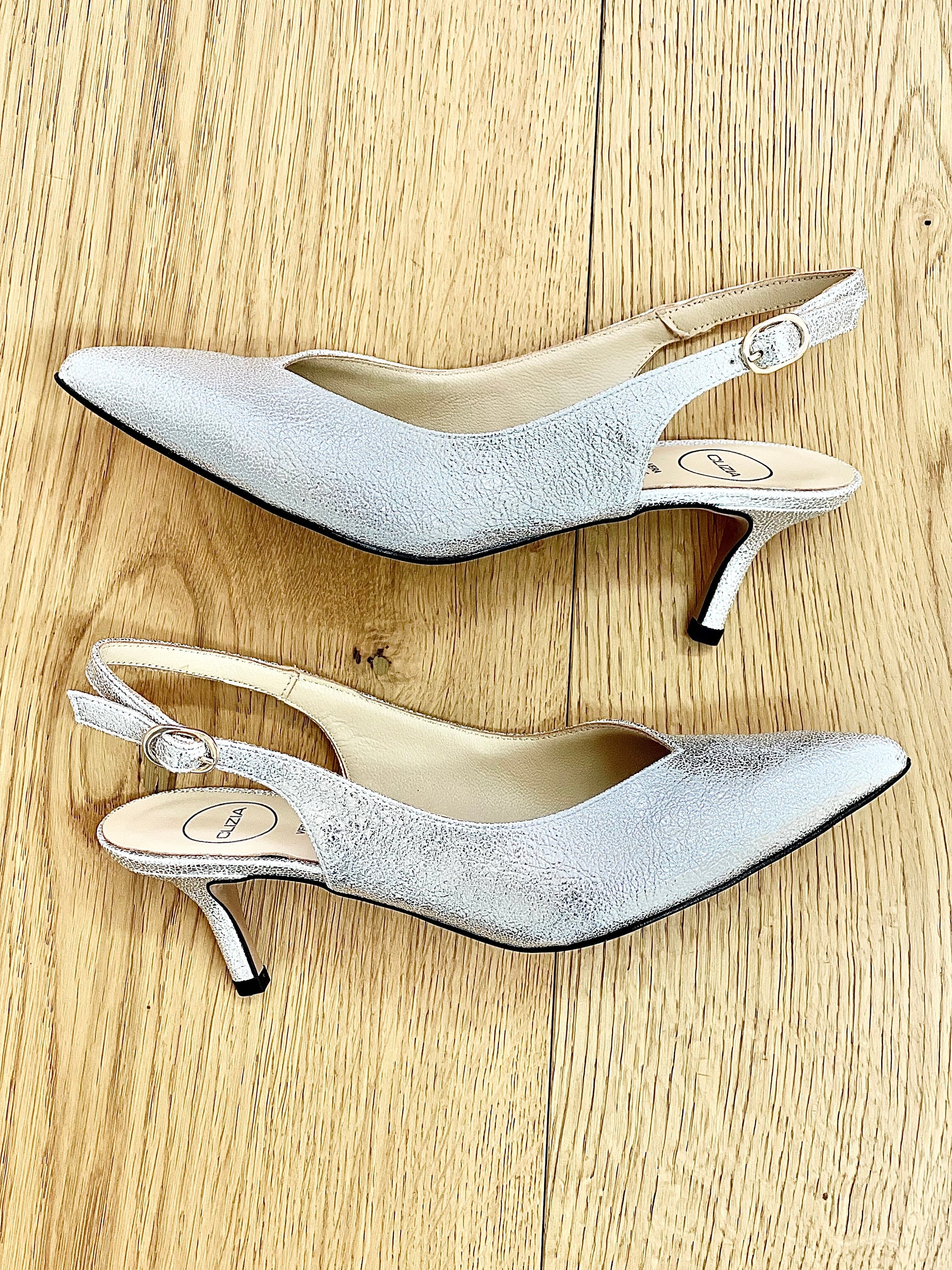 Spitse slingbackpump met V-hals en hak van 6 cm.