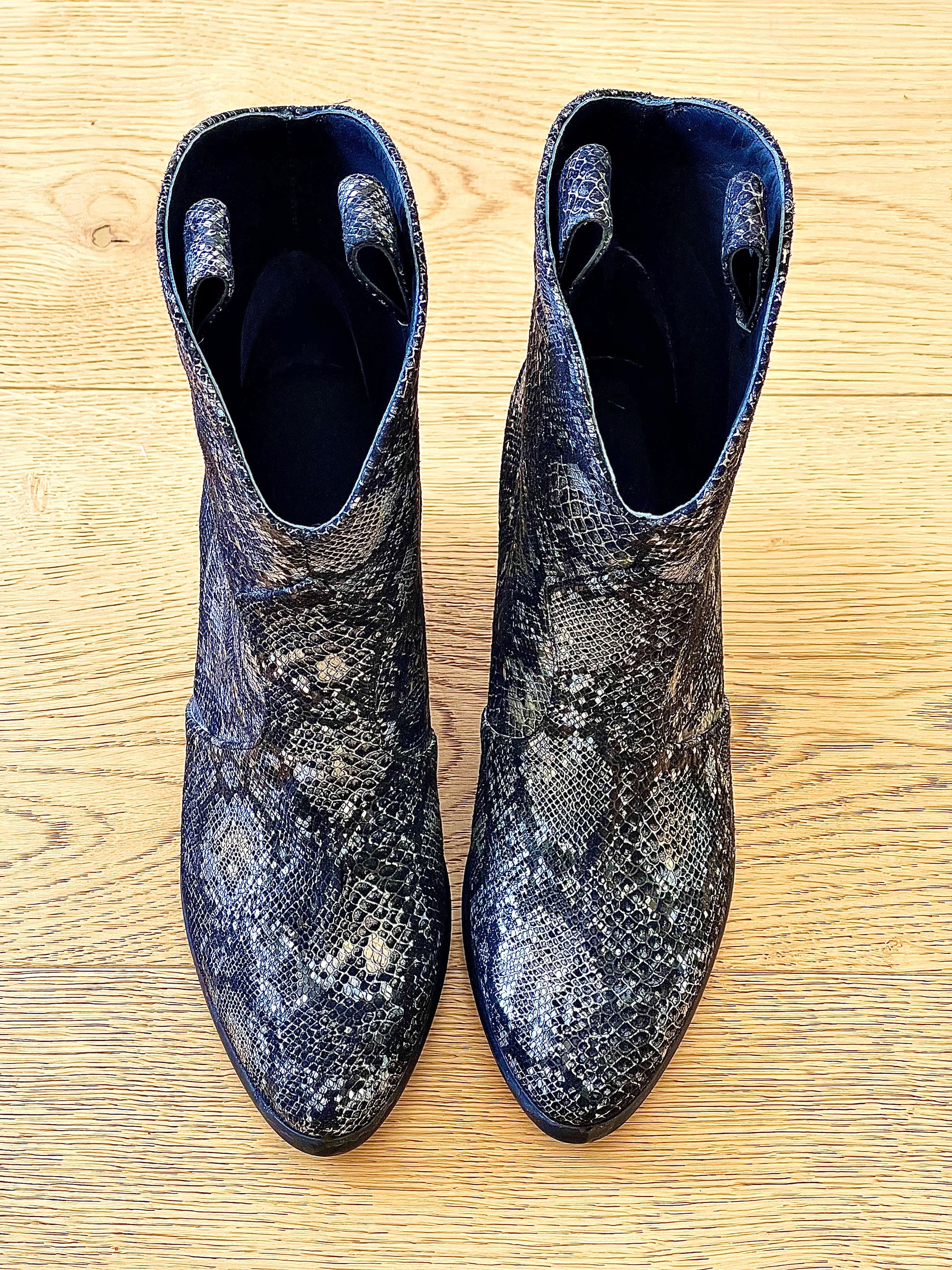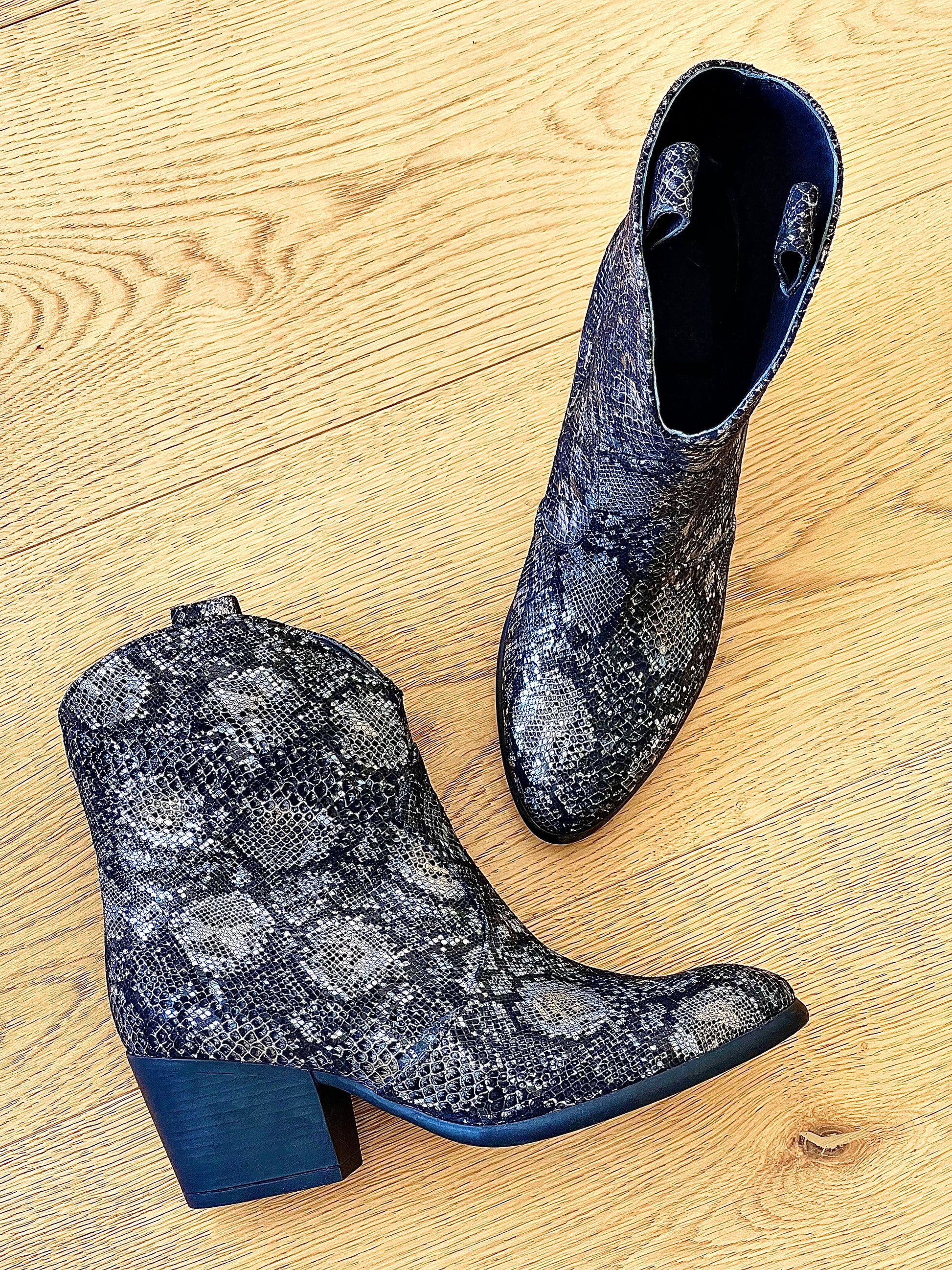 Texaanse enkellaarsjes met dierenprint en een hak van 6 cm.