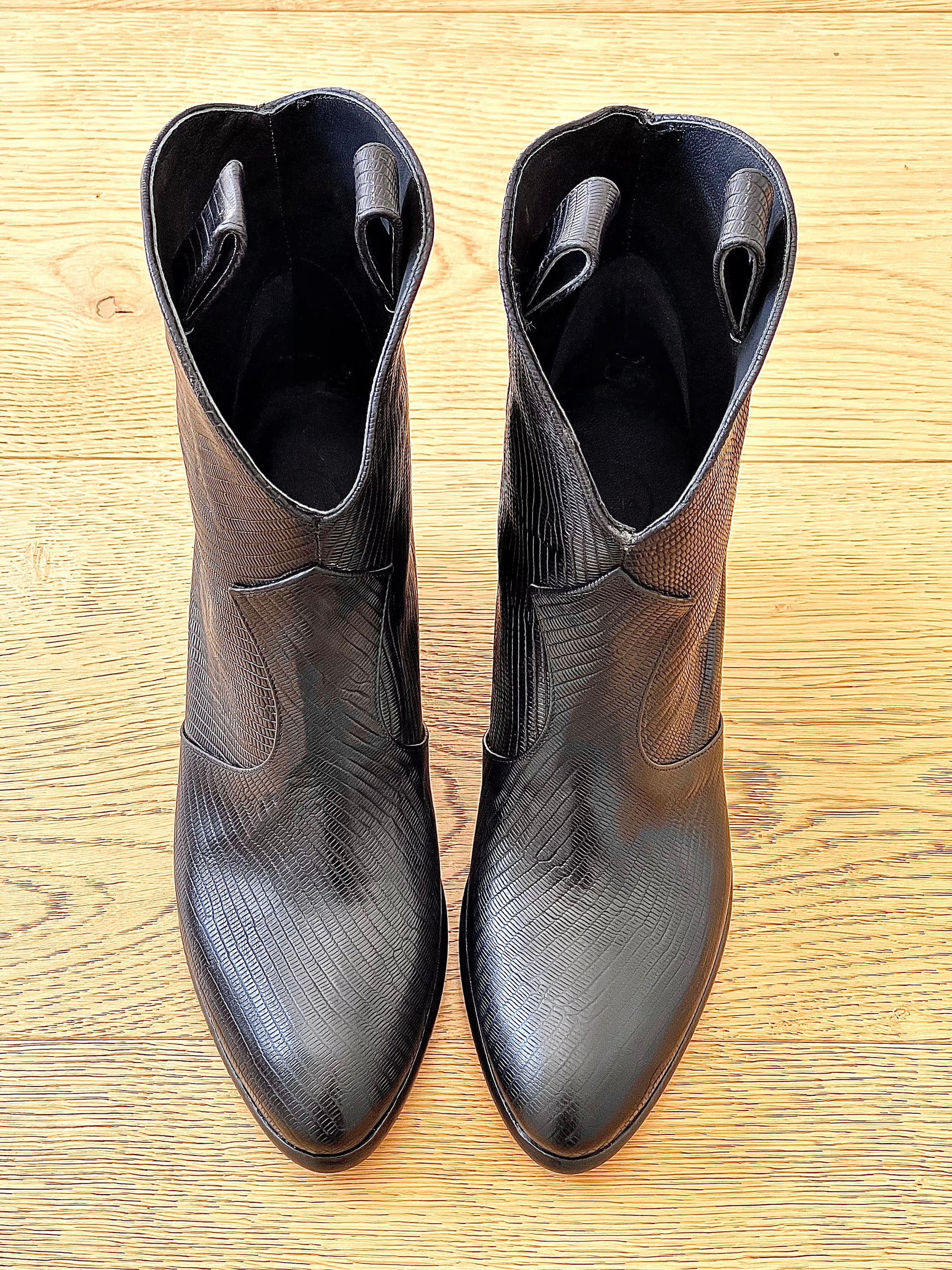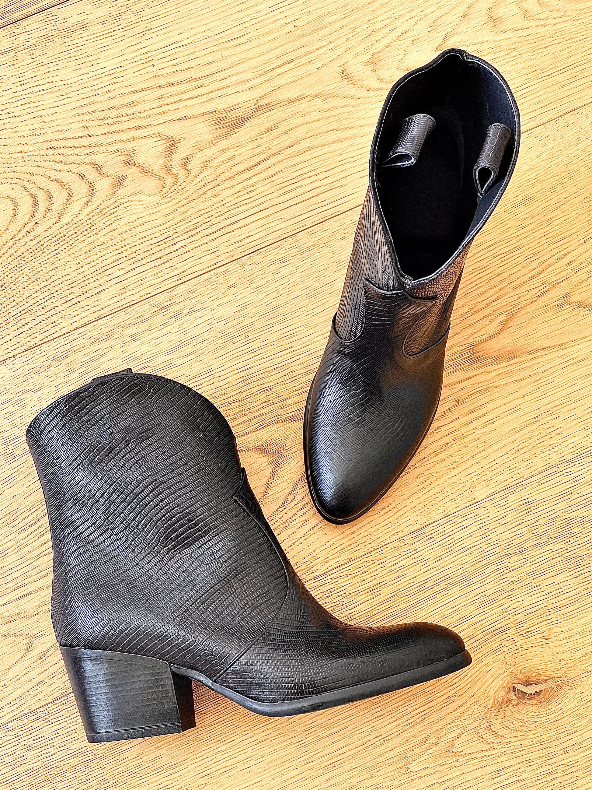 Texaanse enkellaarsjes met dierenprint en een hak van 6 cm.