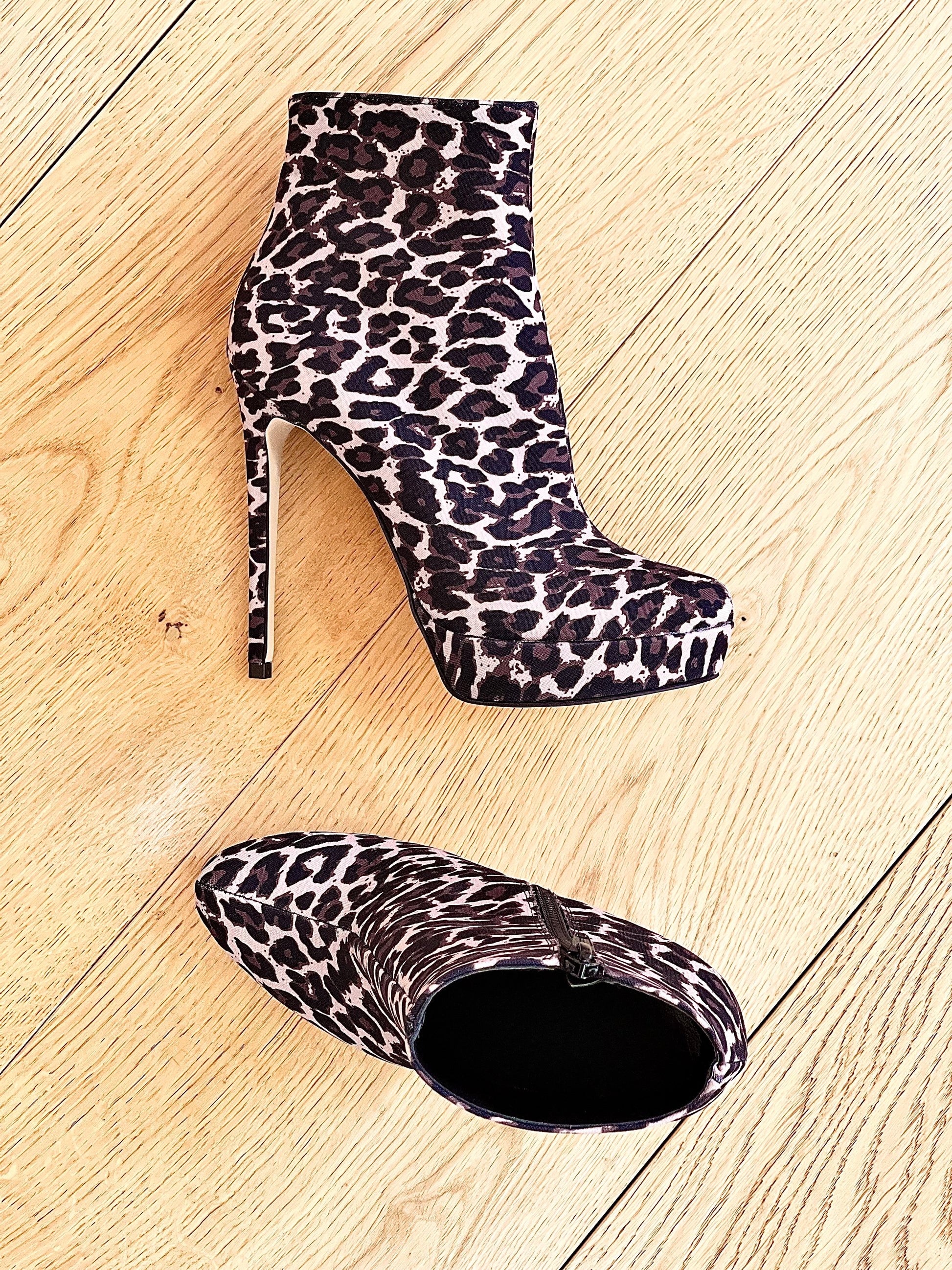 Hoge enkellaarsjes van 12 cm naaldhak en 2 cm plateau.