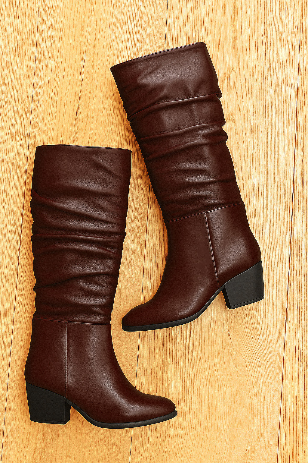 Ronde teen buisvormige doorgezakte laarzen.