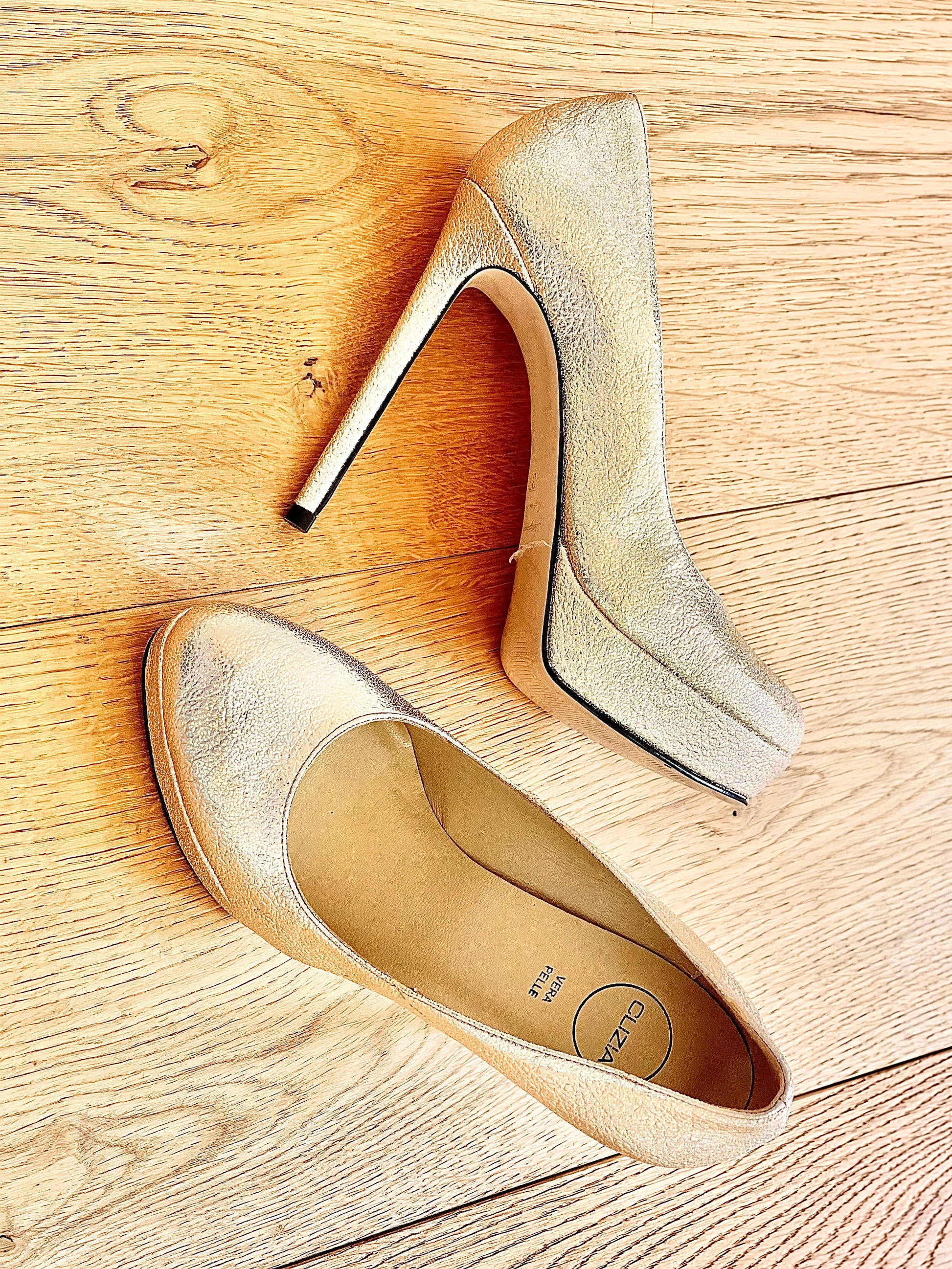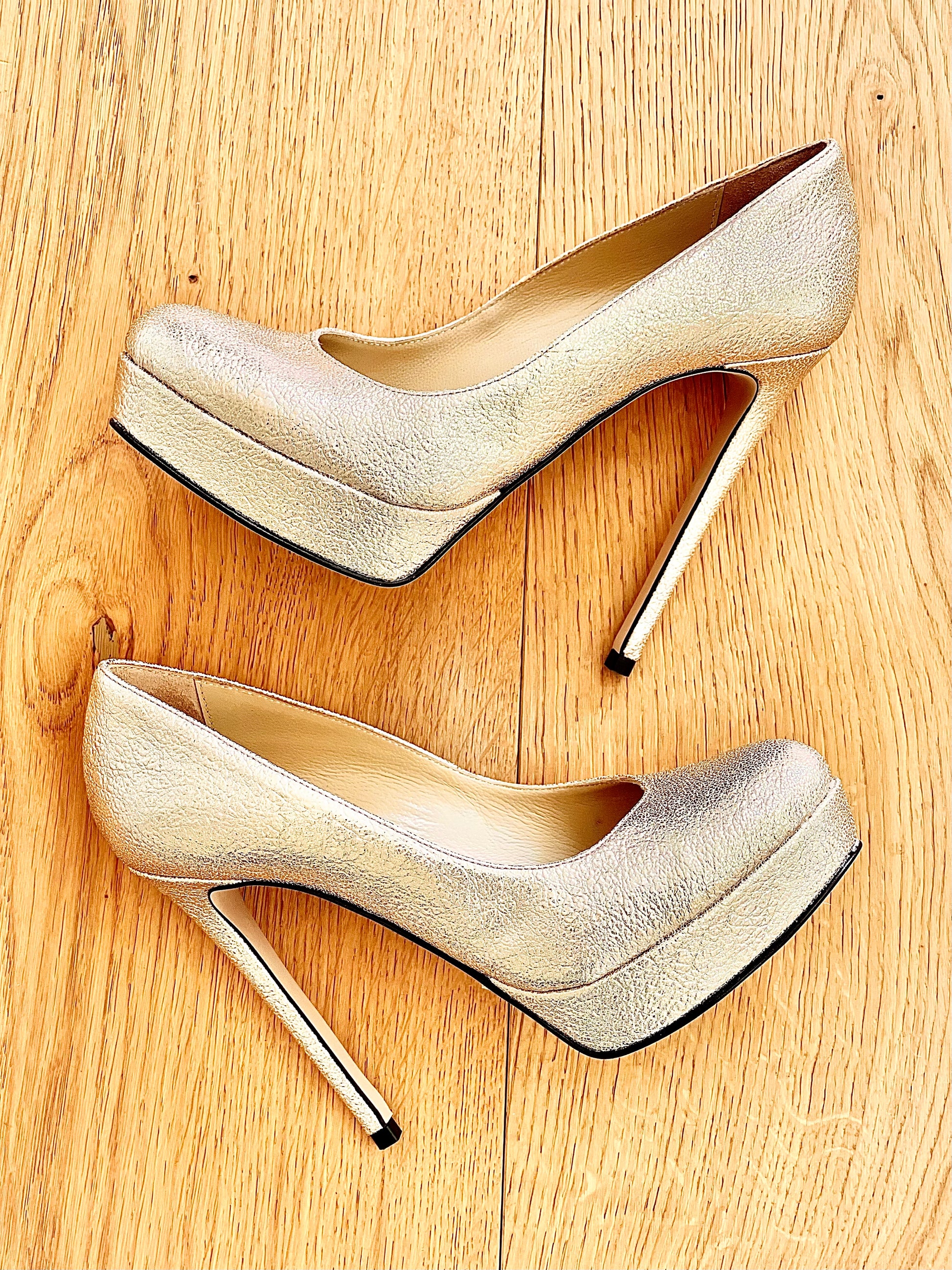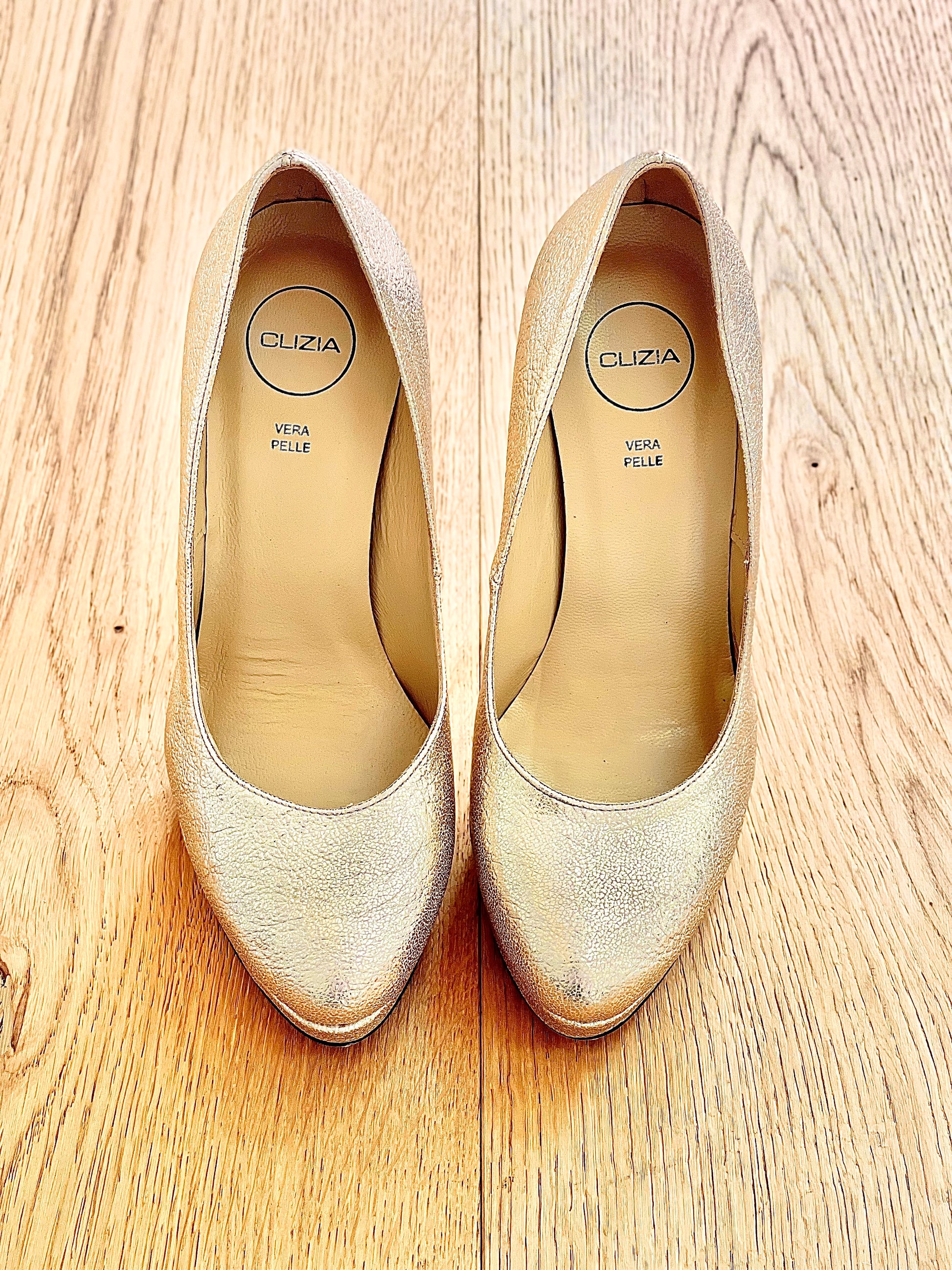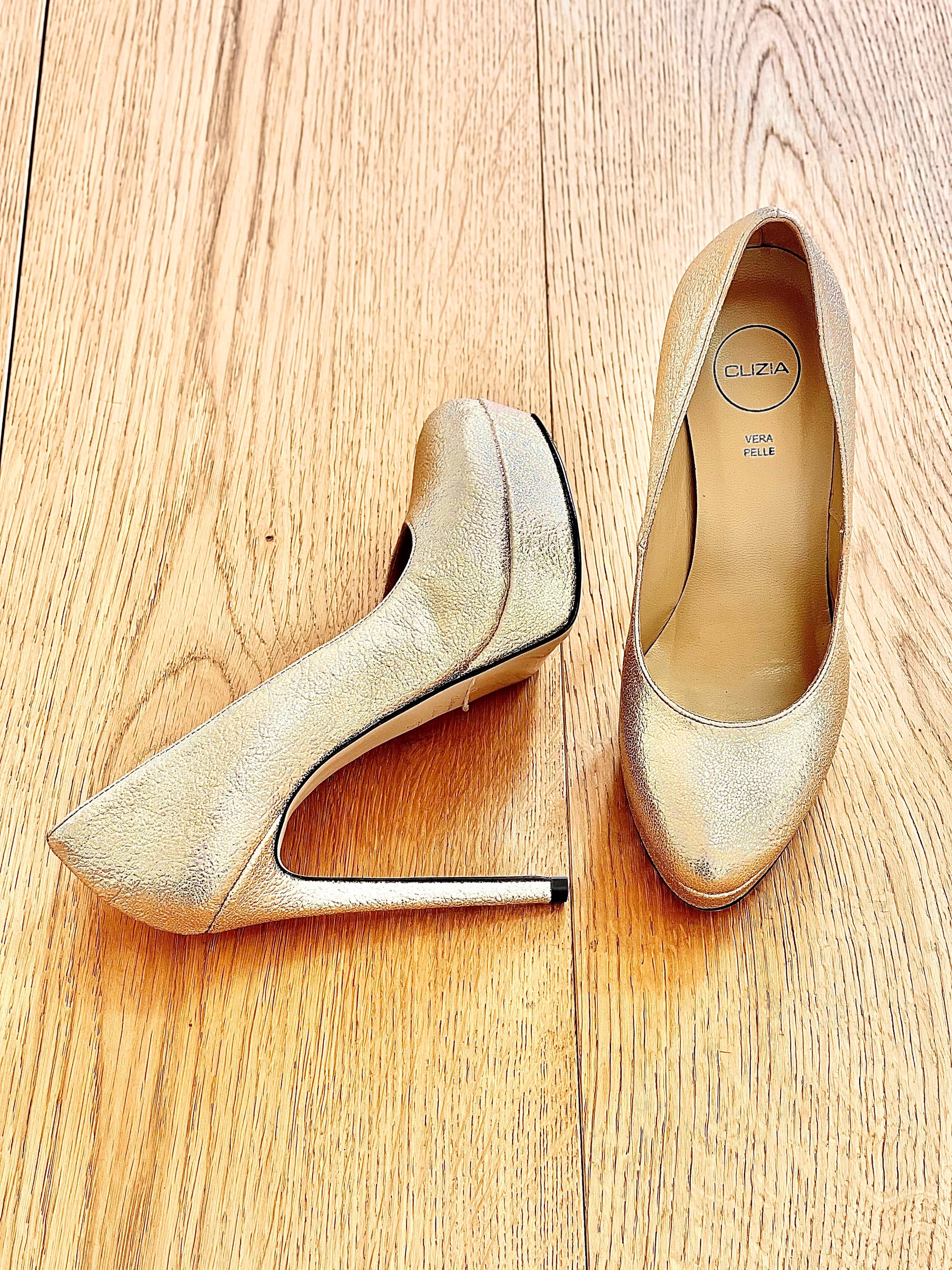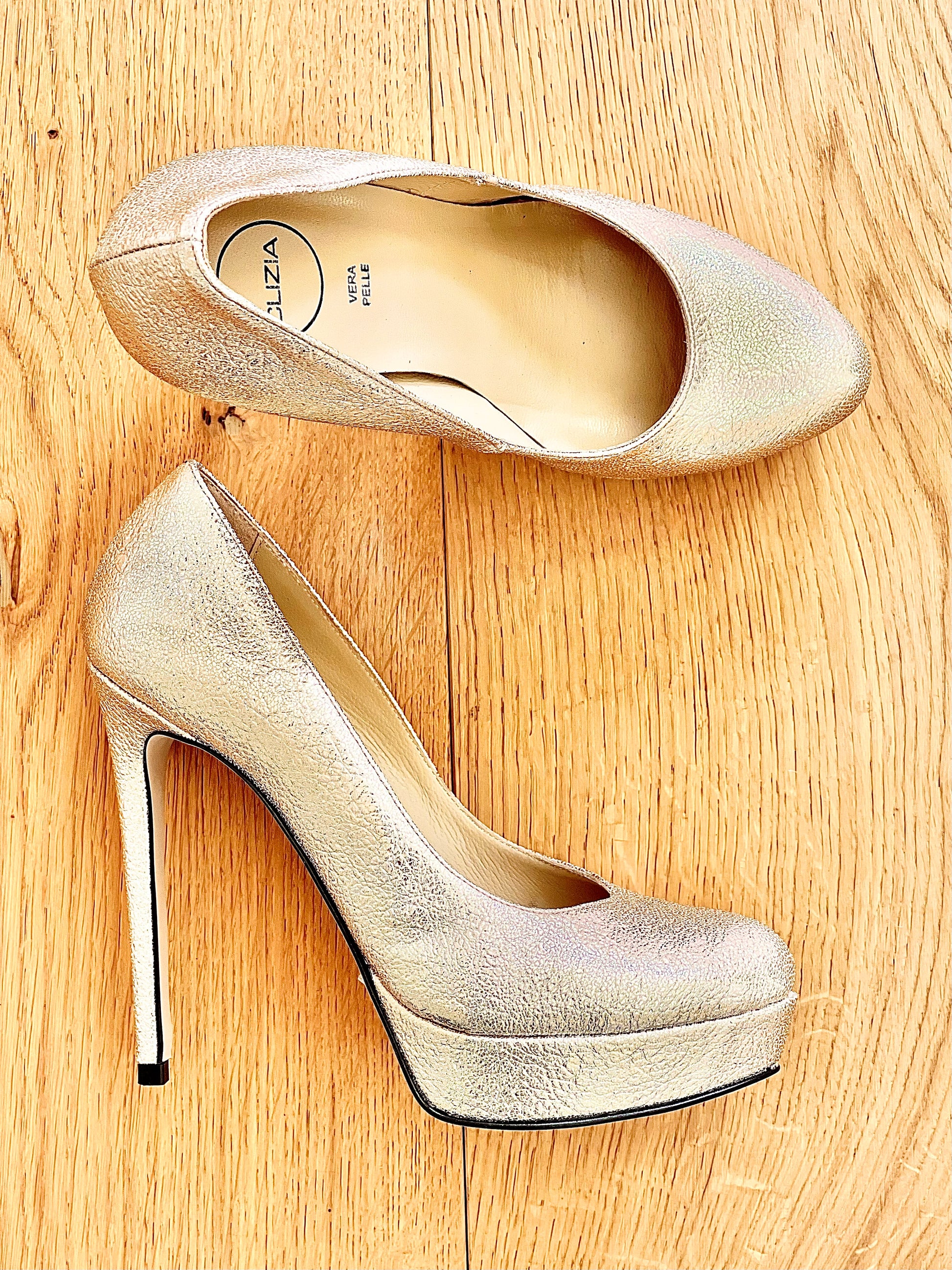 Pump met ronde teen, gelamineerde hak van 12 cm en plateau van 2 cm.