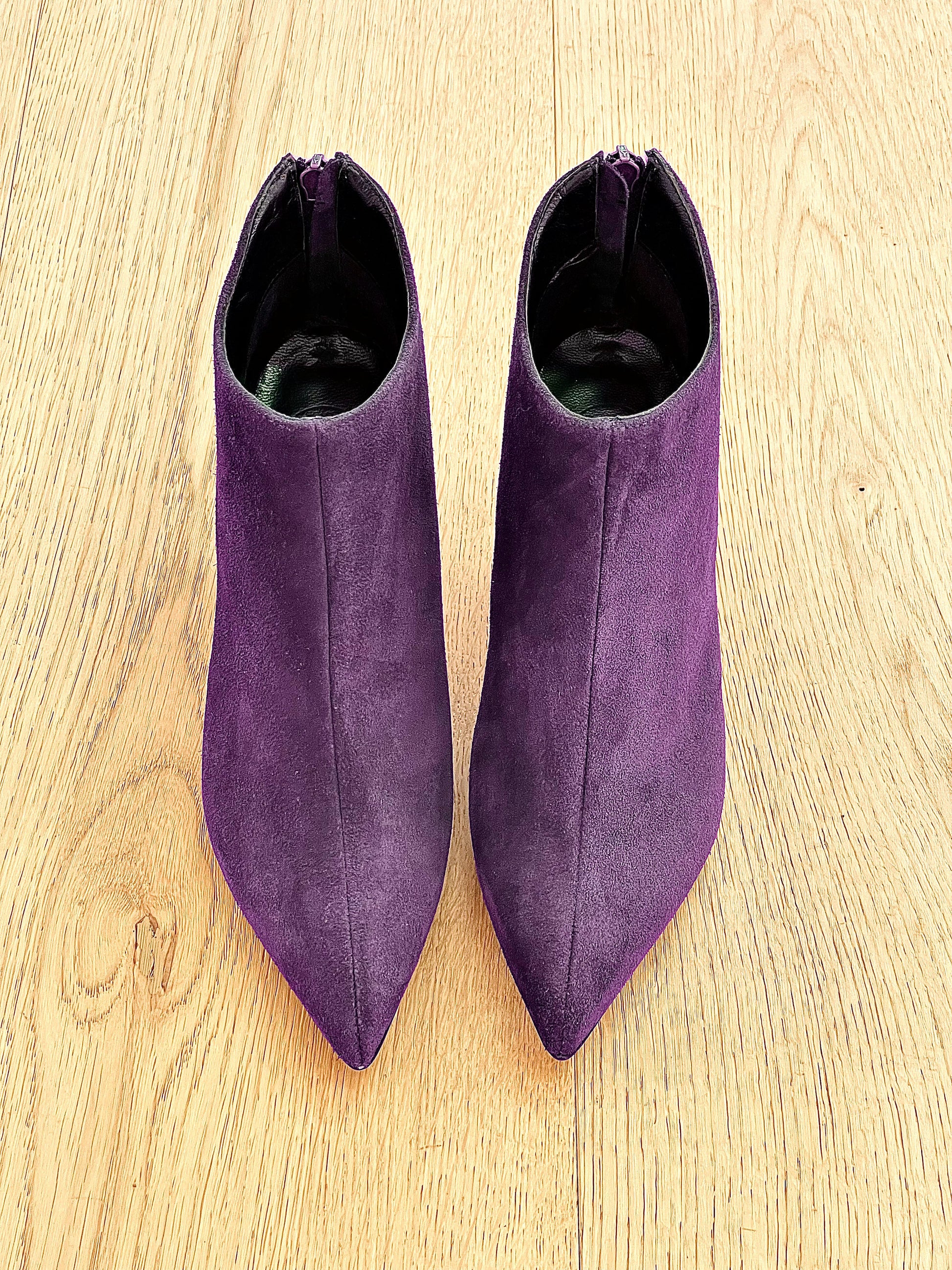 Suède enkellaarsjes met rits aan de achterkant.