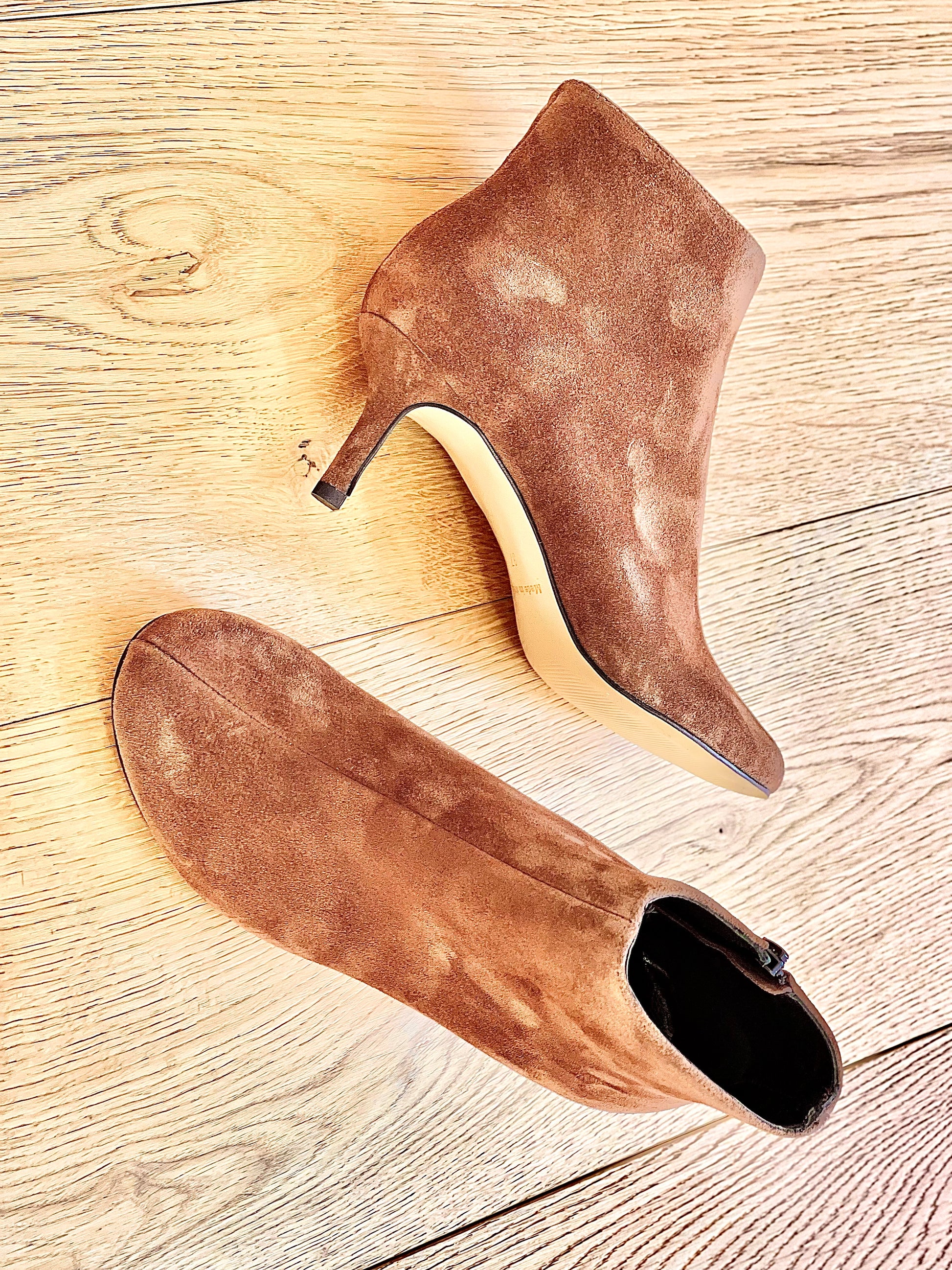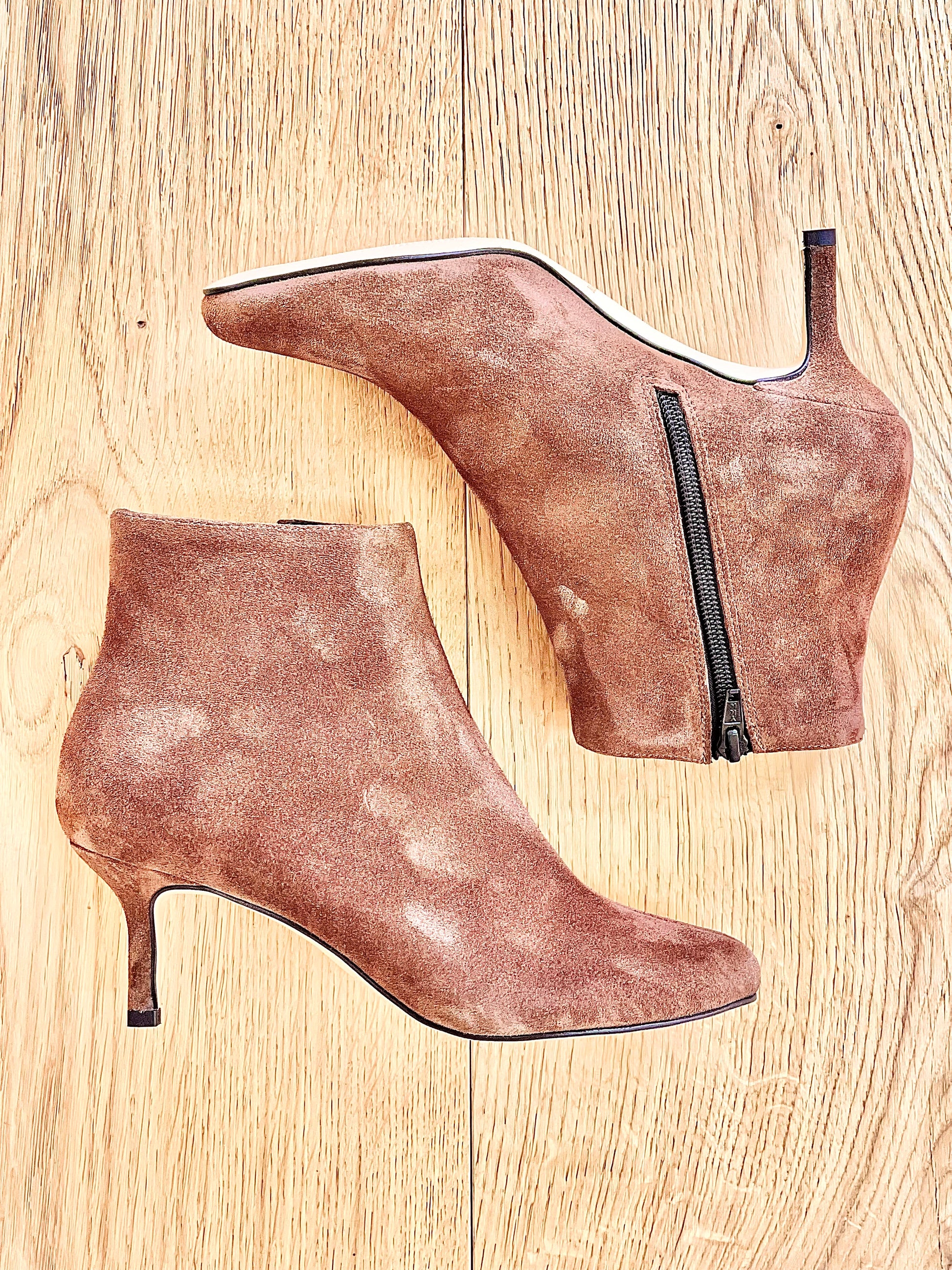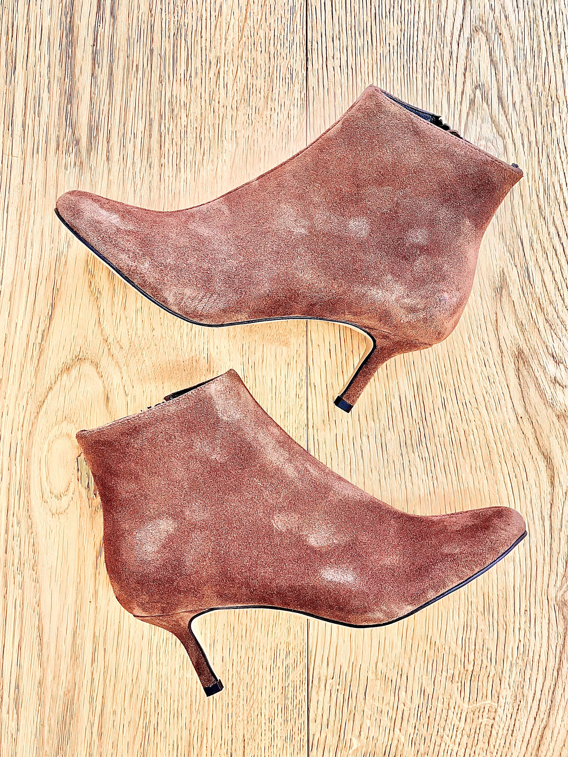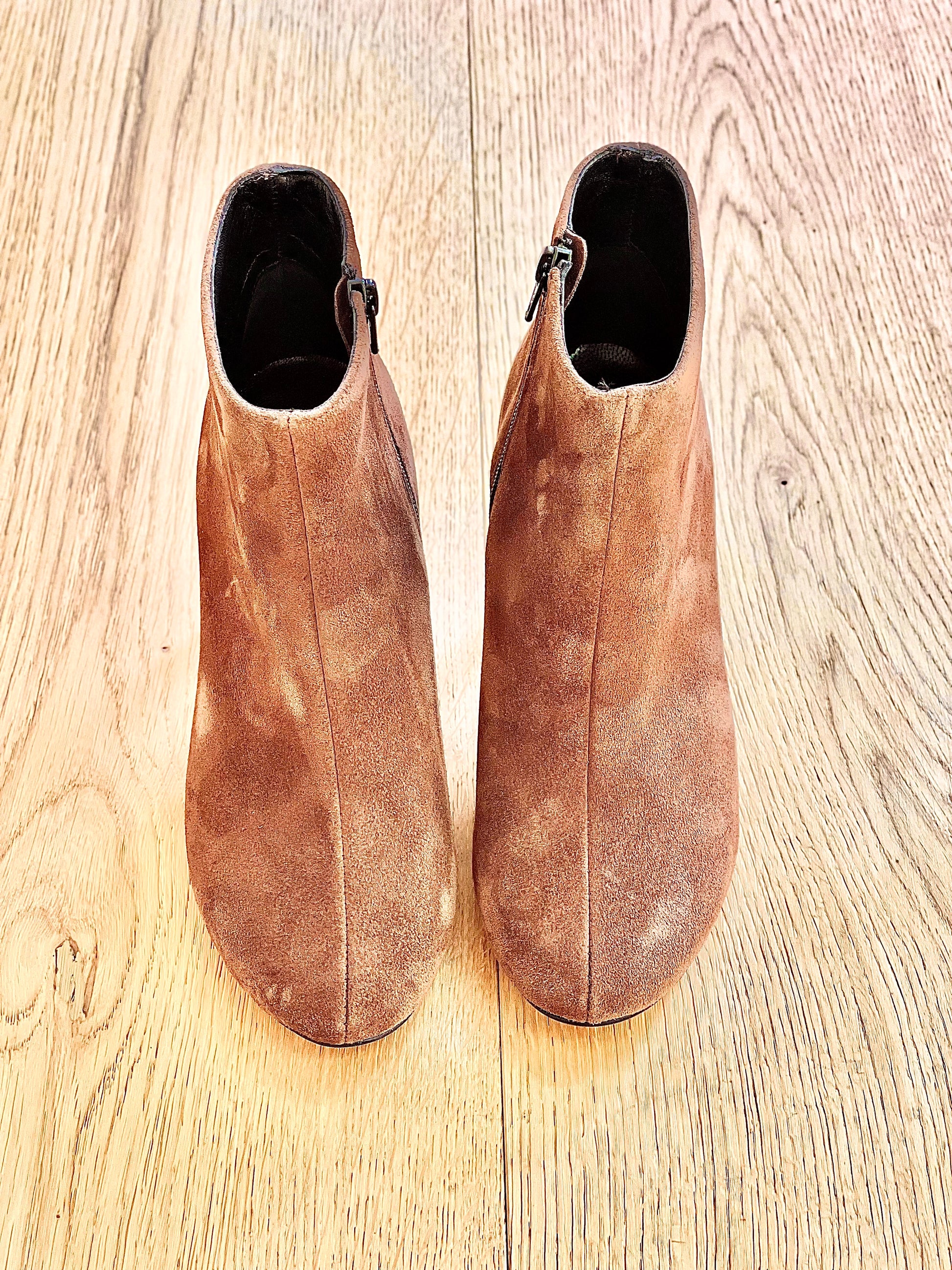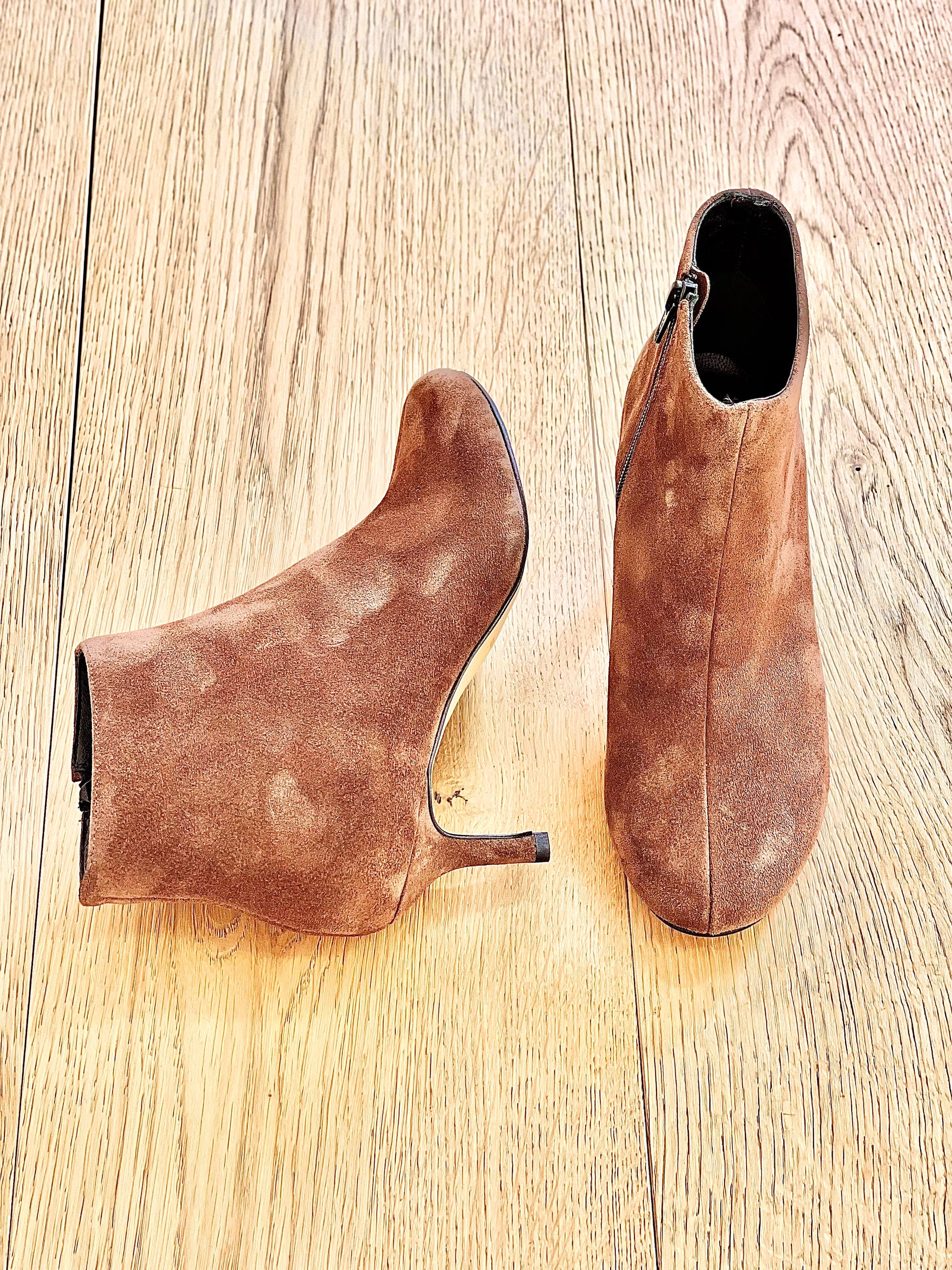 Suède enkellaarsjes met ronde neus en hak van 6 cm.