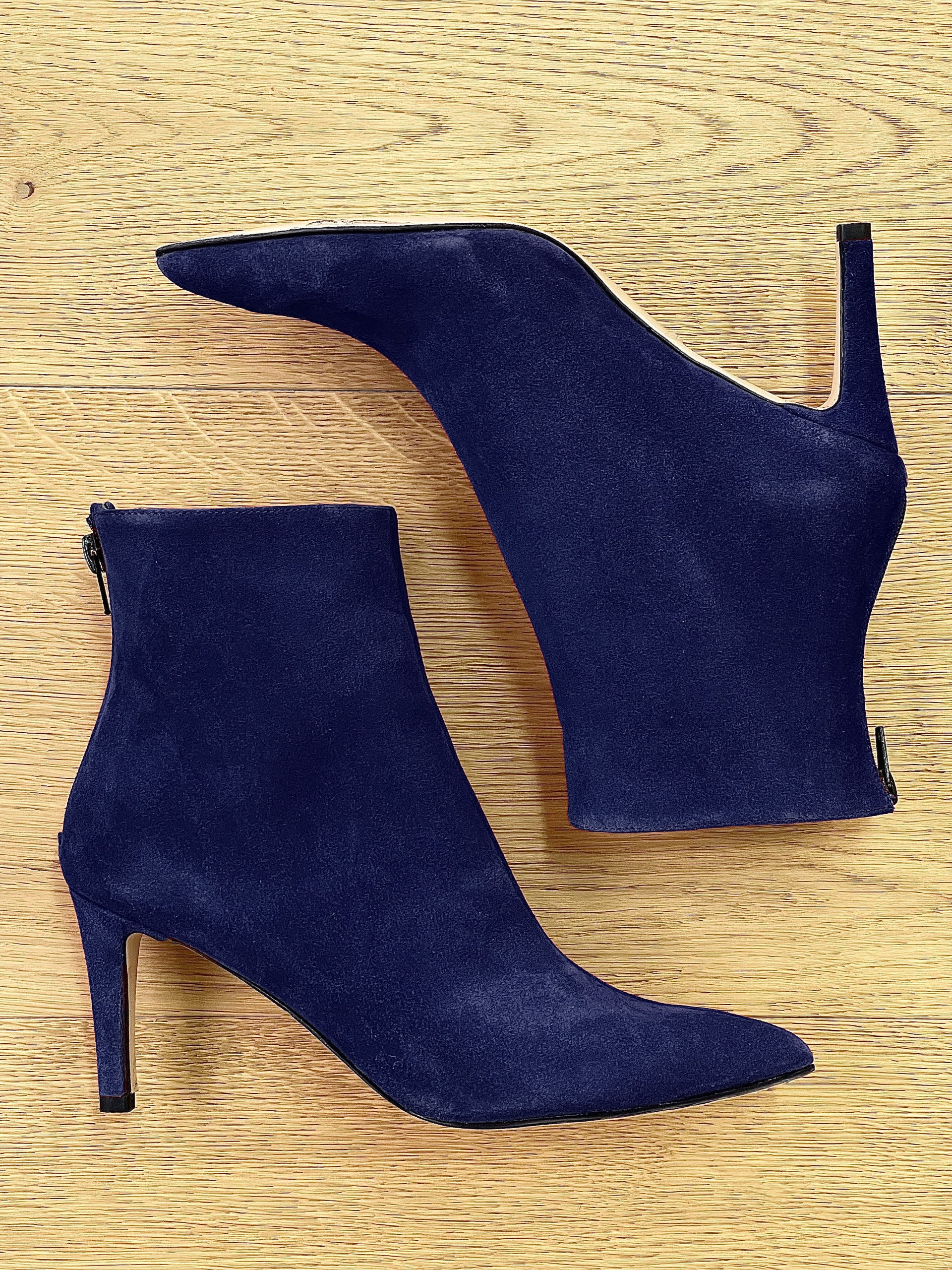 Suède enkellaarsjes met naaldhak en ritssluiting.