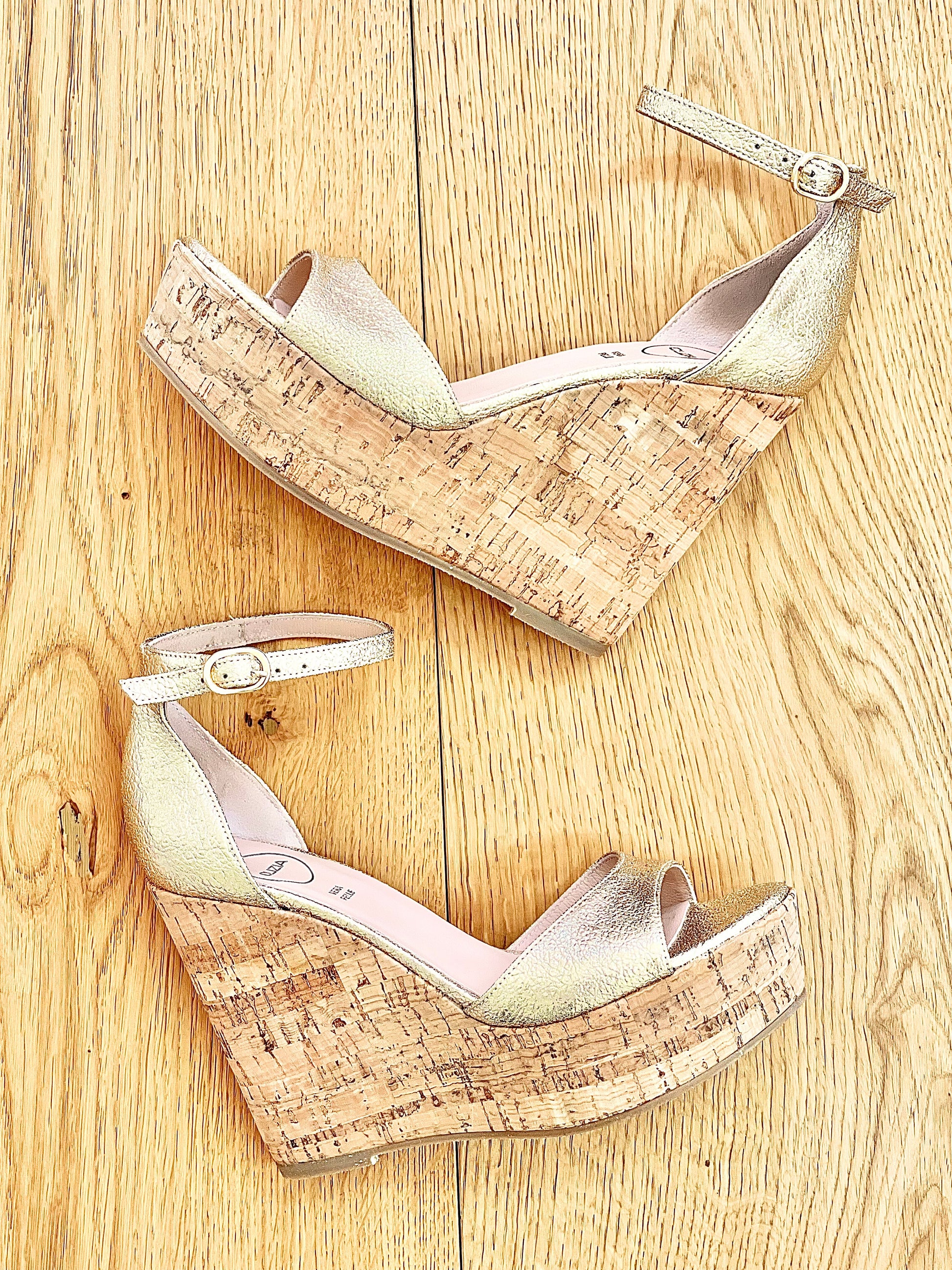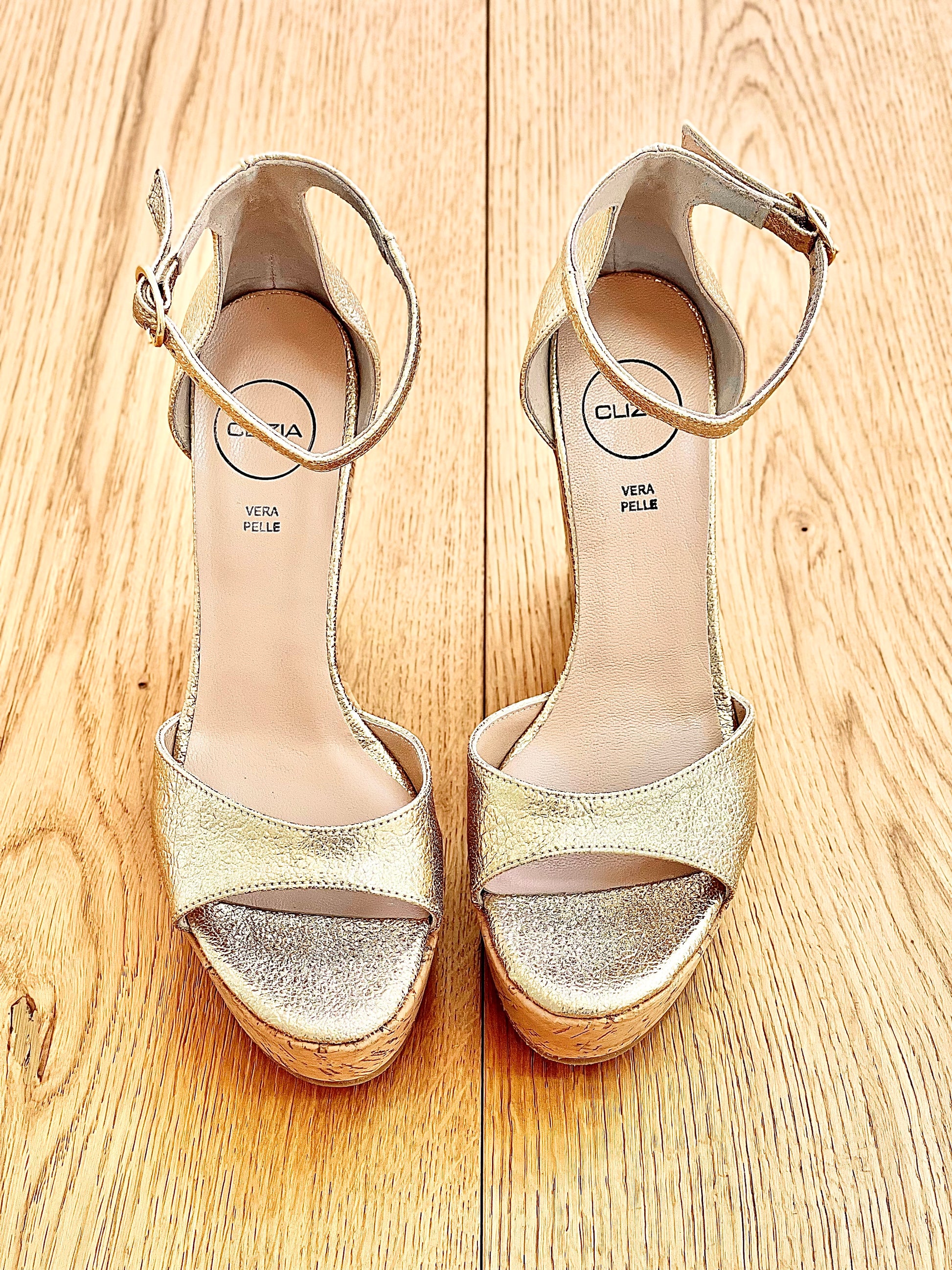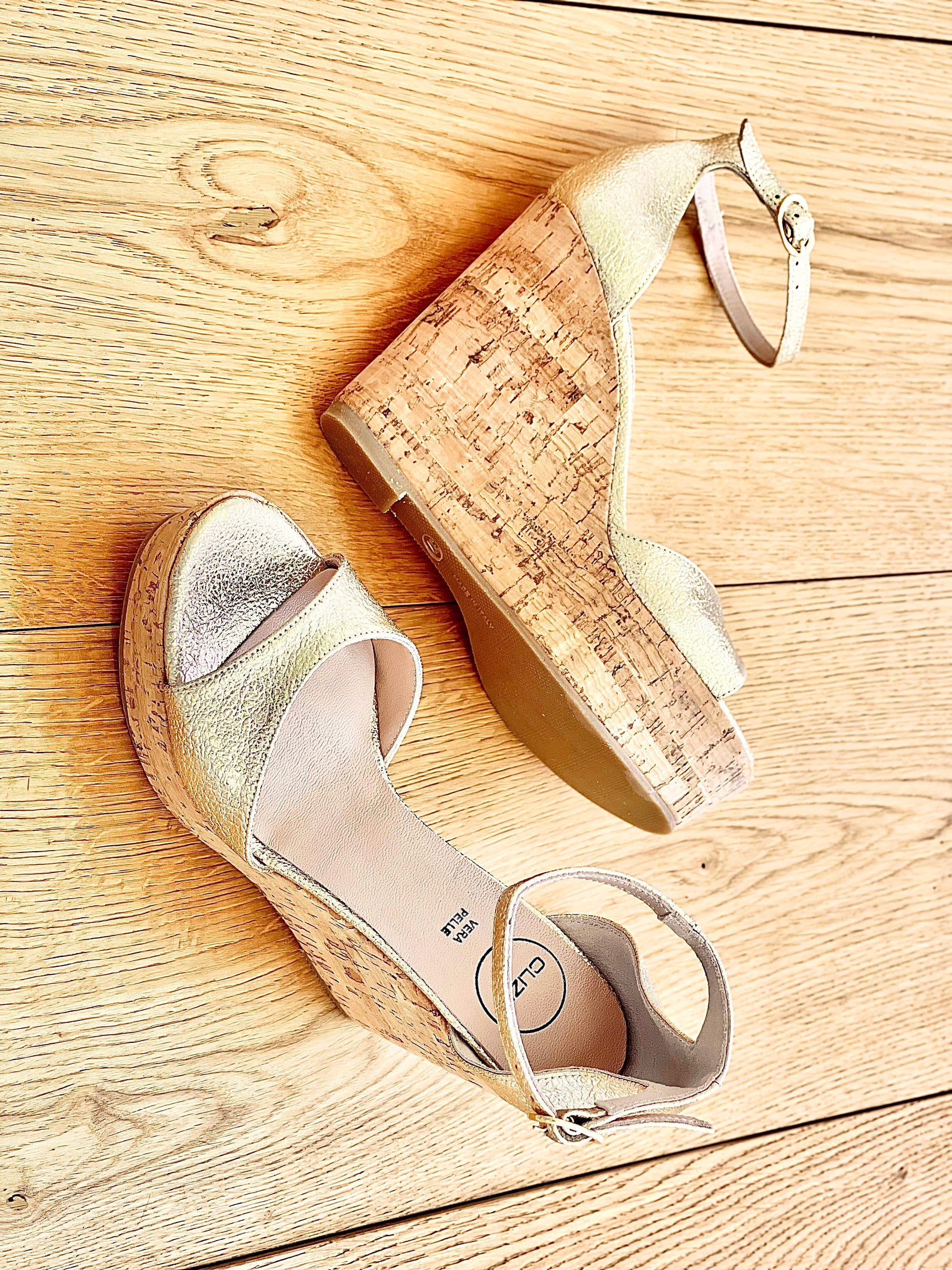 Sandalen met hoge band en hak op een sleehak van kurk van 11,5 cm.