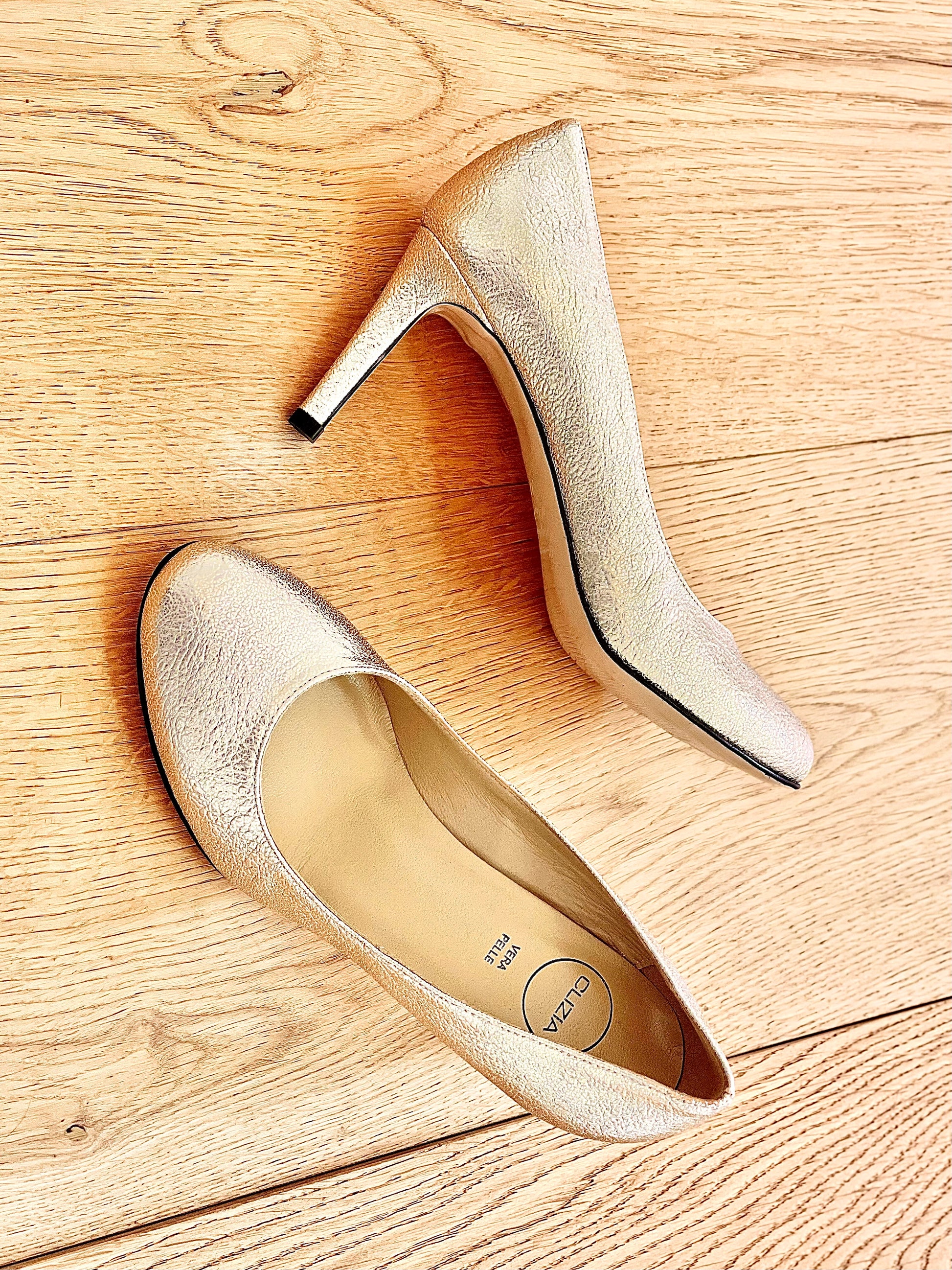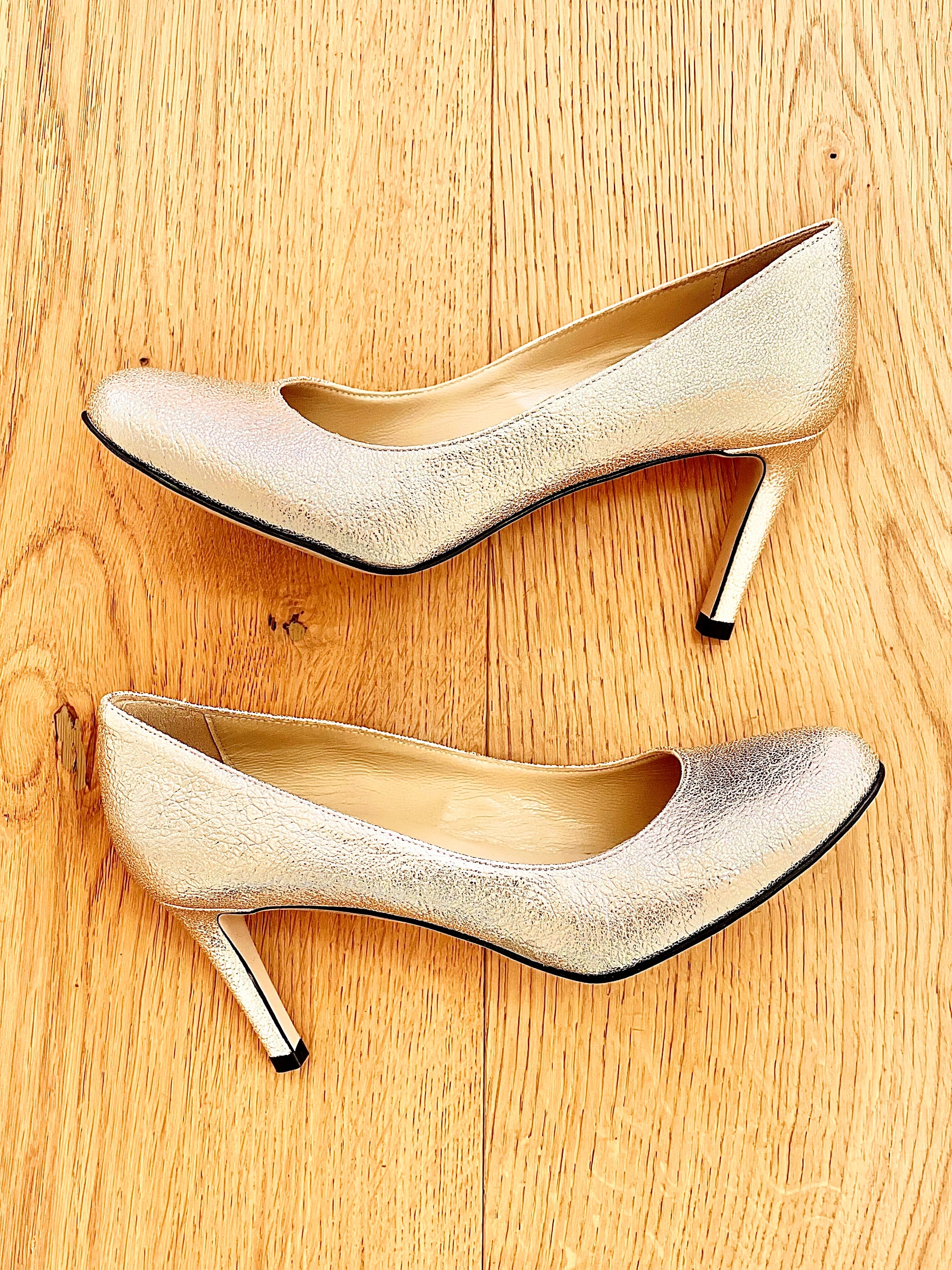 Pump met ronde teen en gelamineerde naaldhak van 8 cm.