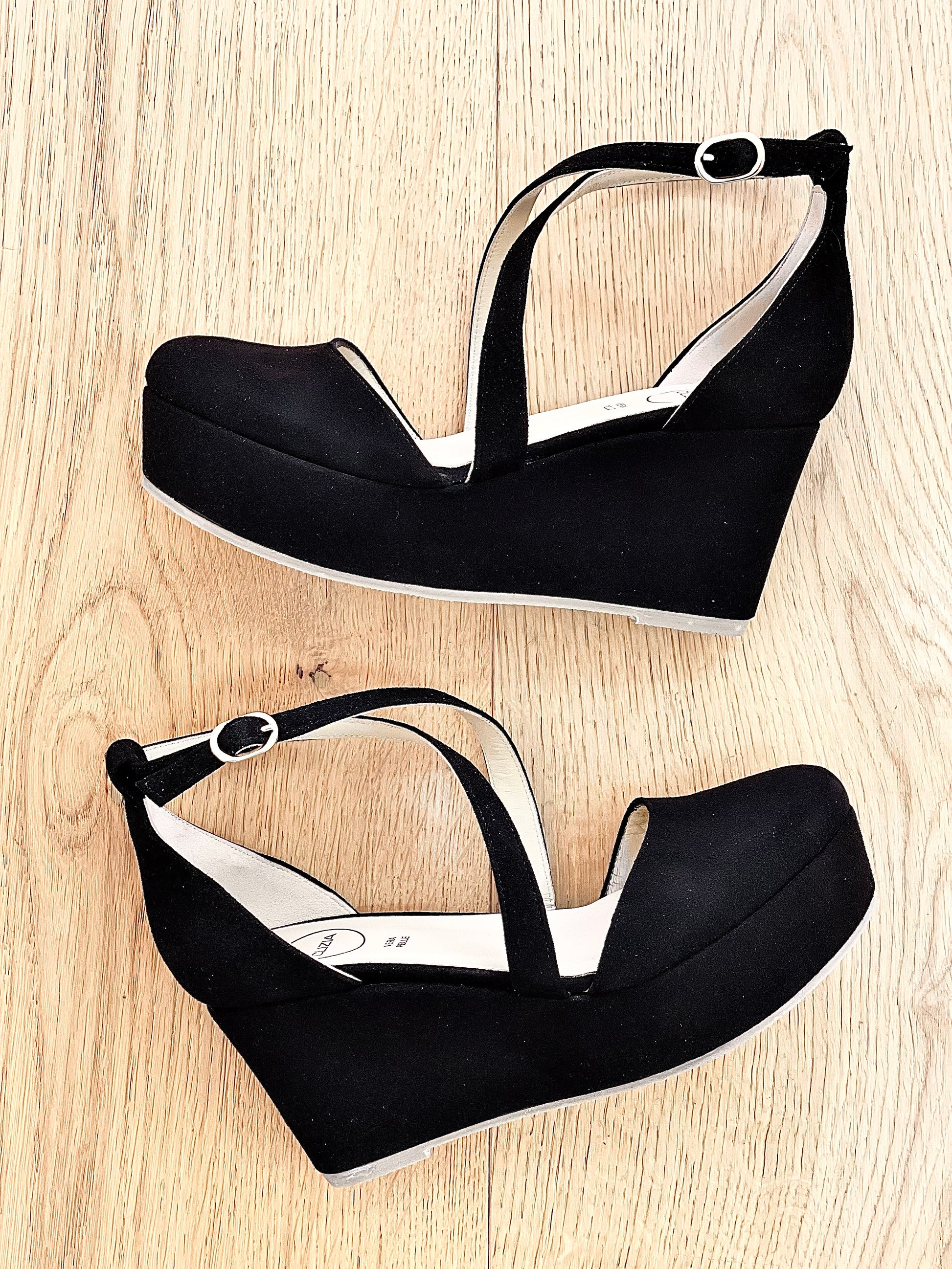 Suède pumps met teen en hak op een sleehak van 8 cm.