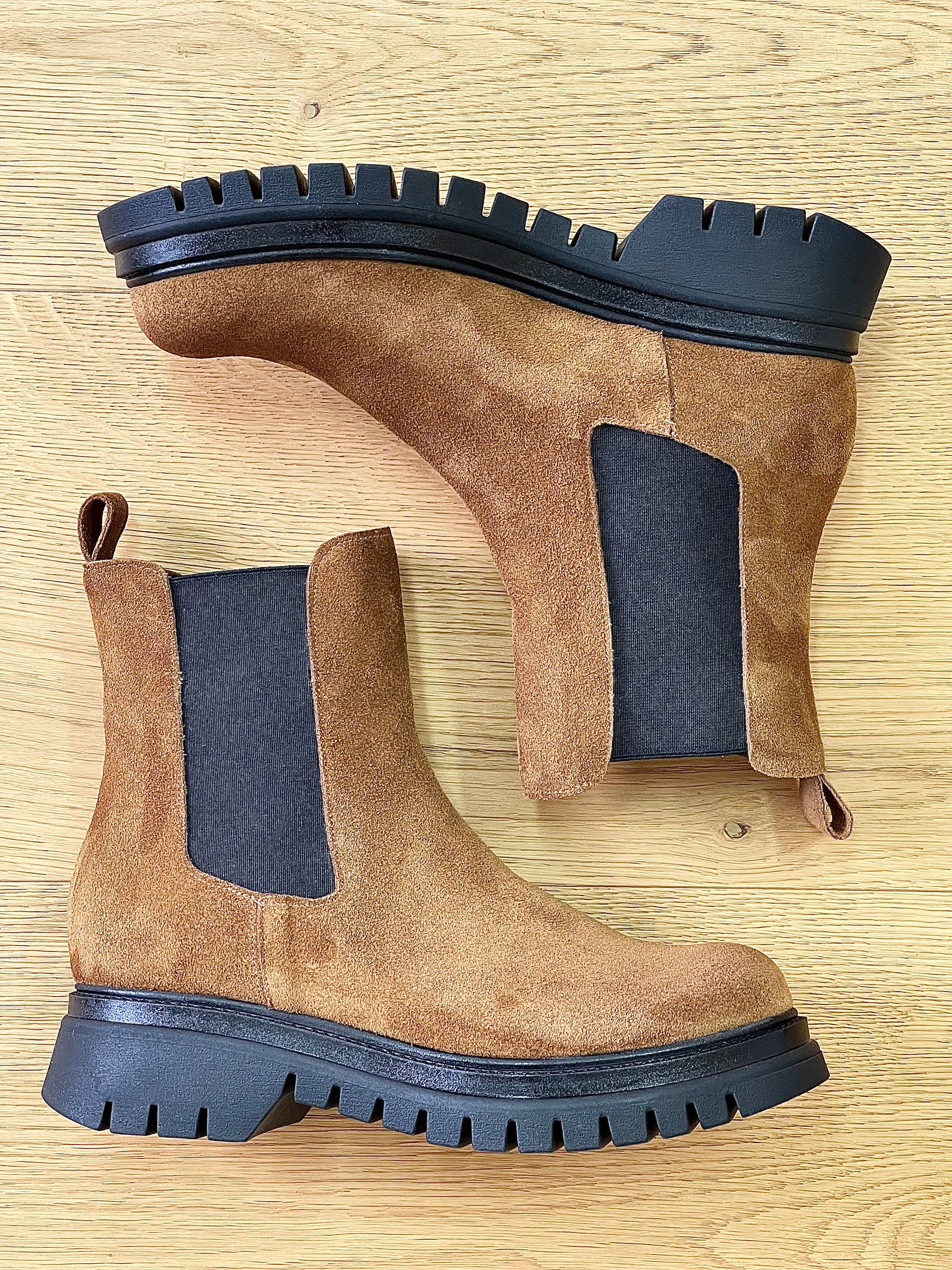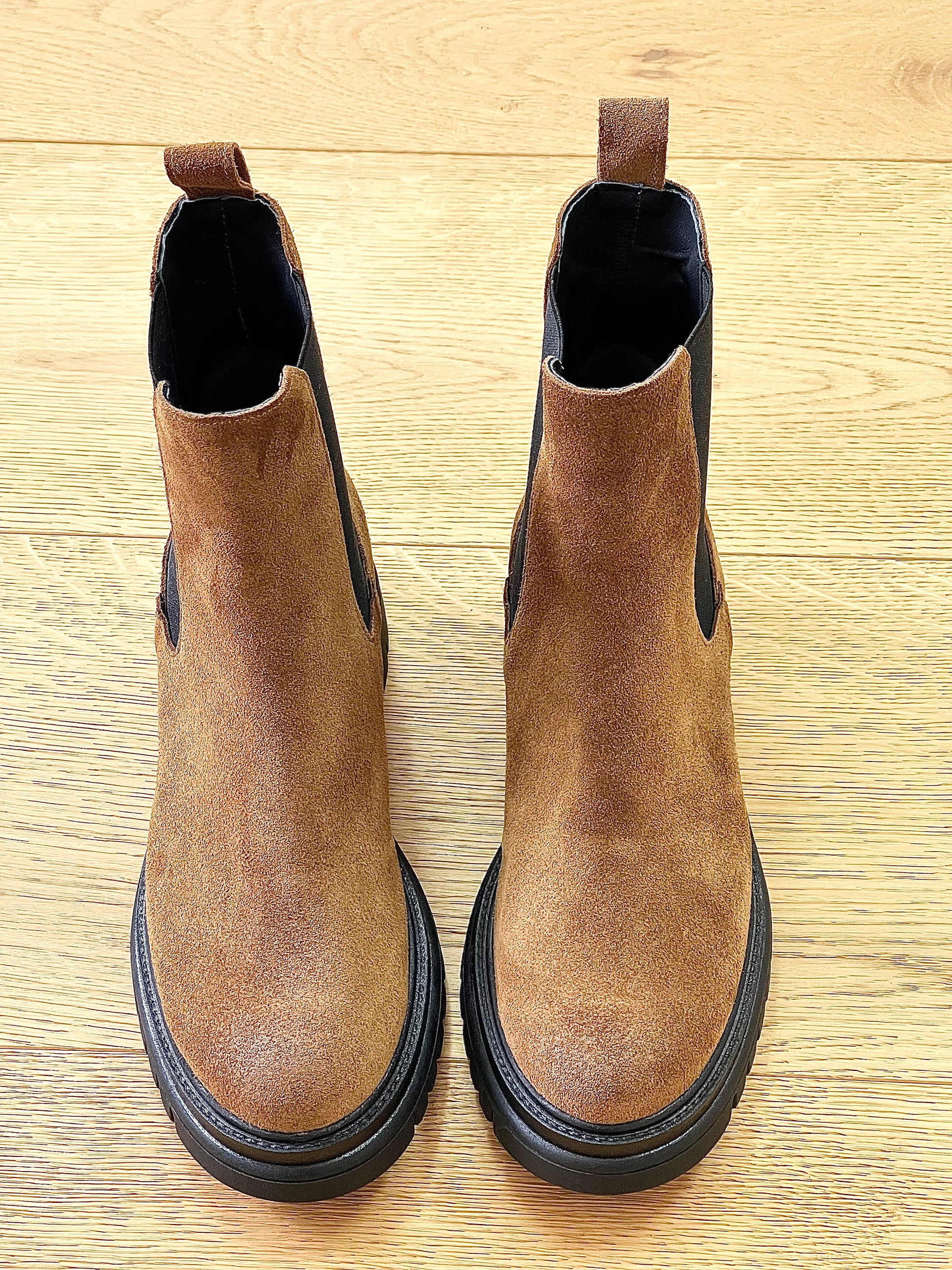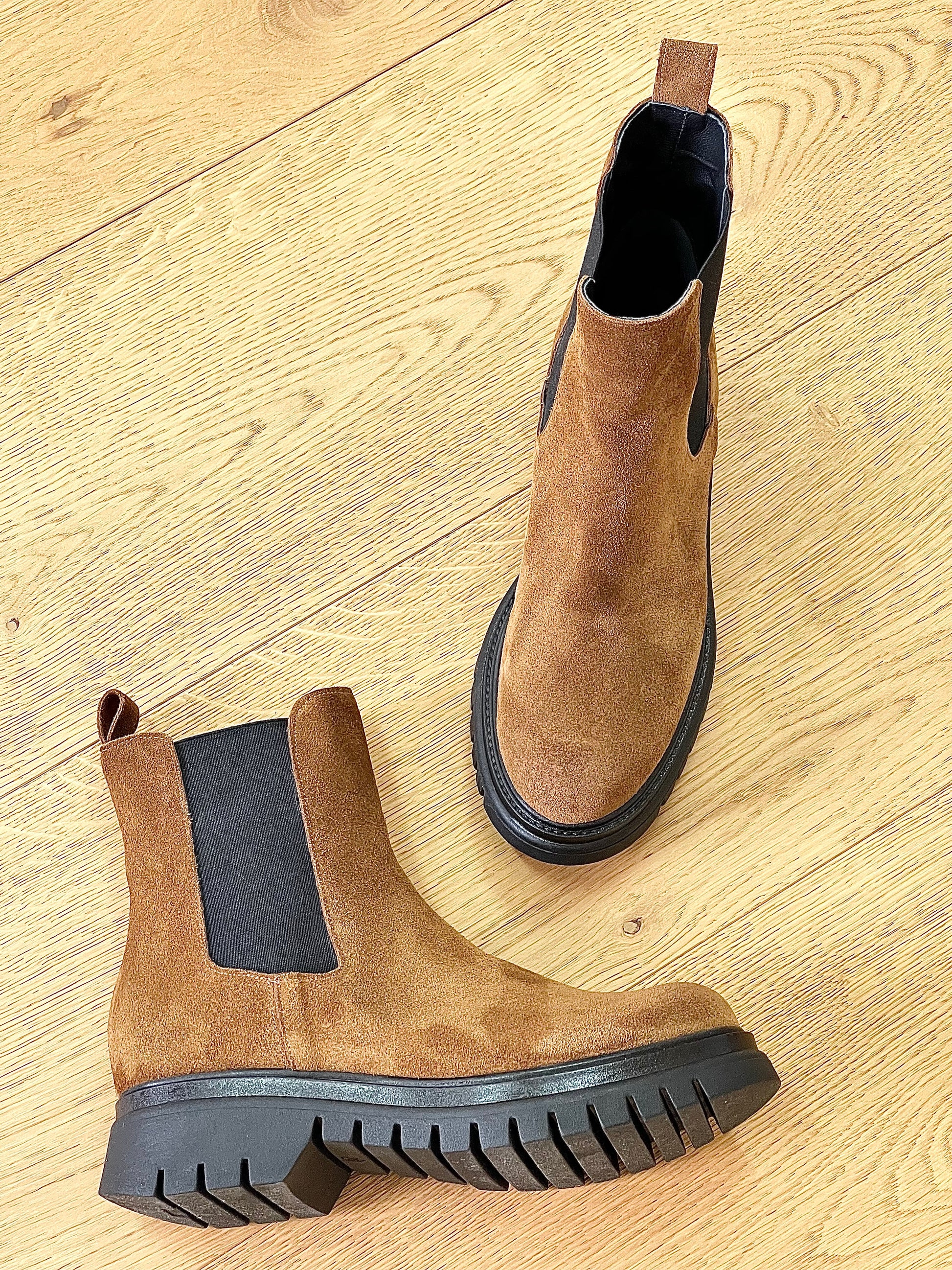 Lage chelsea enkellaarsjes met suède onderzijde.