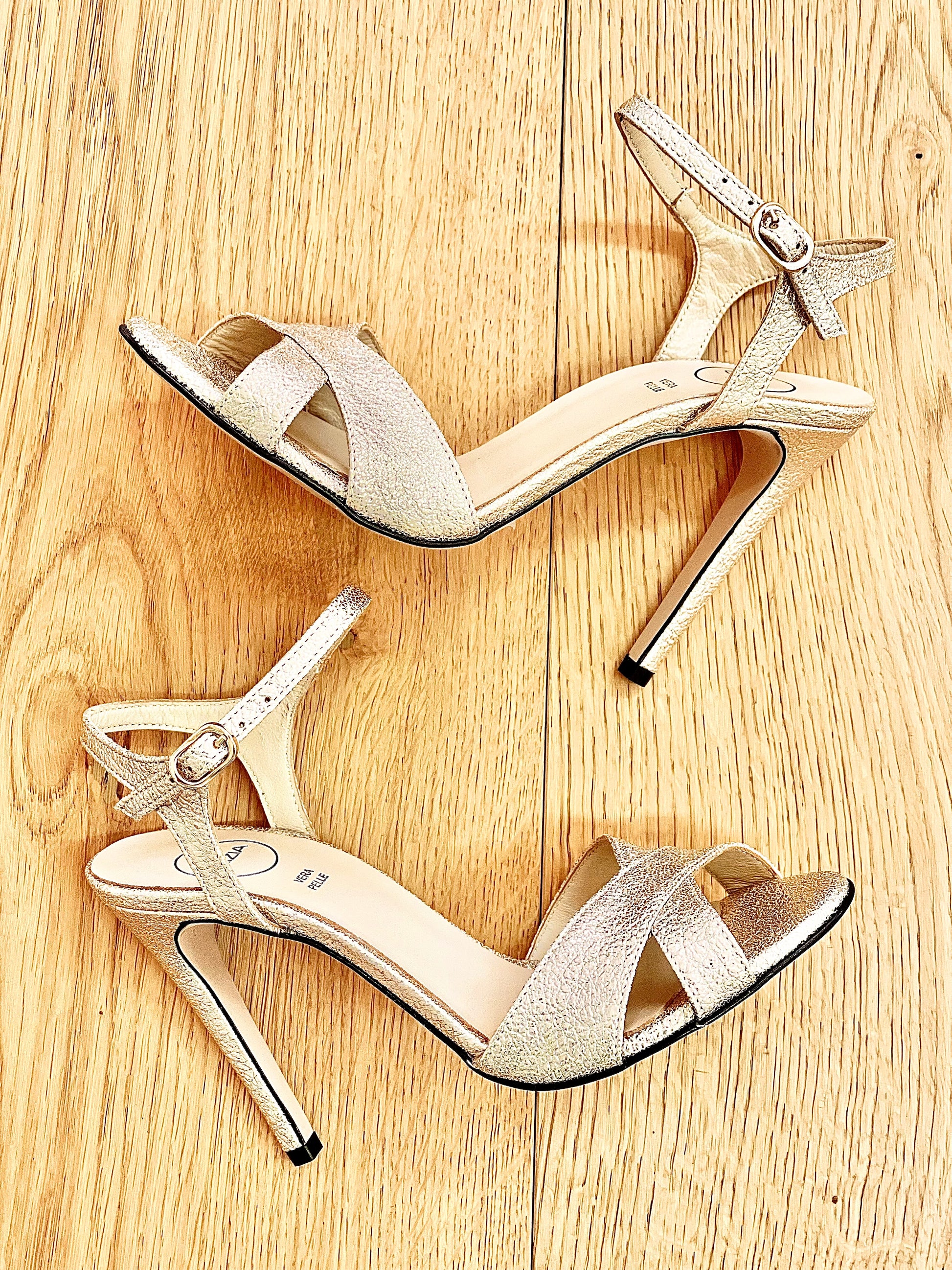 Hoge sandalen met kruis en enkelbandje, hak van 10 cm.