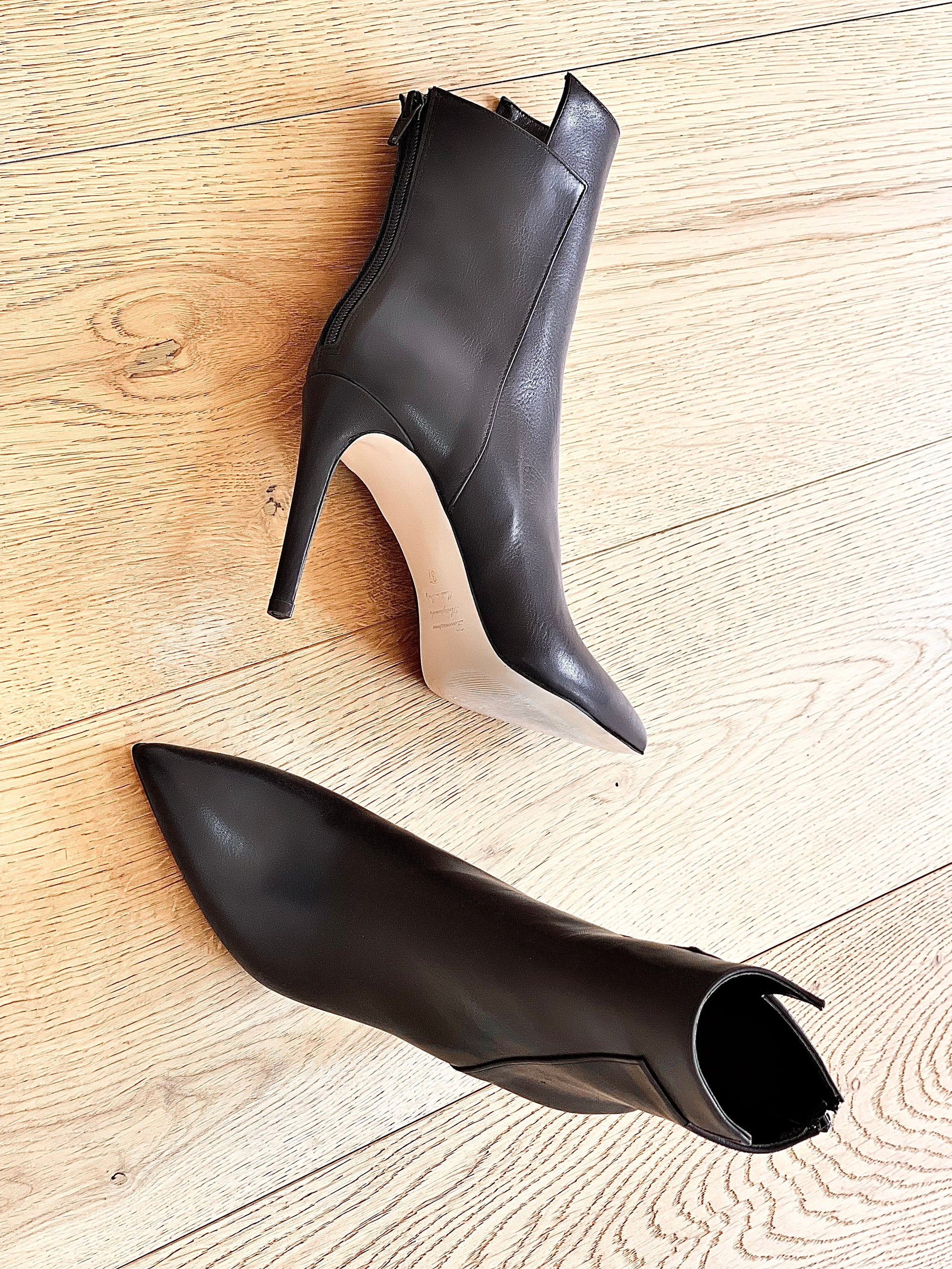 Enkellaarsjes met hoge hak van leer met een naaldhak van 10 cm.