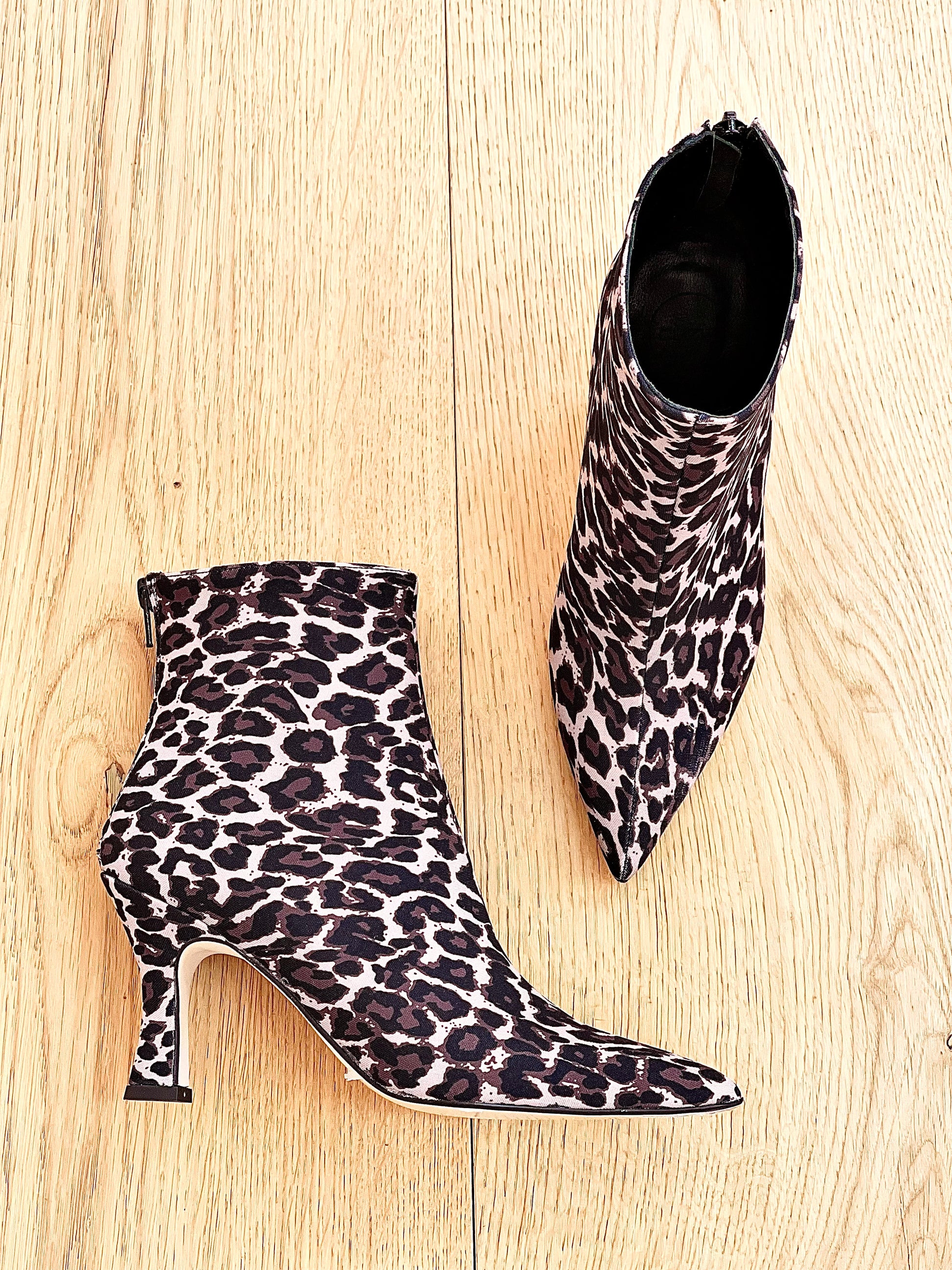 Enkellaarsjes met spitse teen en dierenhak van 8 cm.