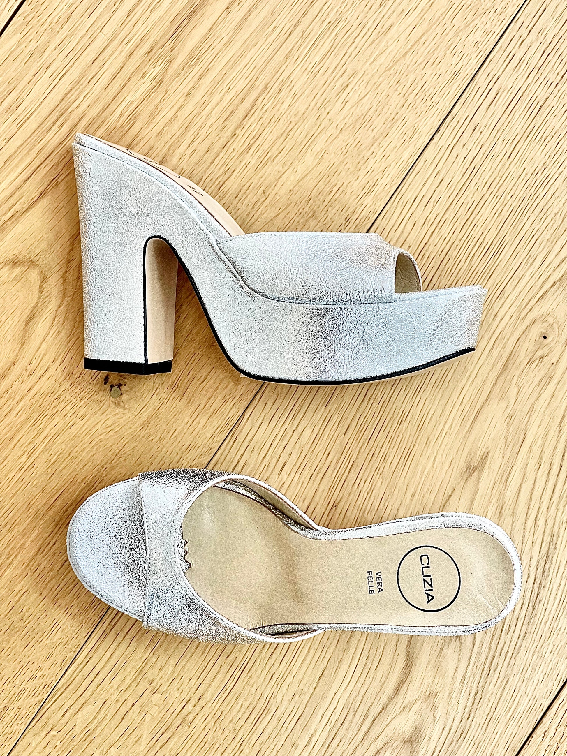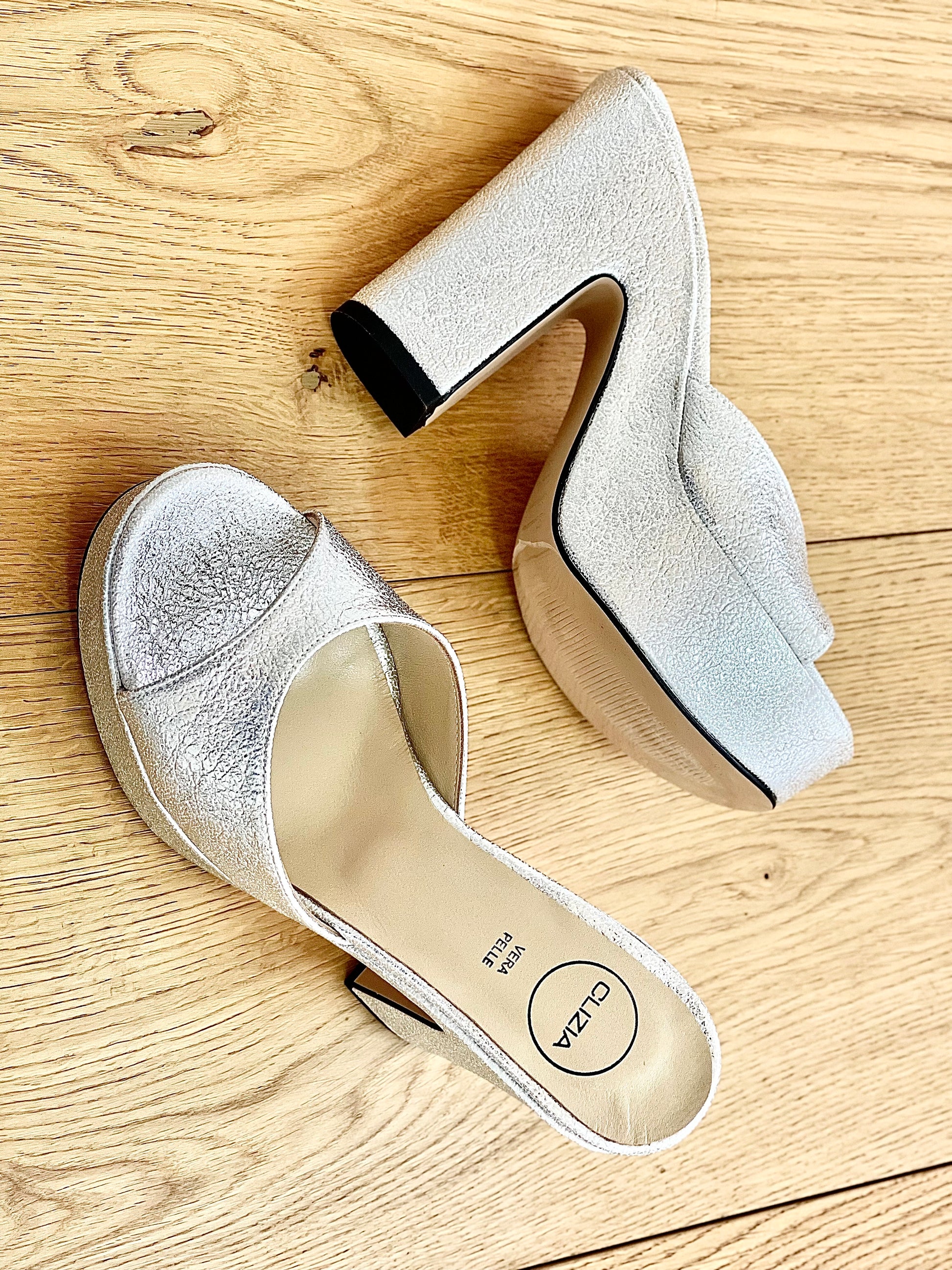 Gelamineerde hoge muiltjes sandalen op sleehak.