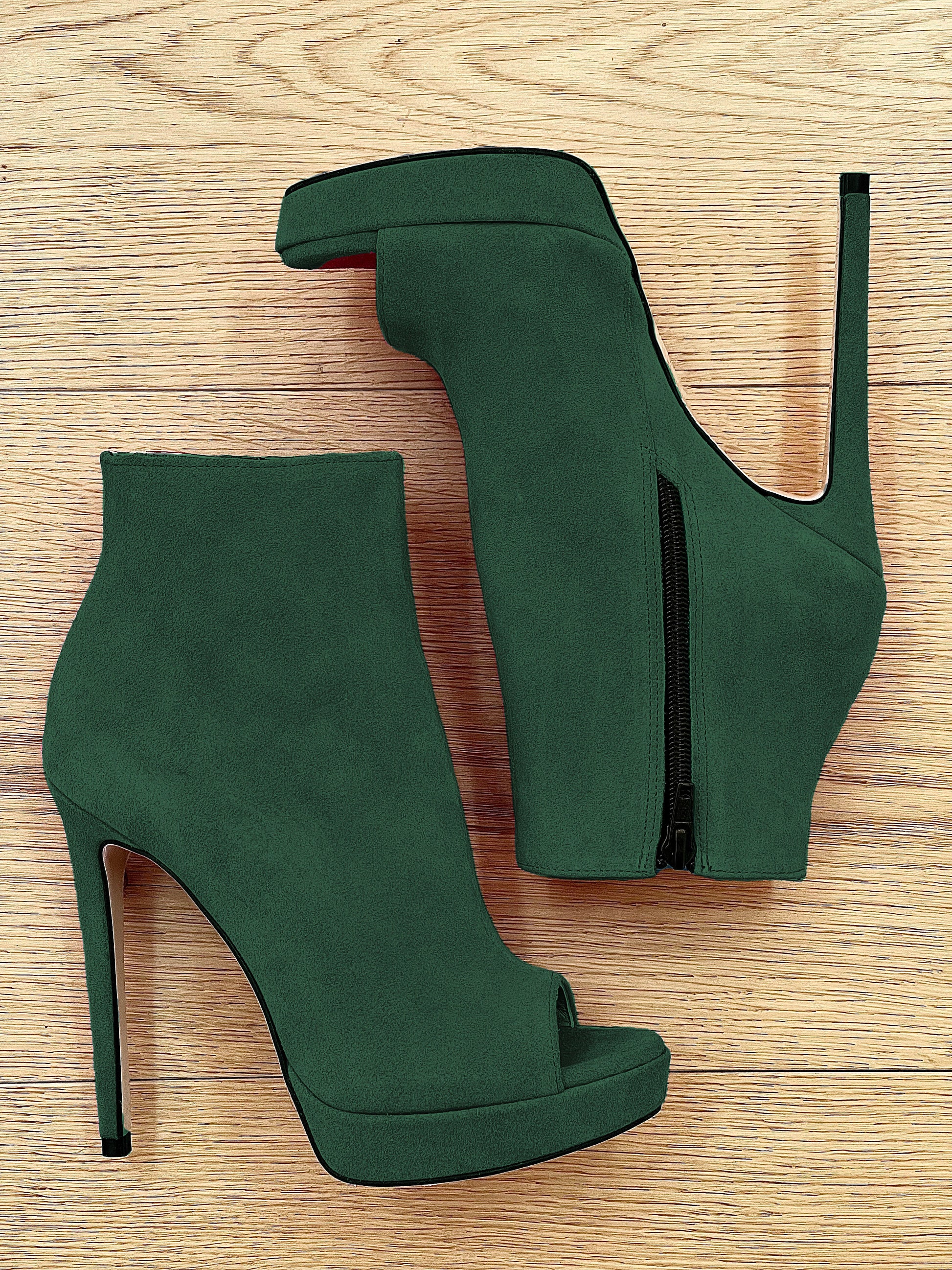 Hooggesloten suède enkellaarsjes met naaldhak.