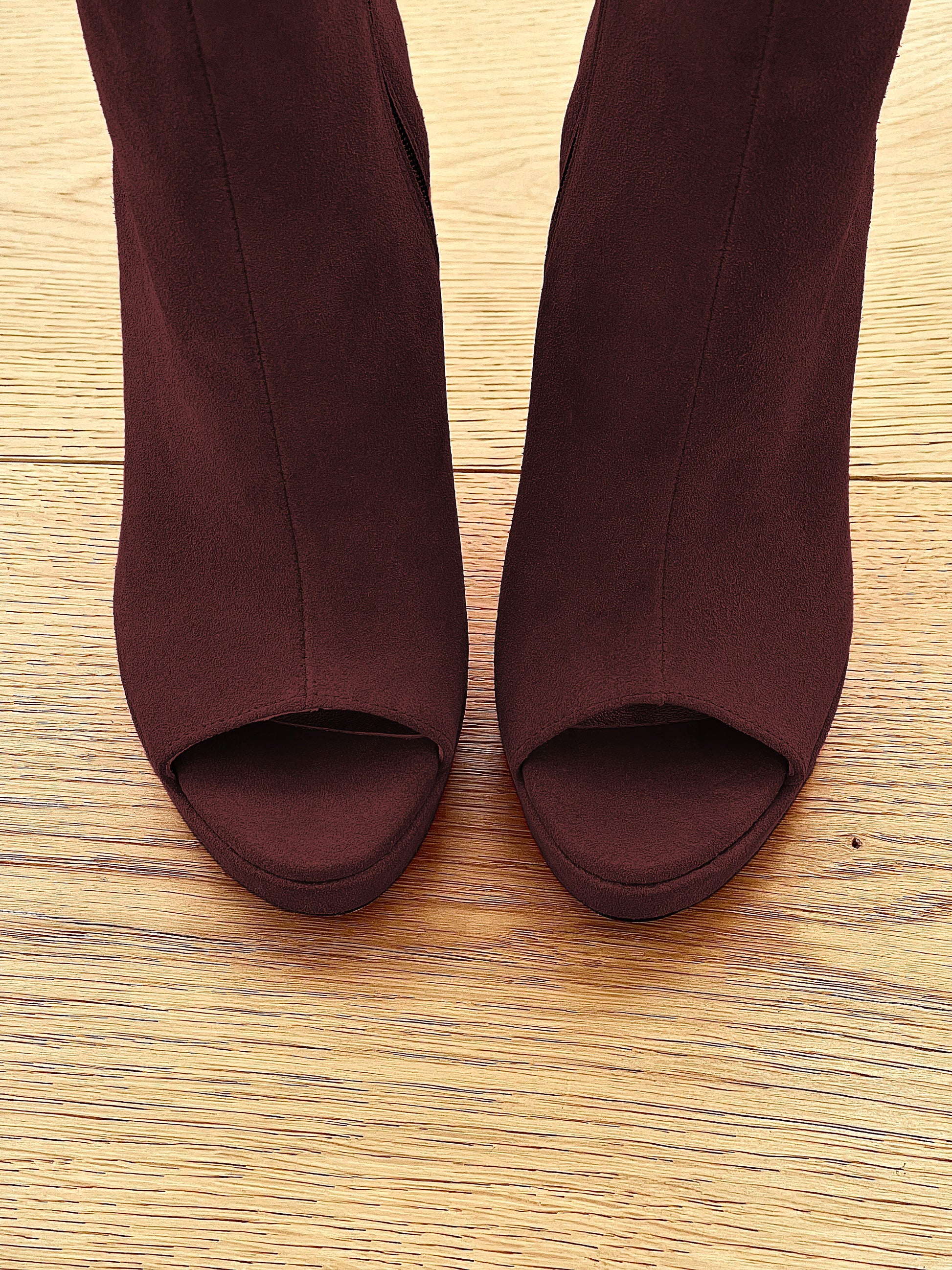 Hooggesloten suède enkellaarsjes met naaldhak.