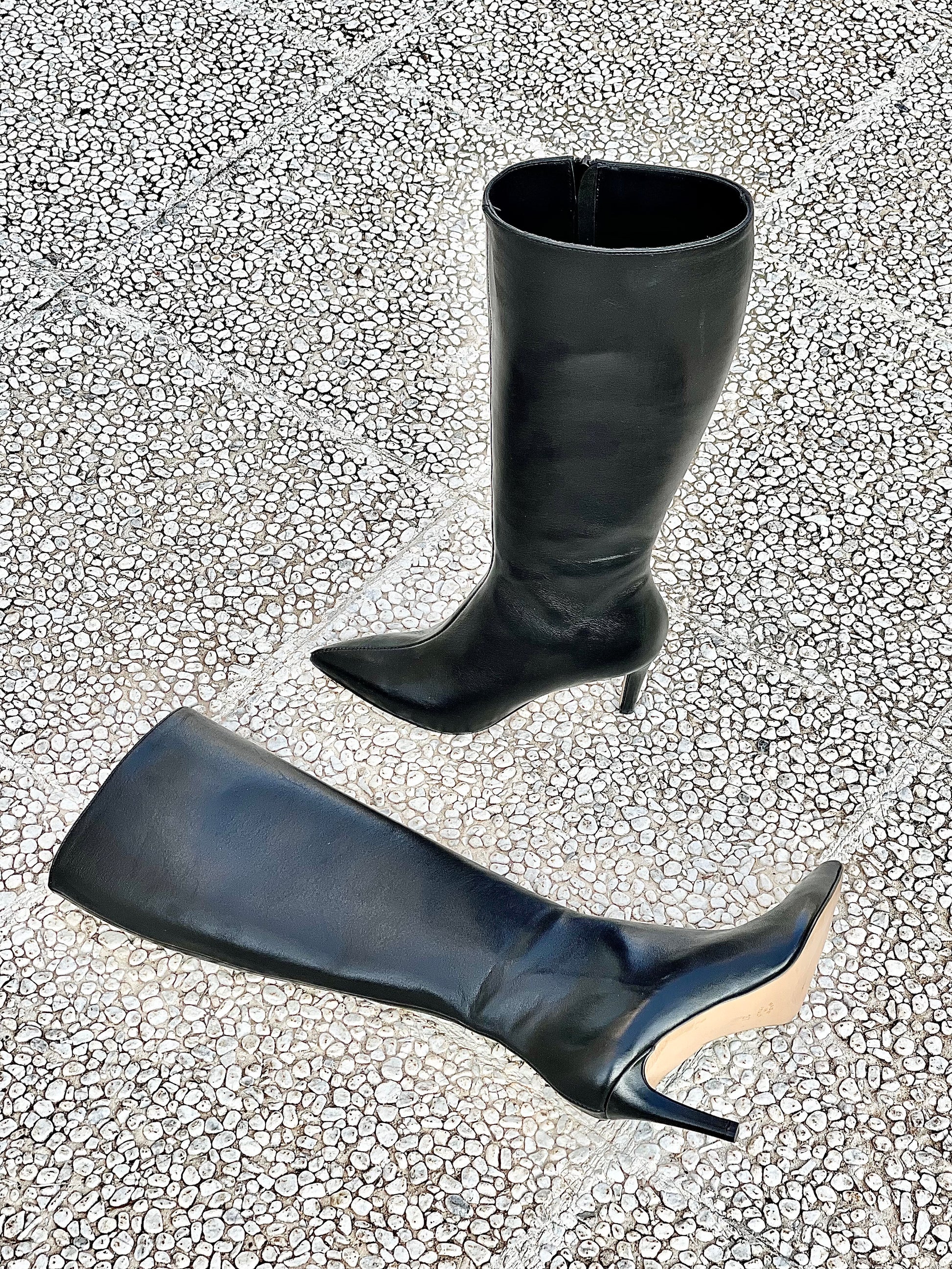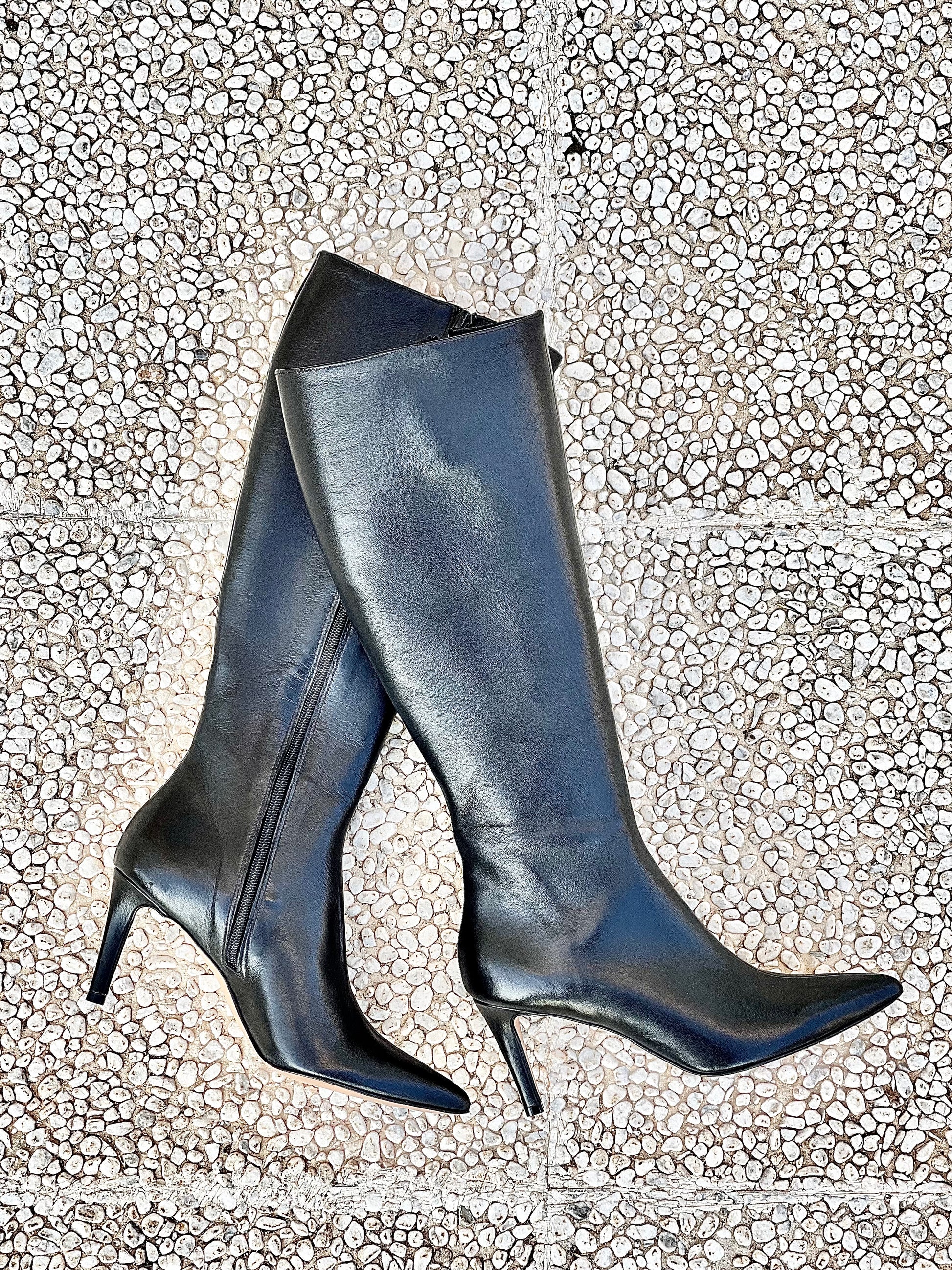 Leren laarzen met spitse teen en hak van 8 cm.