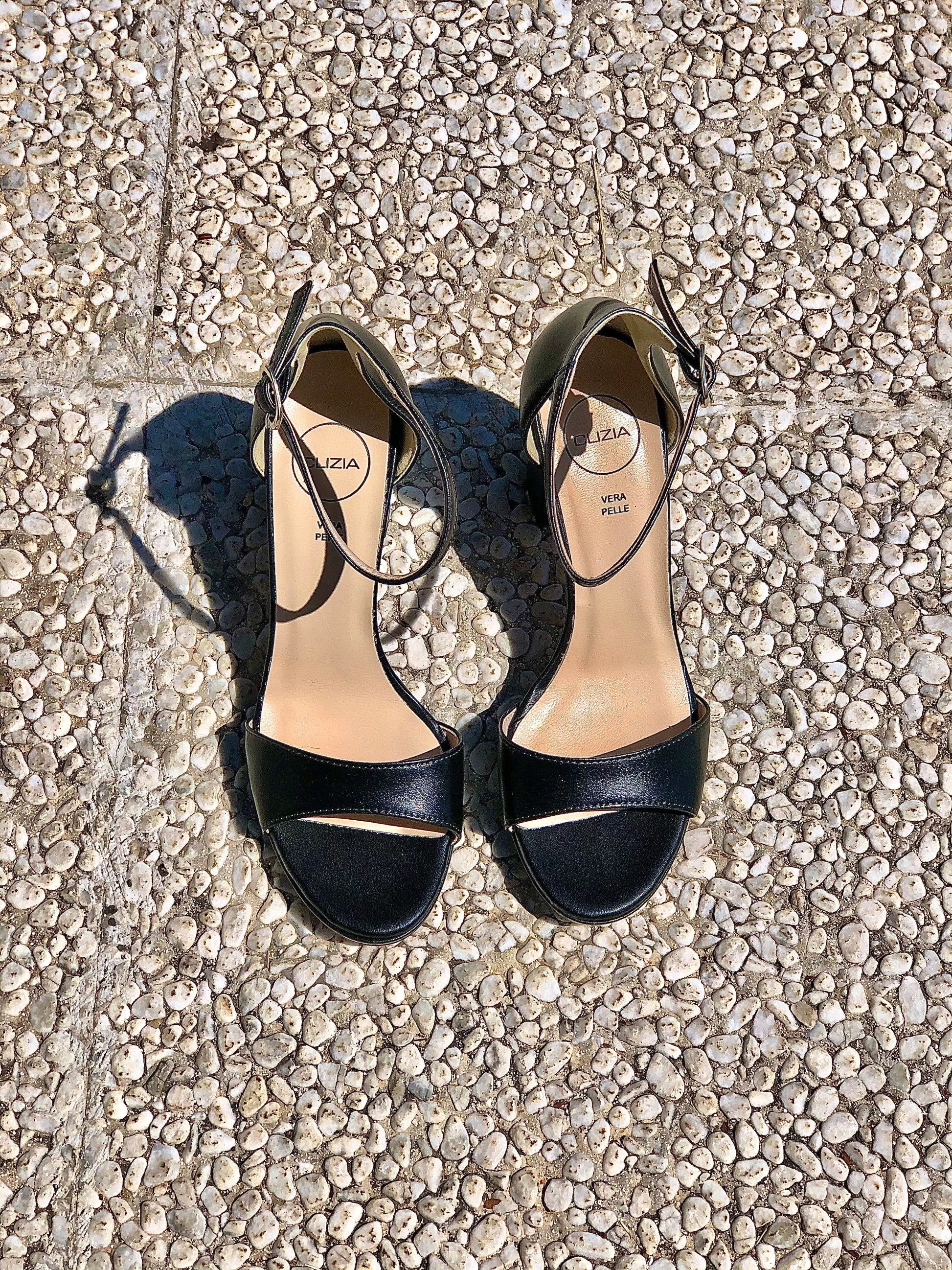 Sandalen met een hak van 9 cm en een plateau van 1 cm.
