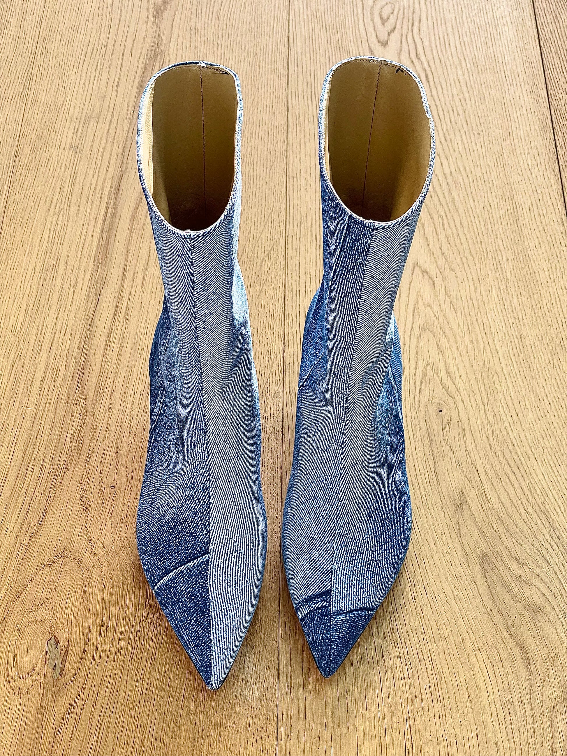Denim buisvormige enkellaarsjes met smalle hak.