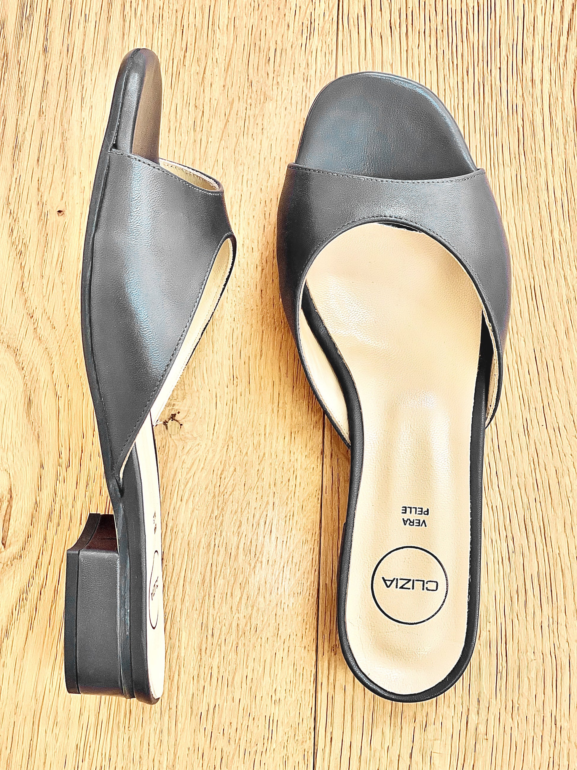 Lage sandalen muiltjes leren pantoffelhak 2cm.