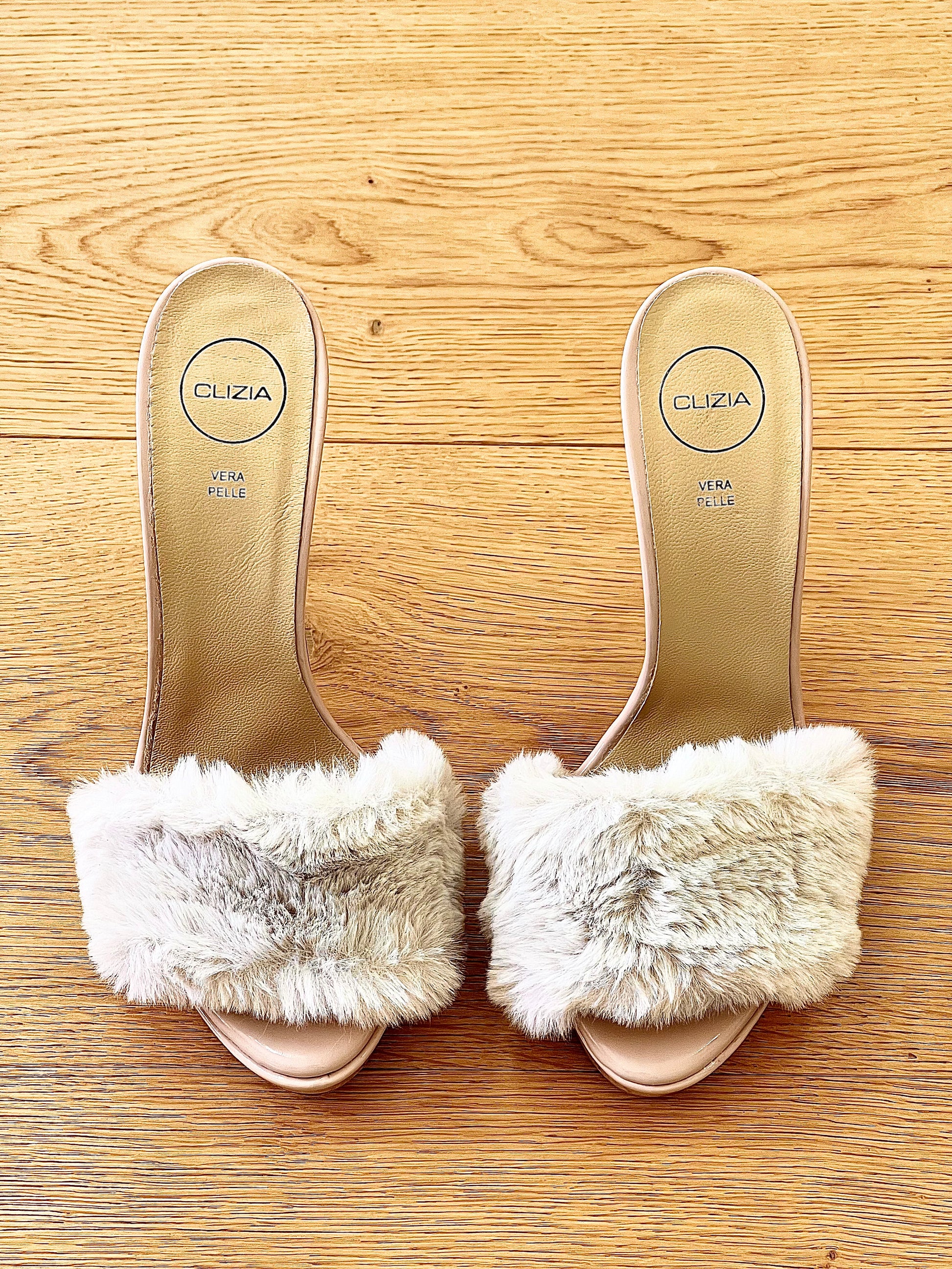 Hoge muiltjes sandalen bont slipper plateau naaldhak.