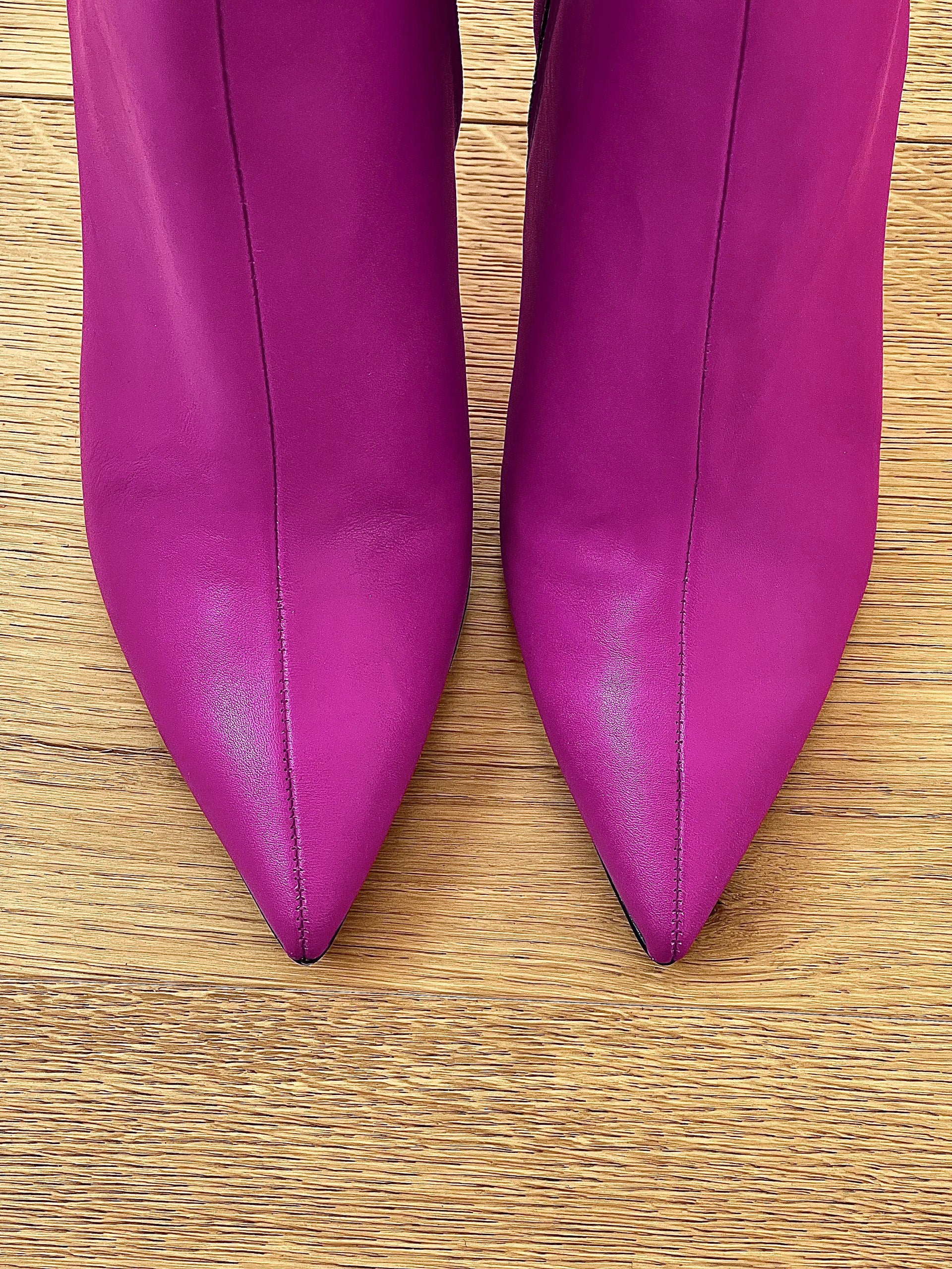 Hoge enkellaarsjes met puntige leren hak van 10 cm.