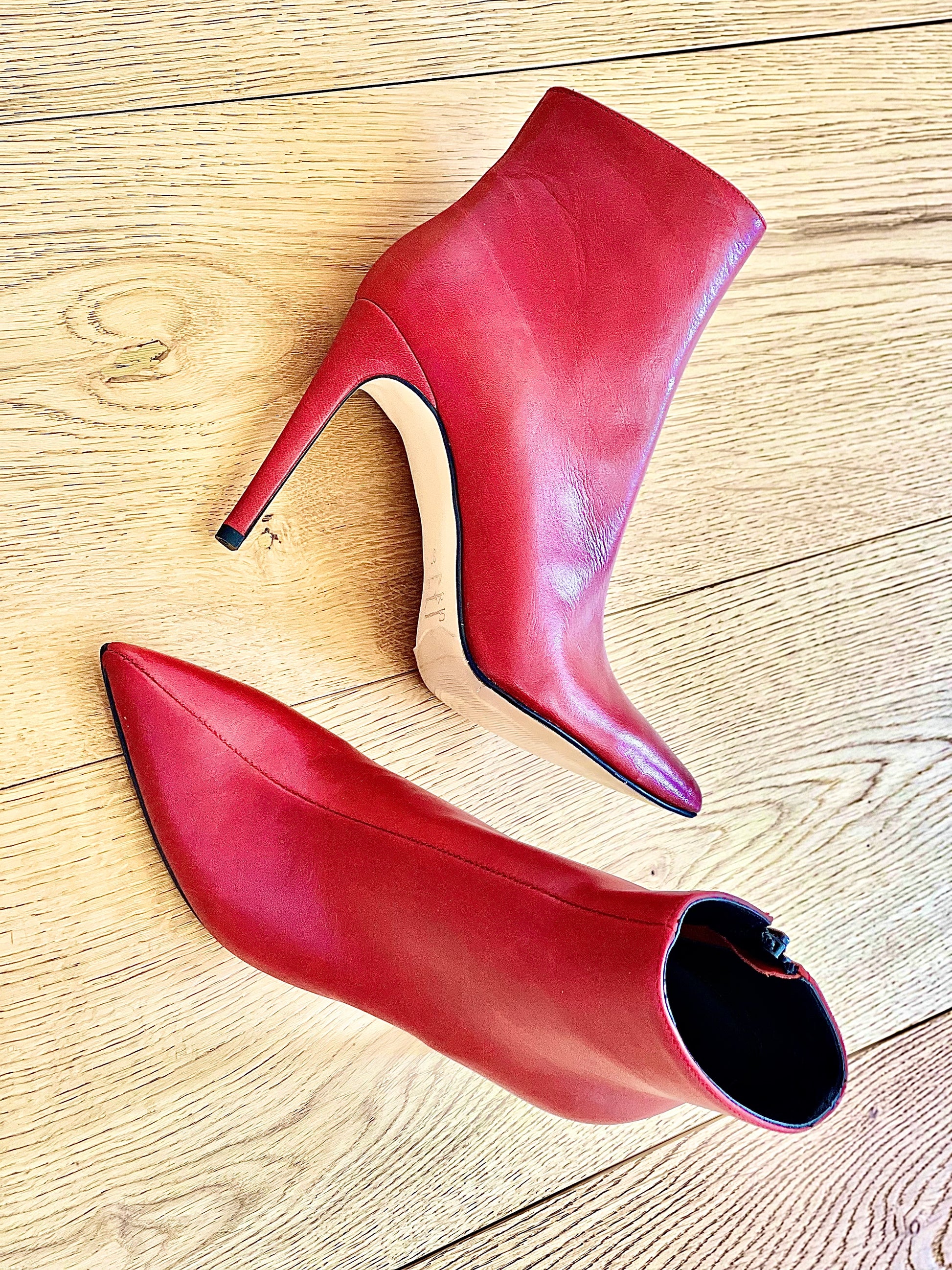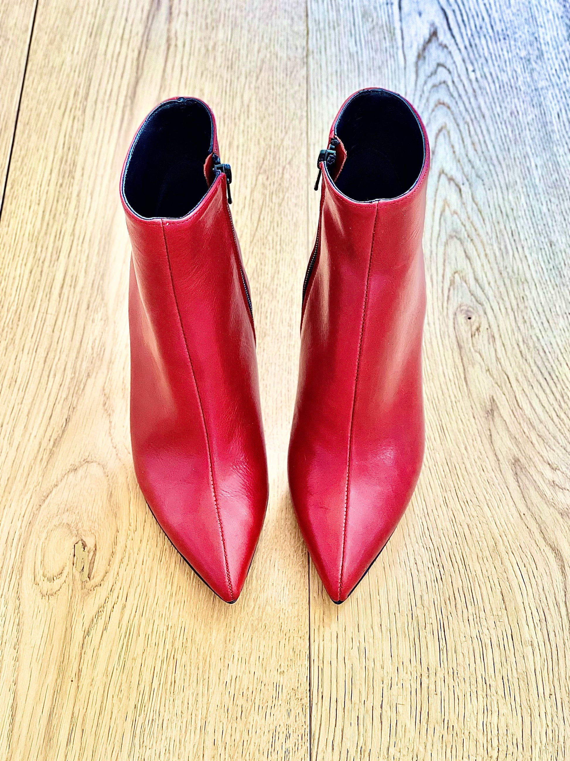 Hoge enkellaarsjes met puntige leren hak van 10 cm.