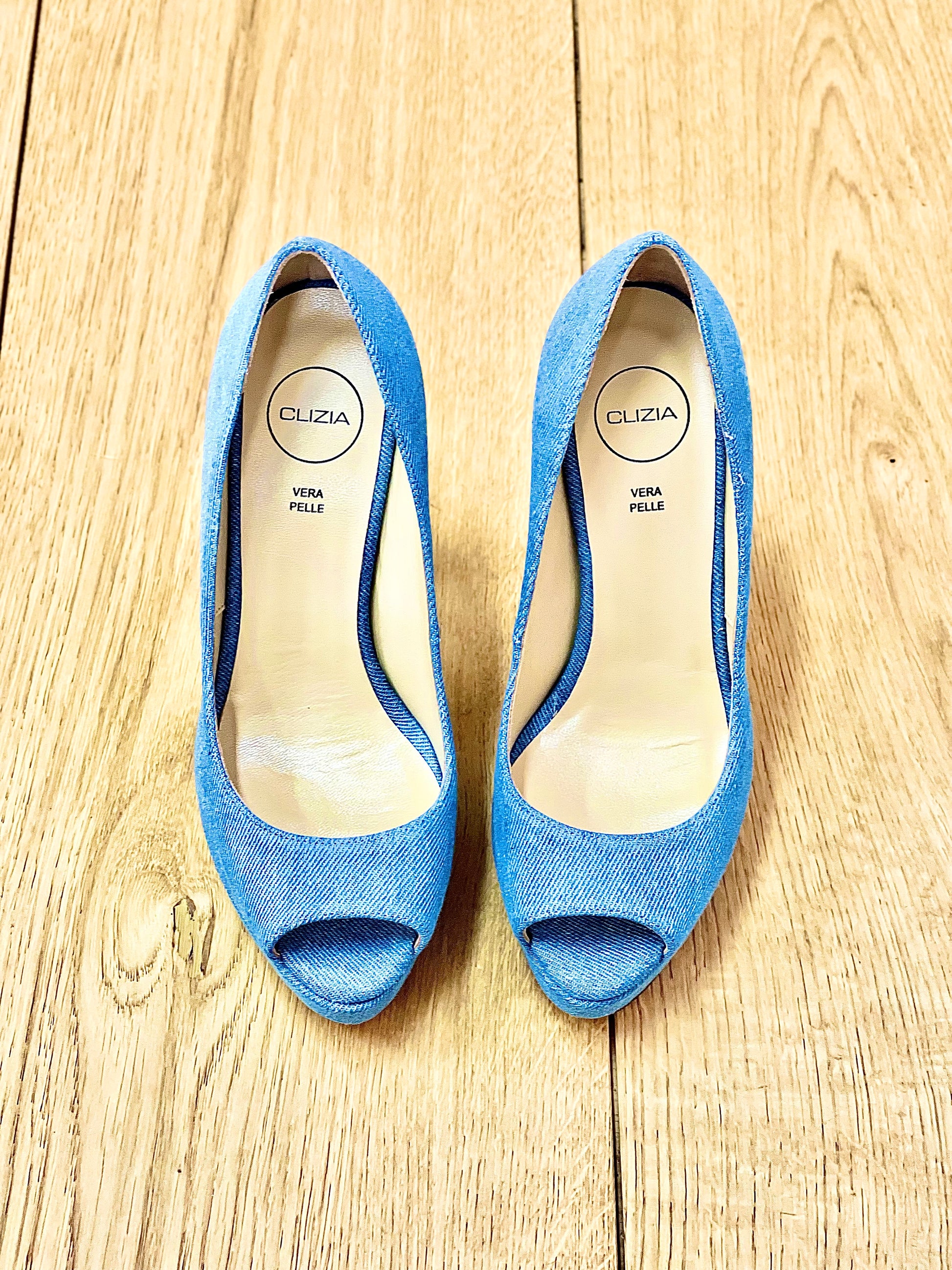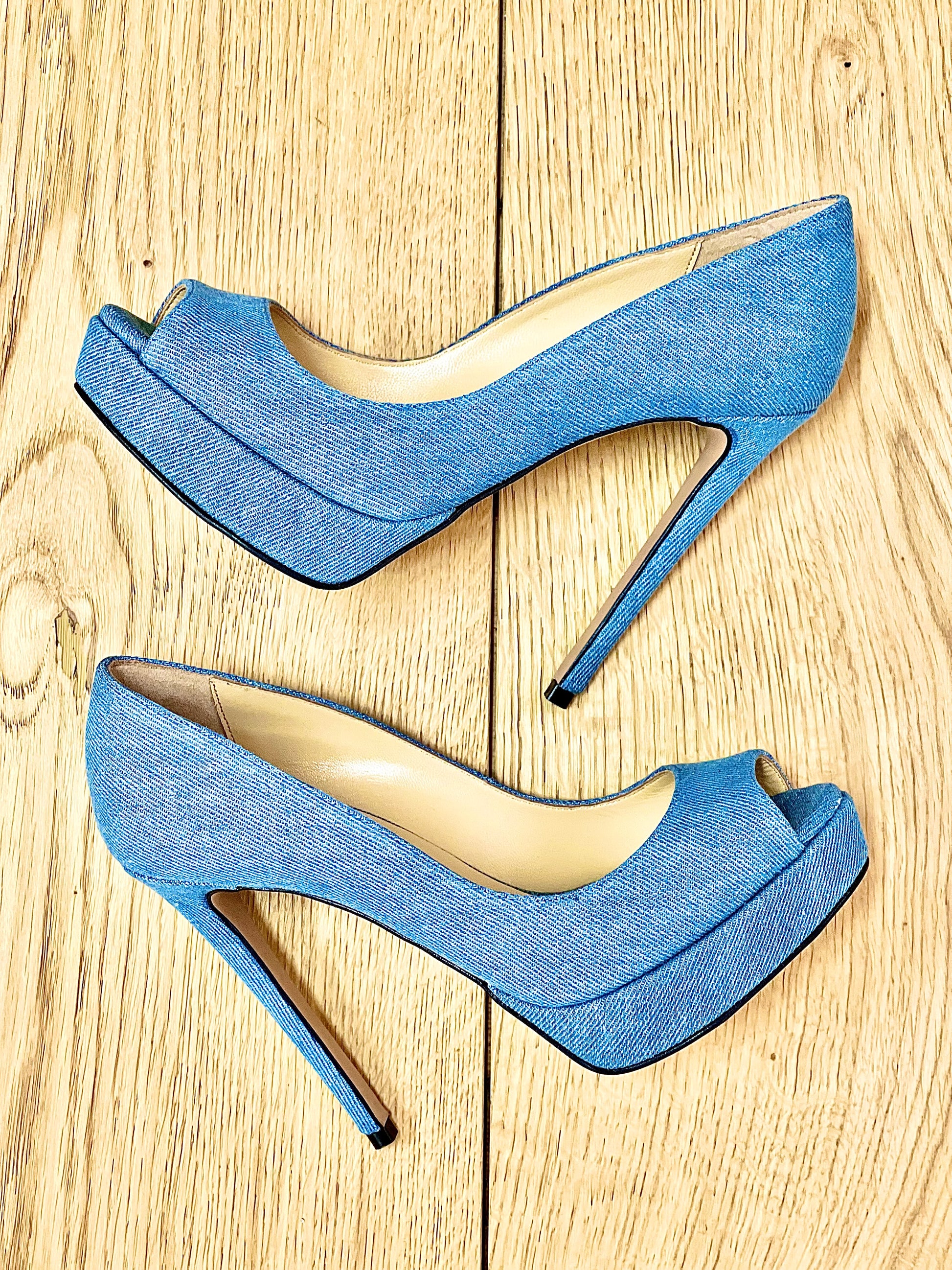 Spijkerpumps met 12 cm hoge hak en 2 cm plateau.