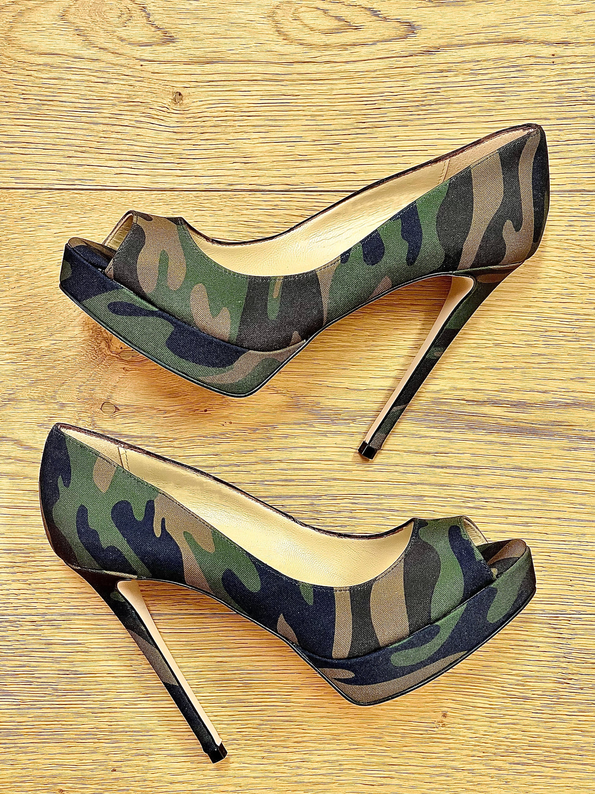 Spijkerpumps met 12 cm hoge hak en 2 cm plateau.