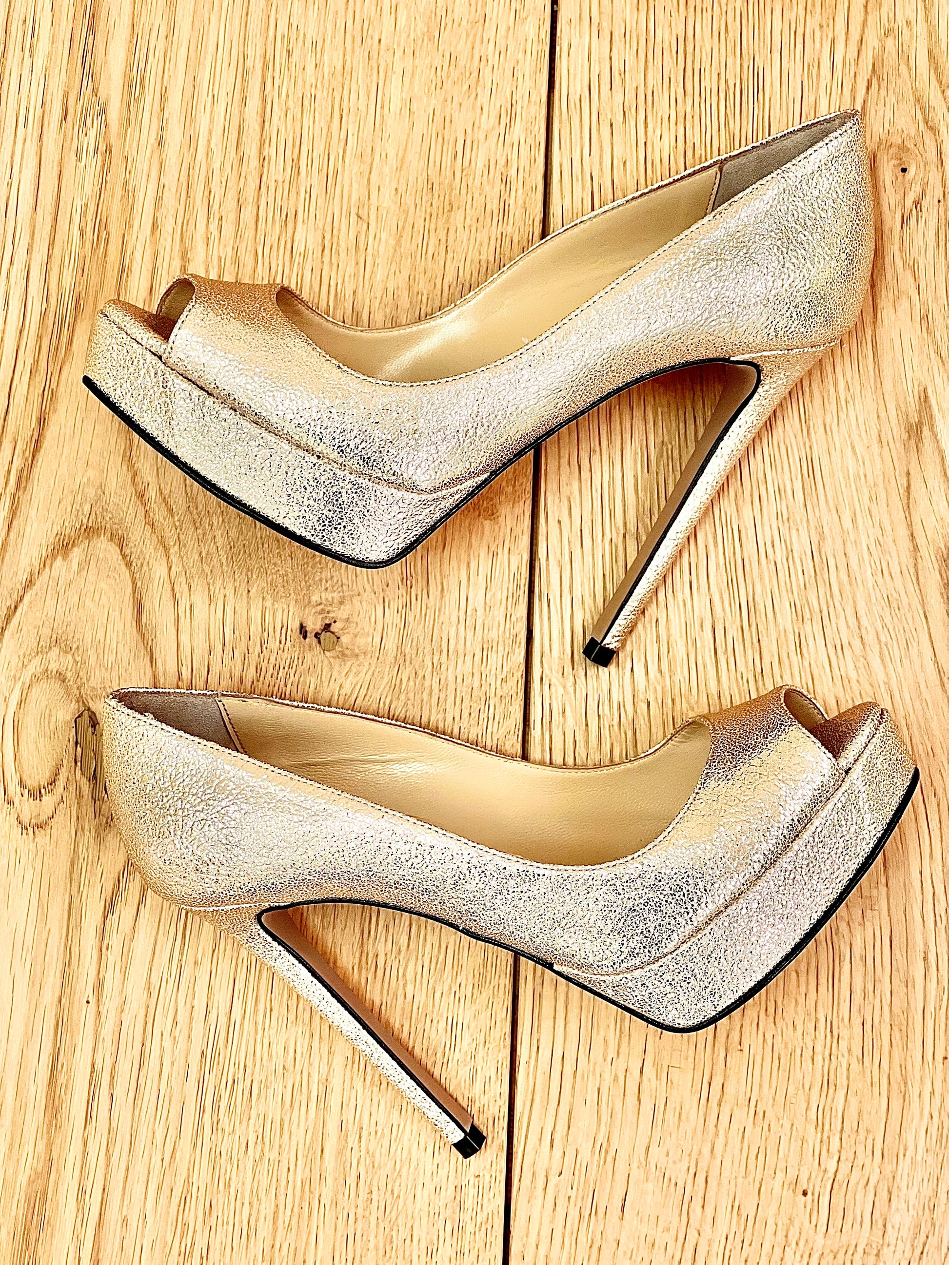 Spijkerpumps met 12 cm hoge hak en 2 cm plateau.