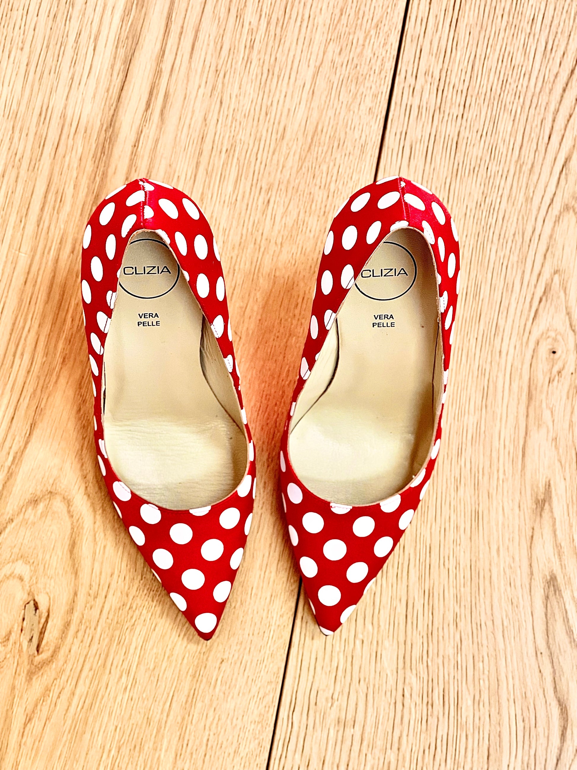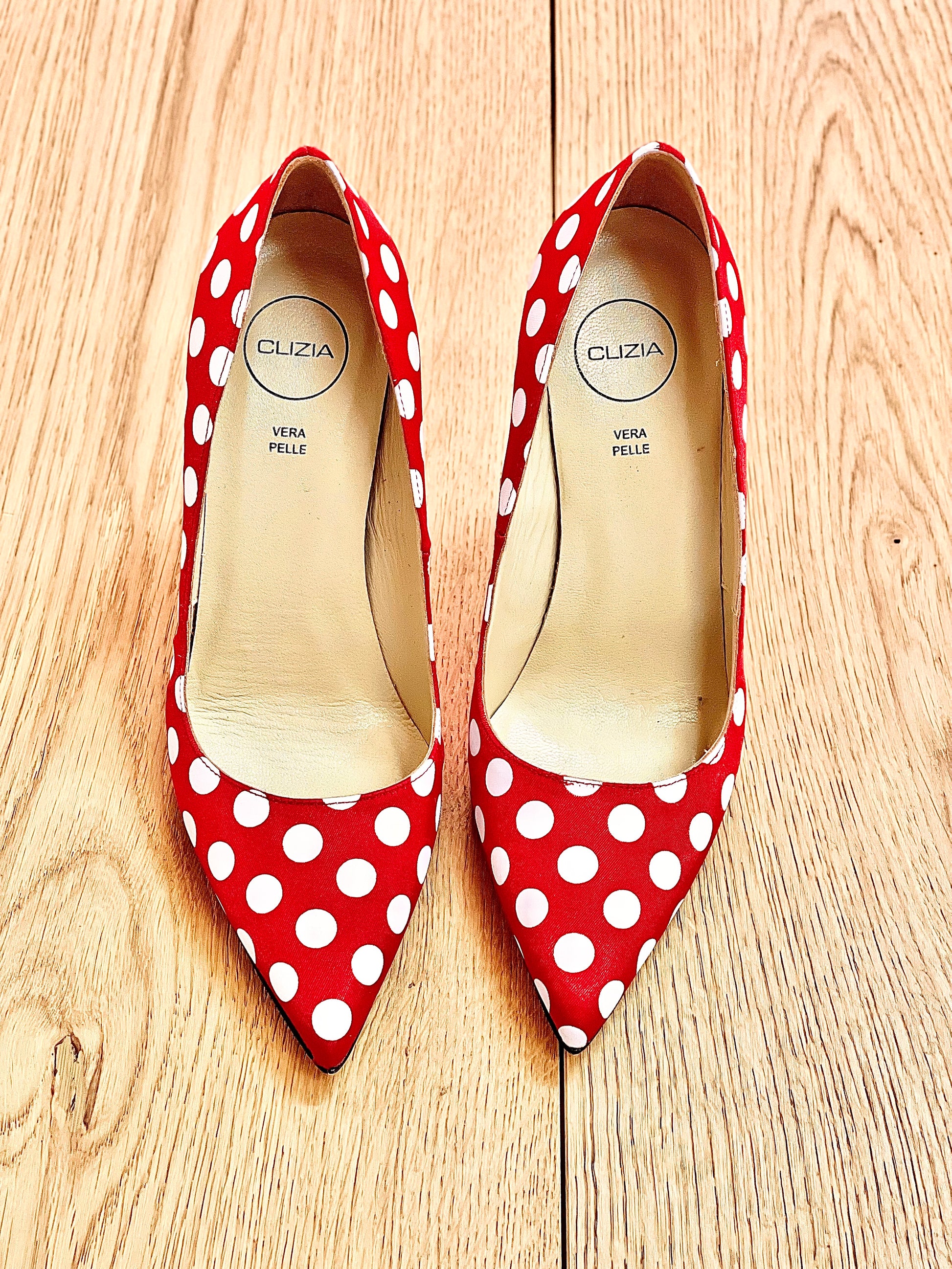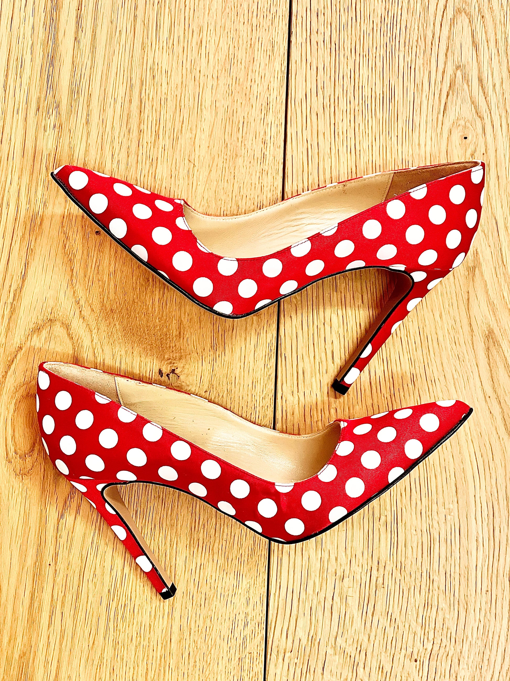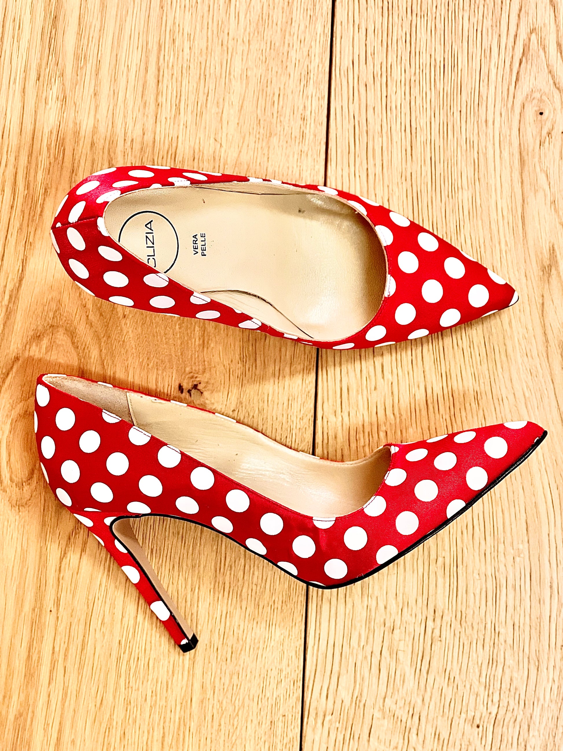 Spitse decolleté in polka dot 10 cm hoge naaldhak.