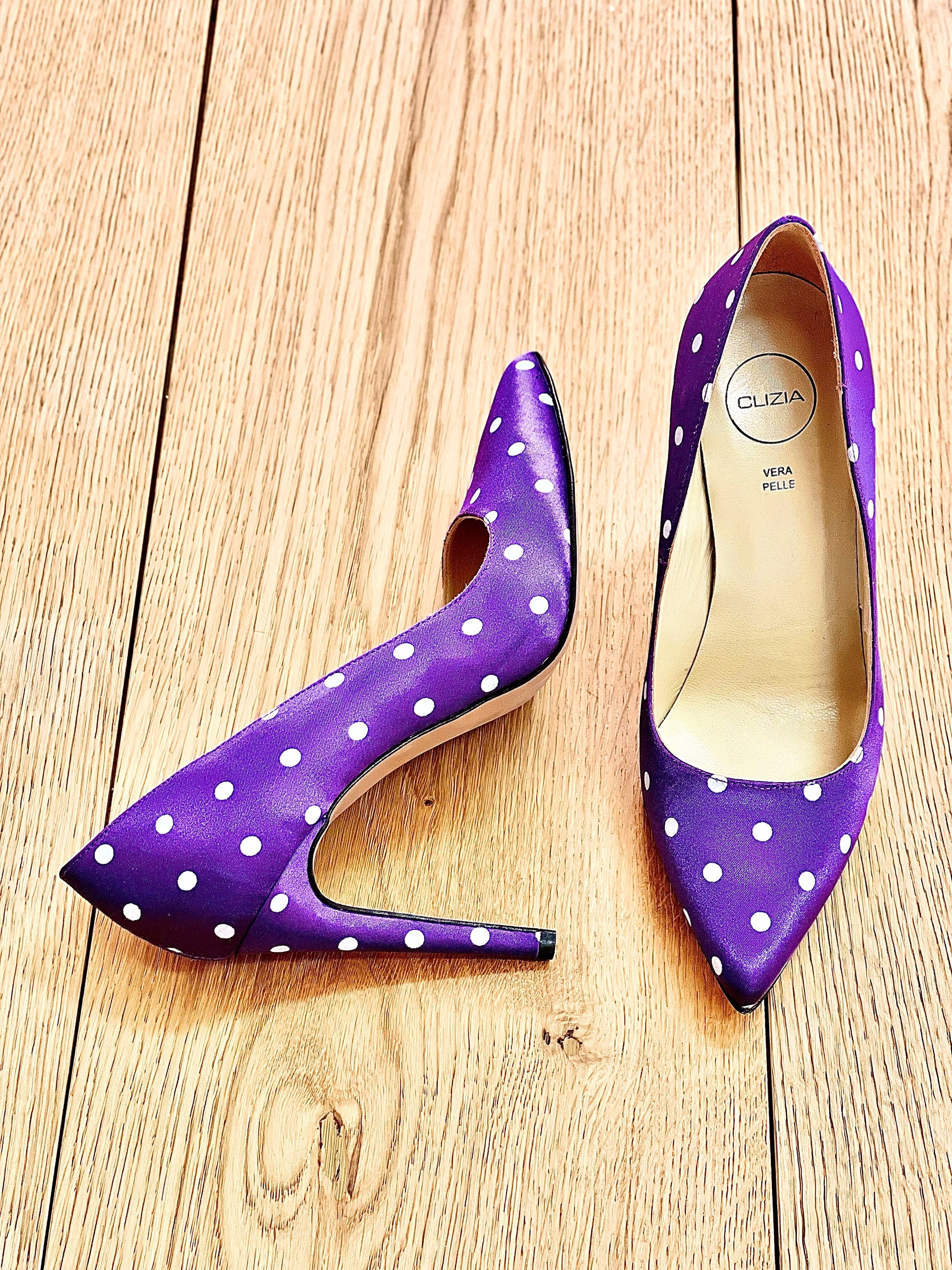 Spitse decolleté in polka dot 10 cm hoge naaldhak.