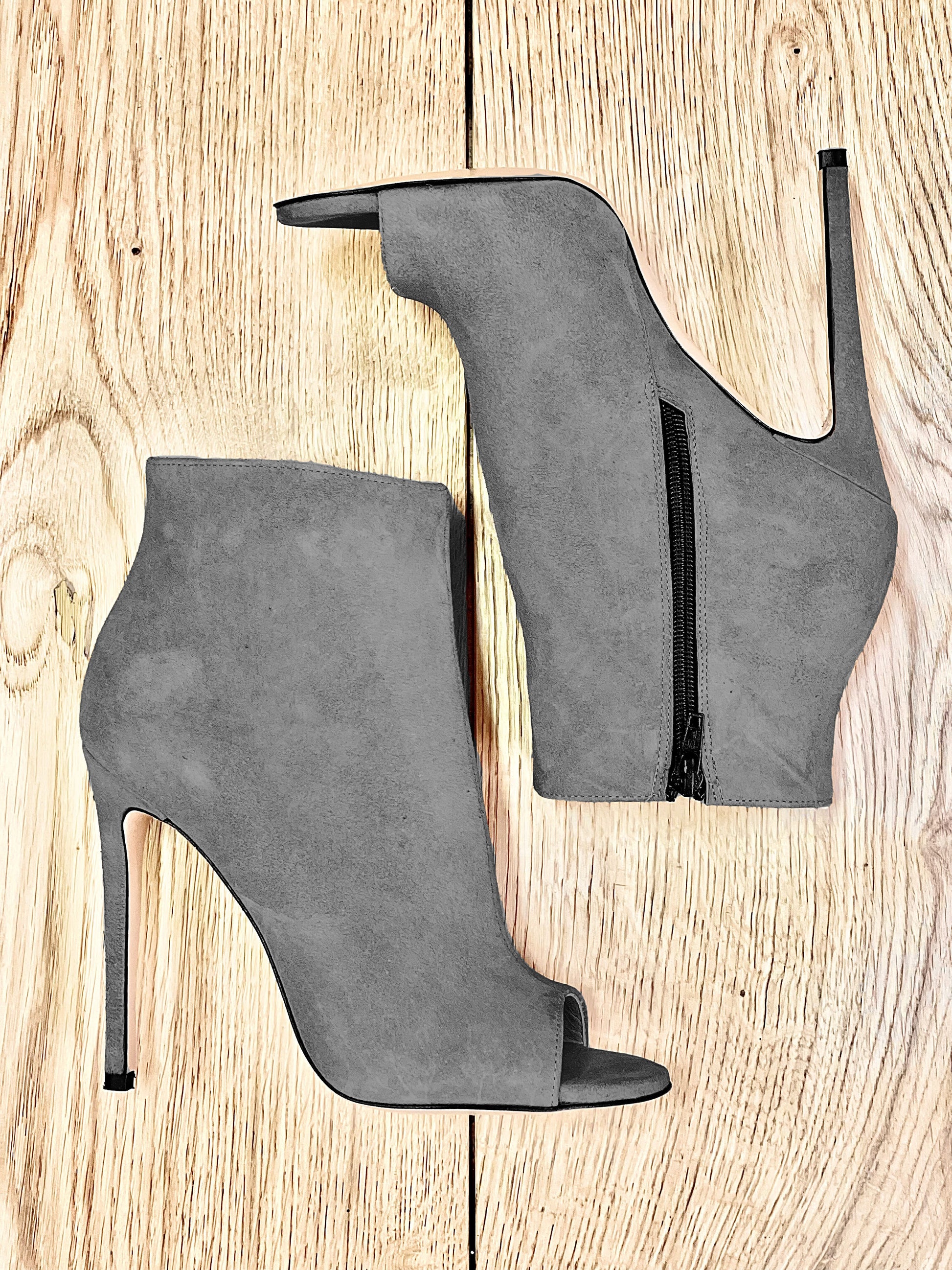 Hoge suède enkellaarsjes met sleehak van 12 cm.