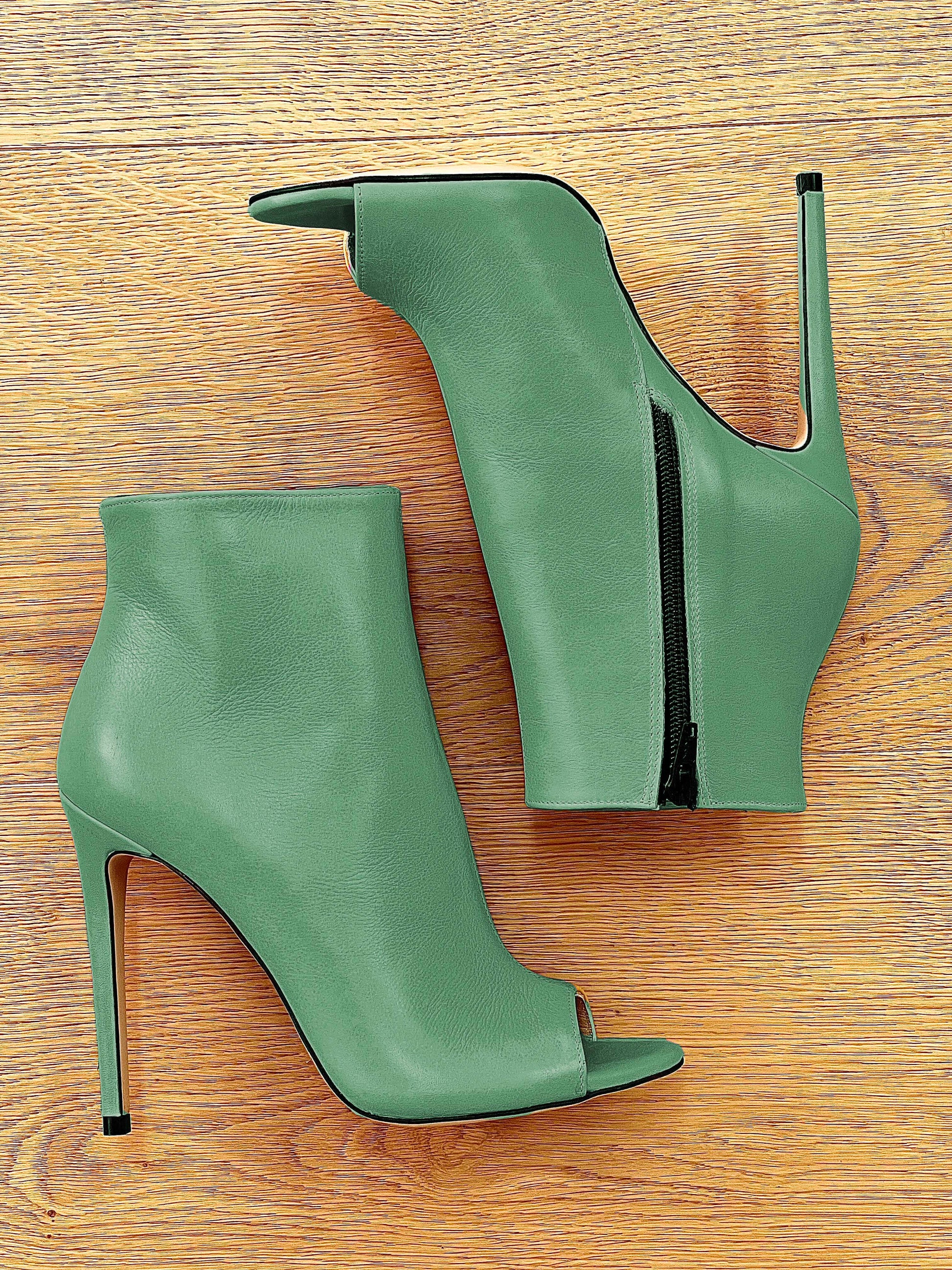 Enkellaarsjes met 12 cm hoge naaldhakken.