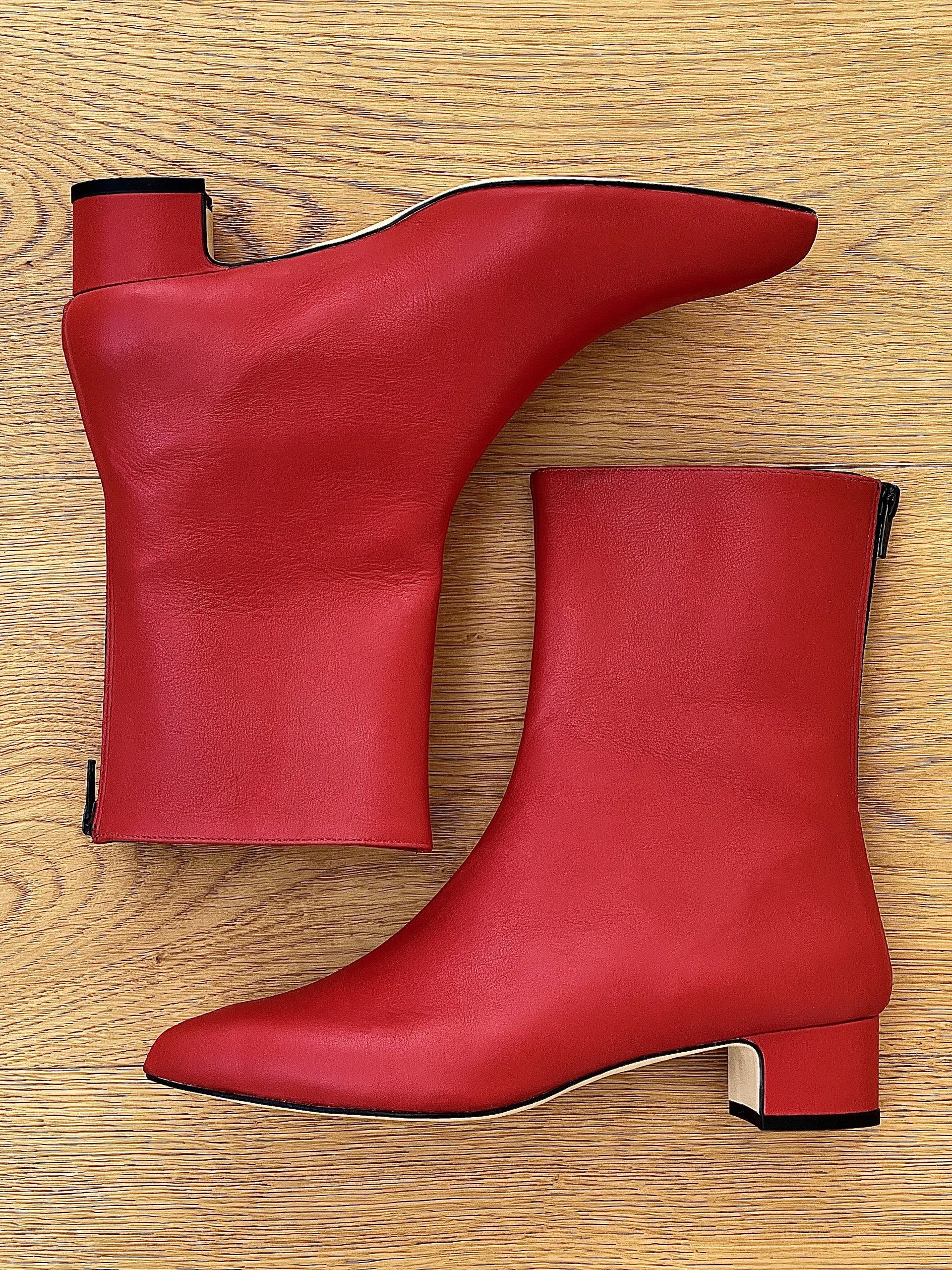 Enkellaarsjes met brede hak en ritssluiting aan de achterkant.